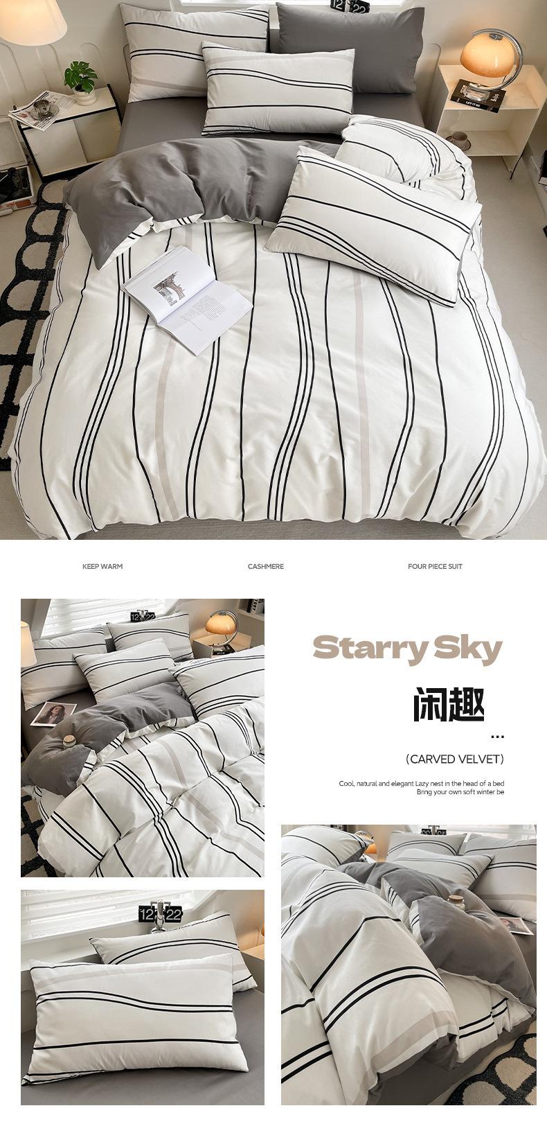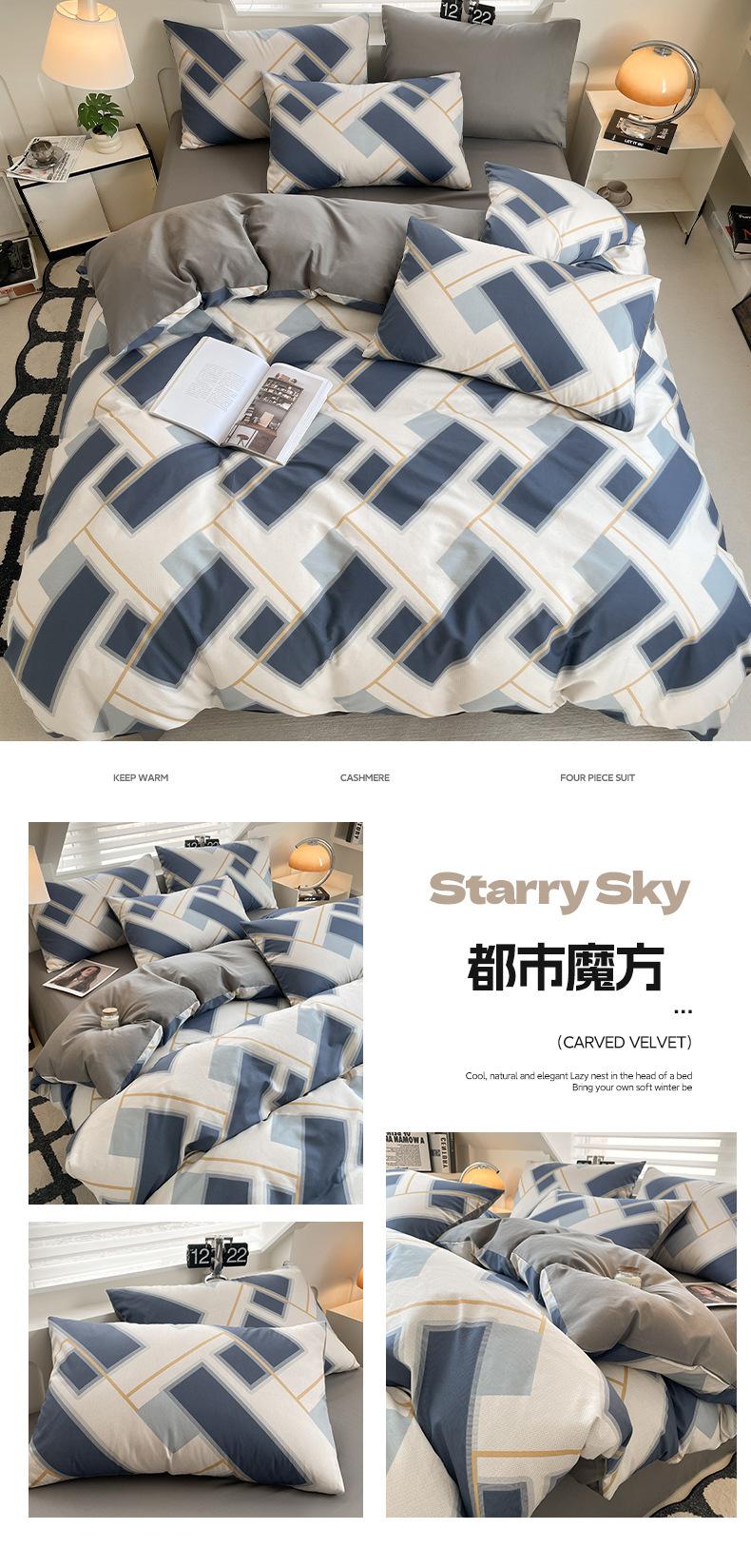 Juego de cama de algodón nórdico simple de cuatro piezas, ropa de cama textil para el hogar Nantong, juego de tres piezas, sábana de algodón de primavera, funda de edredón, venta al por mayor
