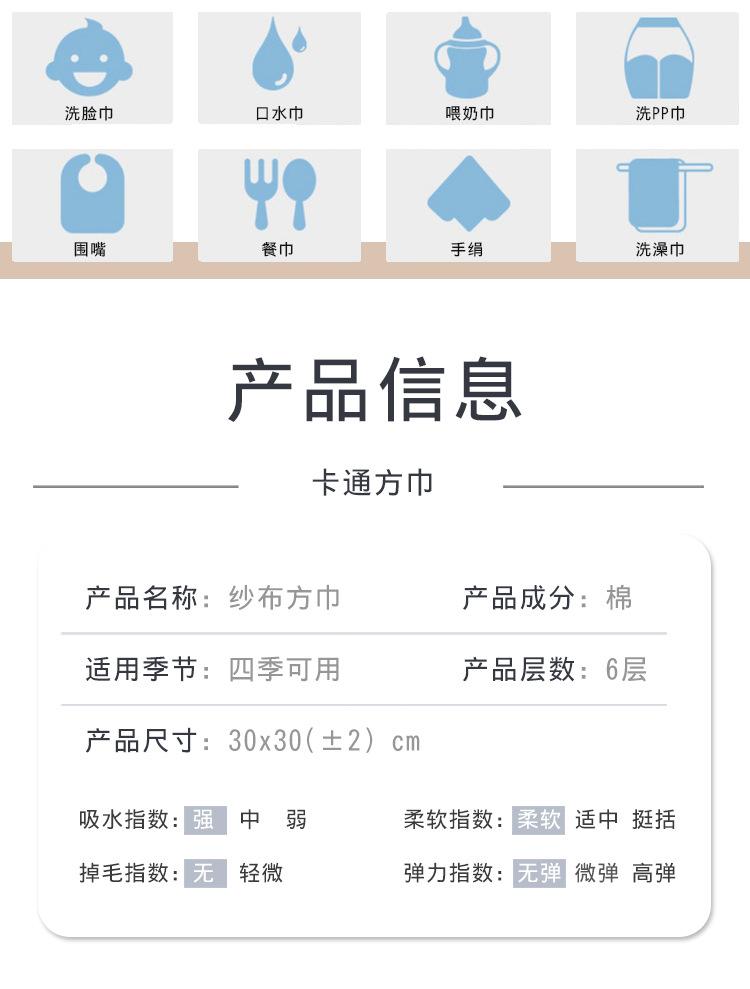 Toalla facial de algodón de seis capas de gasa cuadrada, toalla de saliva para bebé recién nacido, toalla cuadrada pequeña para bebé, toalla para niños, venta al por mayor