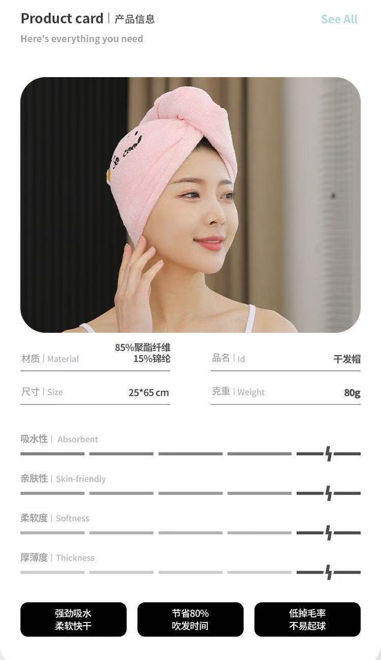 Gorro de ducha para cabello largo, absorbente de agua, grueso, para mujeres y adultos, bonito gorro de ducha para secar el cabello.