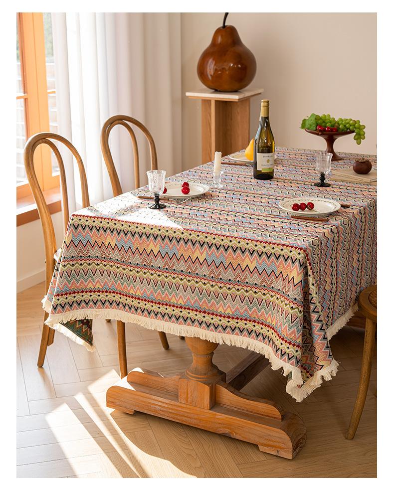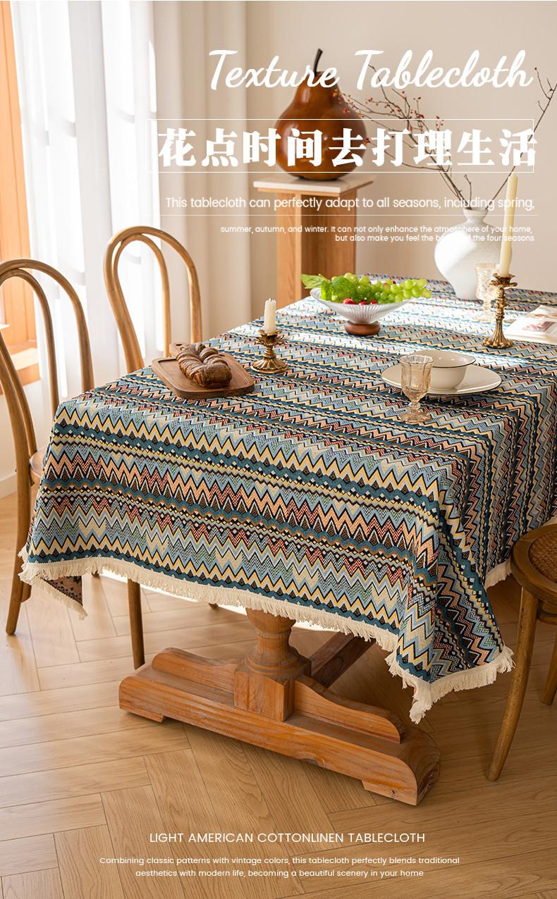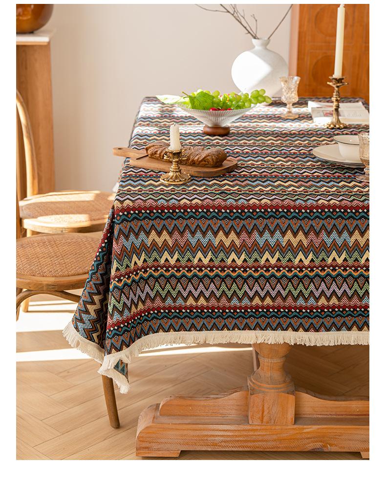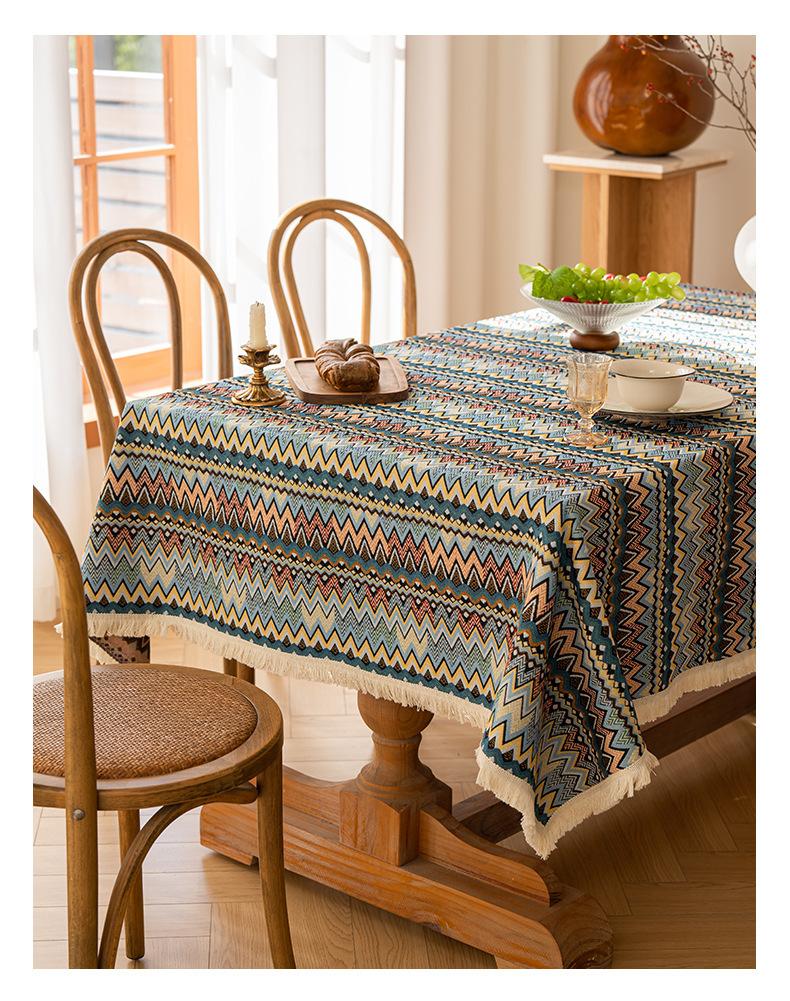 Mantel de rayas bohemias transfronterizas, estilo étnico, de algodón y lino, rectangular, para mesa de té, venta al por mayor