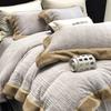 Nueva ropa de cama de franela coral gris de alta calidad de cuatro piezas de terciopelo de leche de color sólido de clase A, funda de edredón de felpa al por mayor
