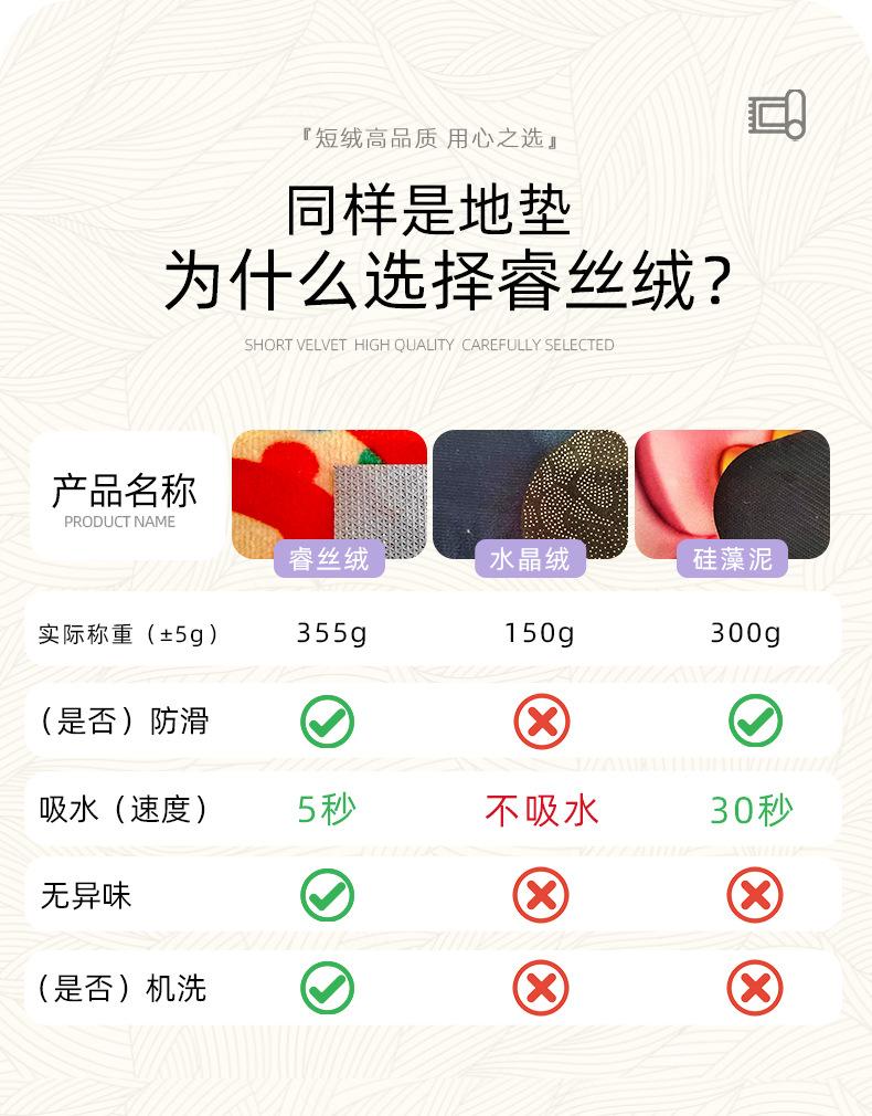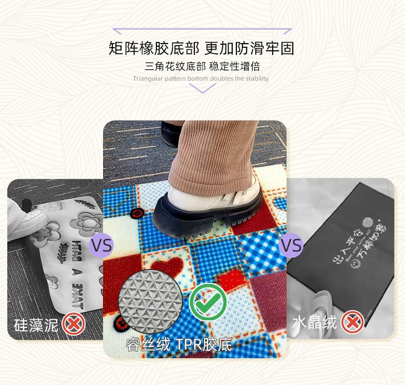 Alfombrilla de baño moderna de silicona Ruisi de terciopelo, absorbente, de secado rápido, suave y antideslizante.