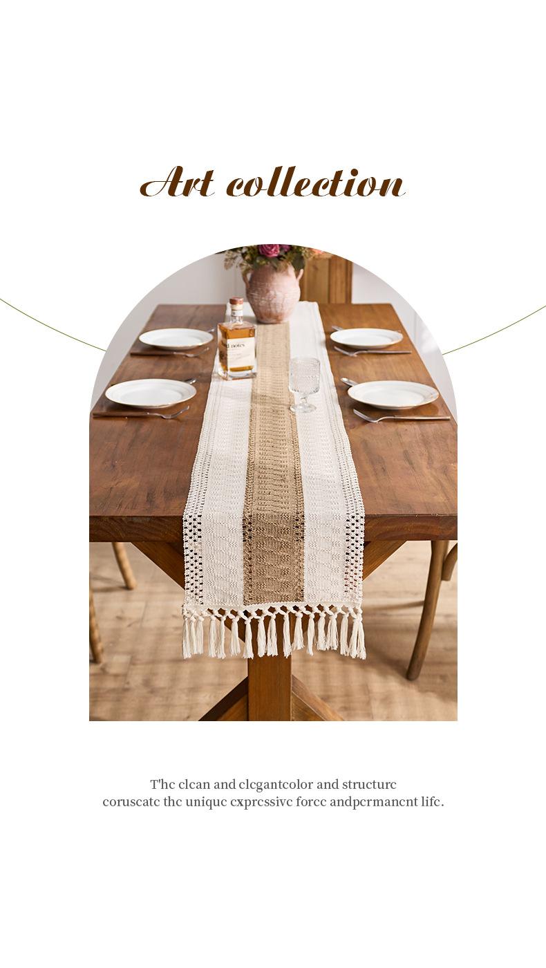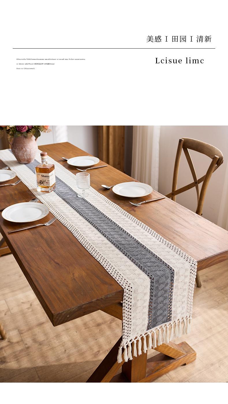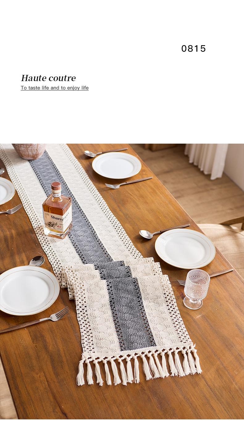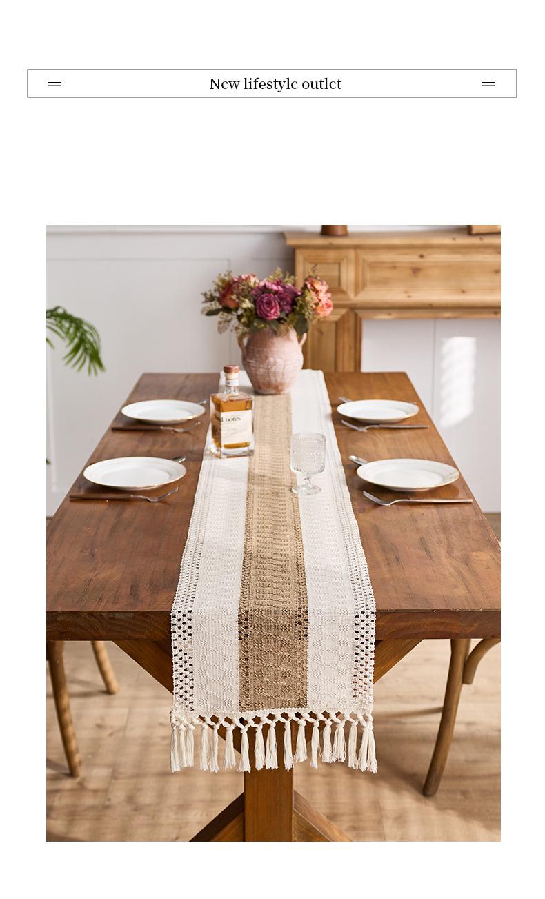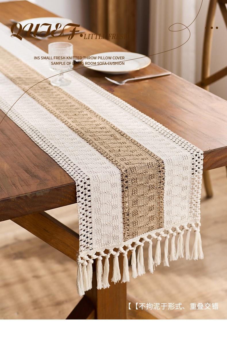 Bandera de Mesa Transfronteriza de Algodón y Lino Combinación de Colores Nudo de Algodón y Lino Borla Calada Decoración de Mesa Tapete para Té Hogar Estilo Minoritario