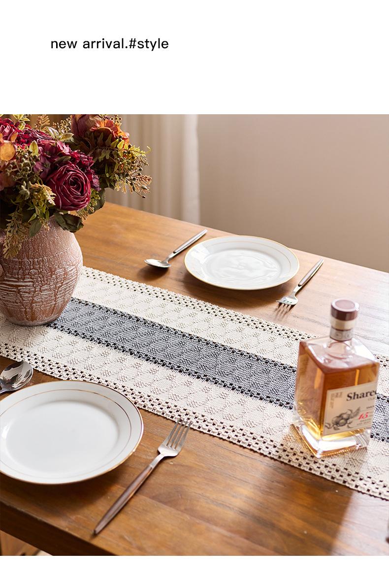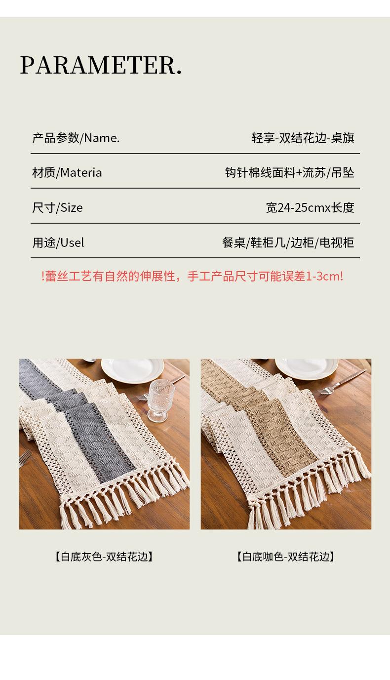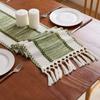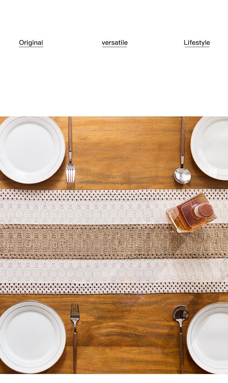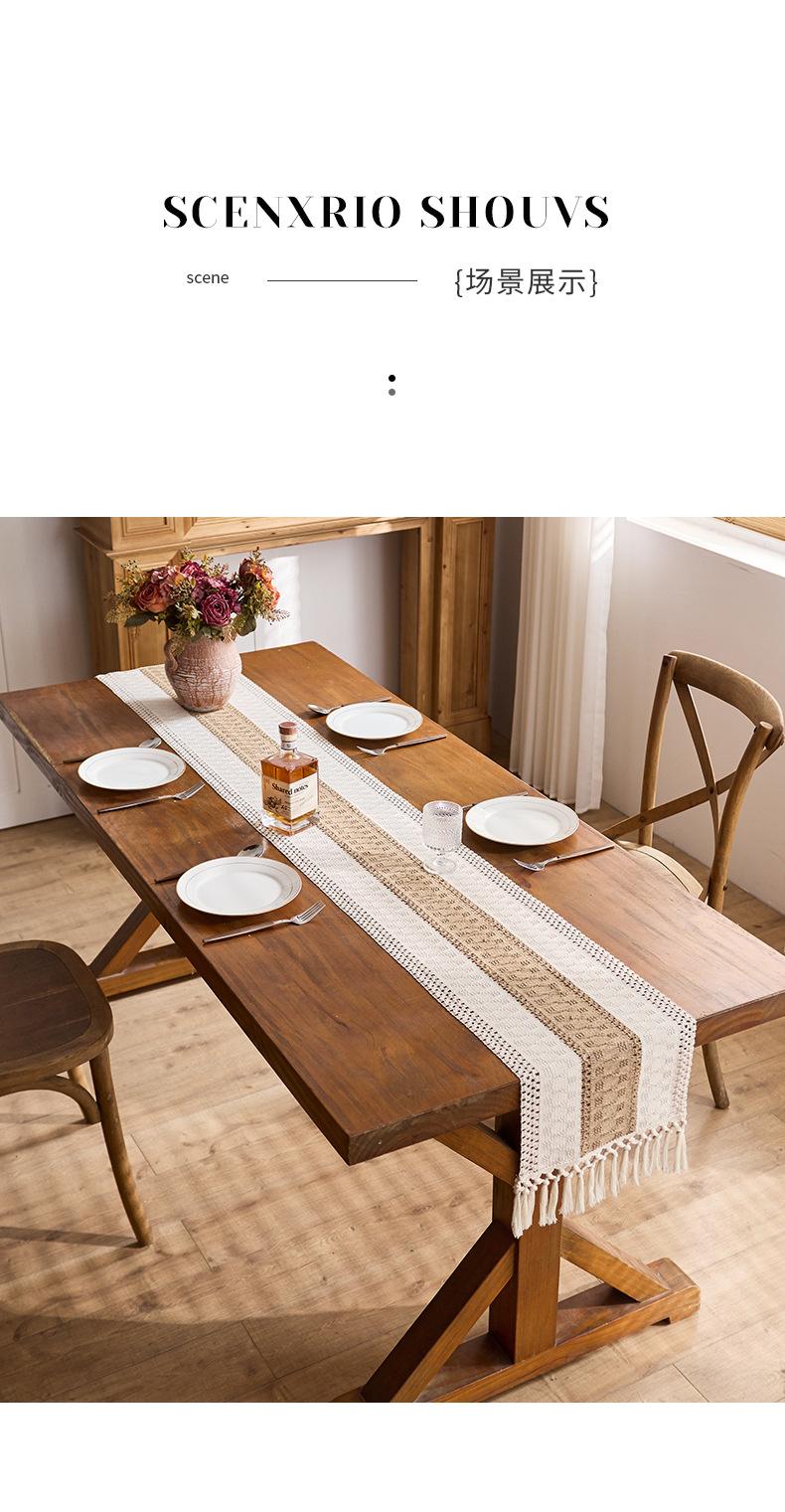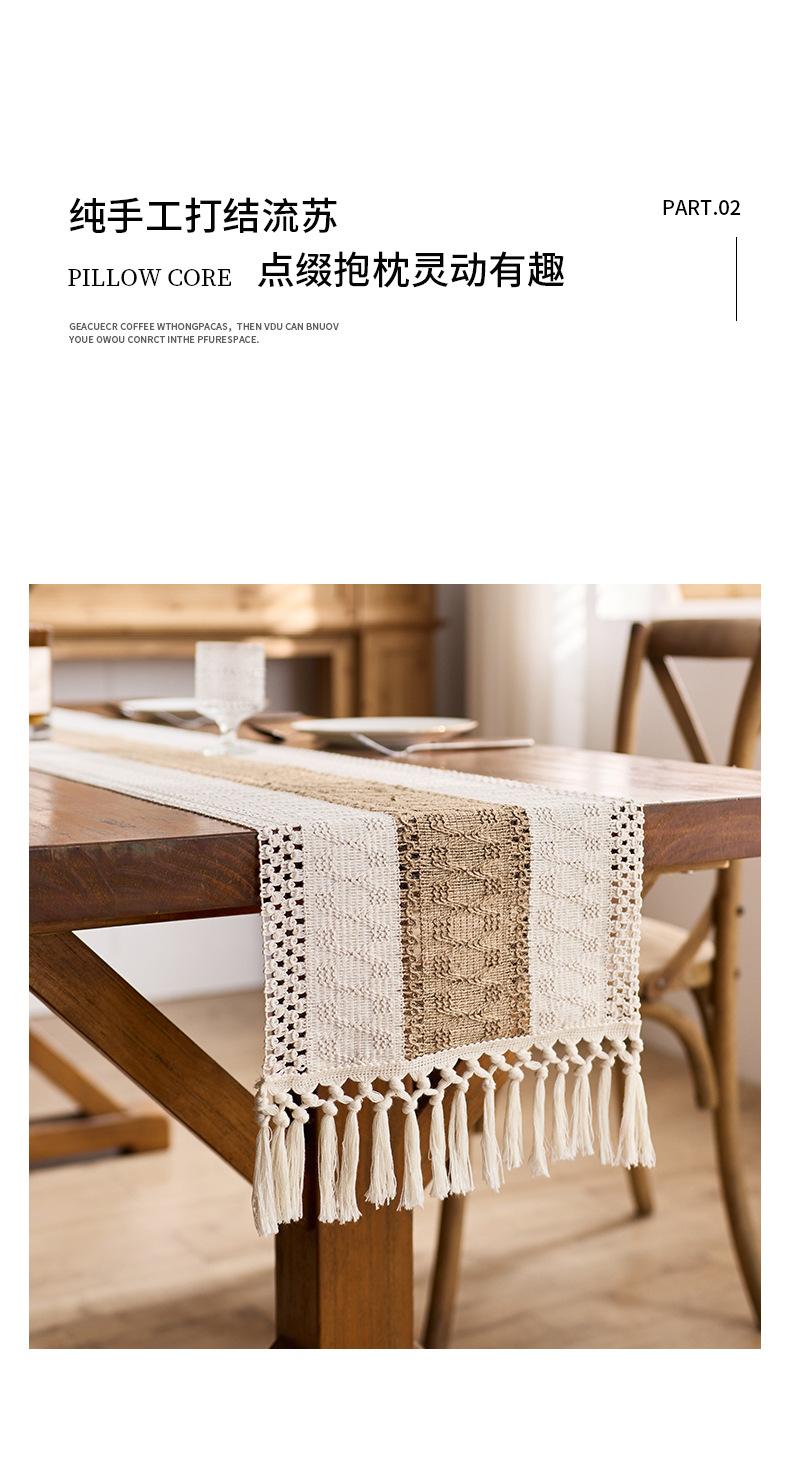Bandera de Mesa Transfronteriza de Algodón y Lino Combinación de Colores Nudo de Algodón y Lino Borla Calada Decoración de Mesa Tapete para Té Hogar Estilo Minoritario