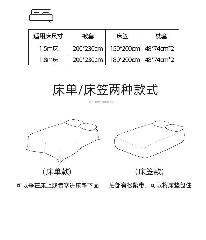 1.2m bed sheet three-piece set, 1.5m bed sheet four-piece set, 1.8m bed sheet four-piece set, 2.0m bed sheet f...