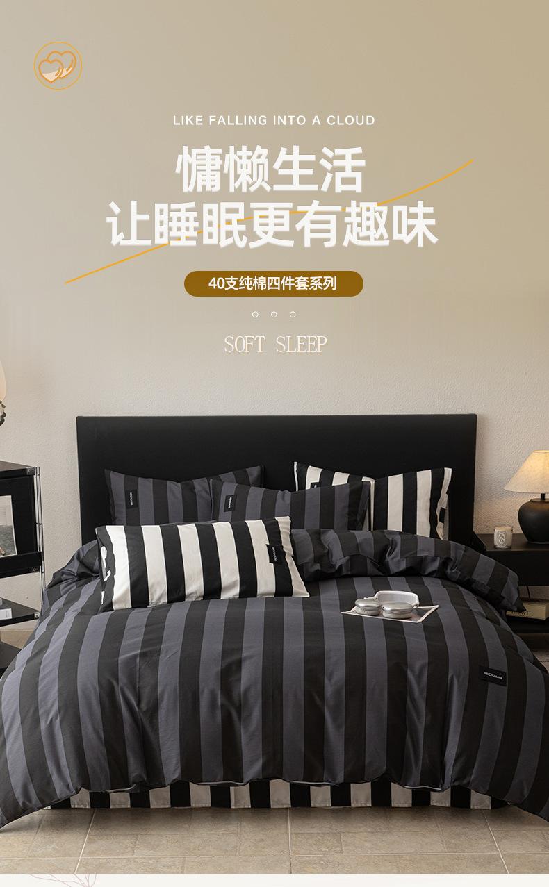 Compra Nueva y sencilla funda de edredón de cuatro piezas de algodón oscuro a rayas de 40 piezas al por mayor en Joom.pro