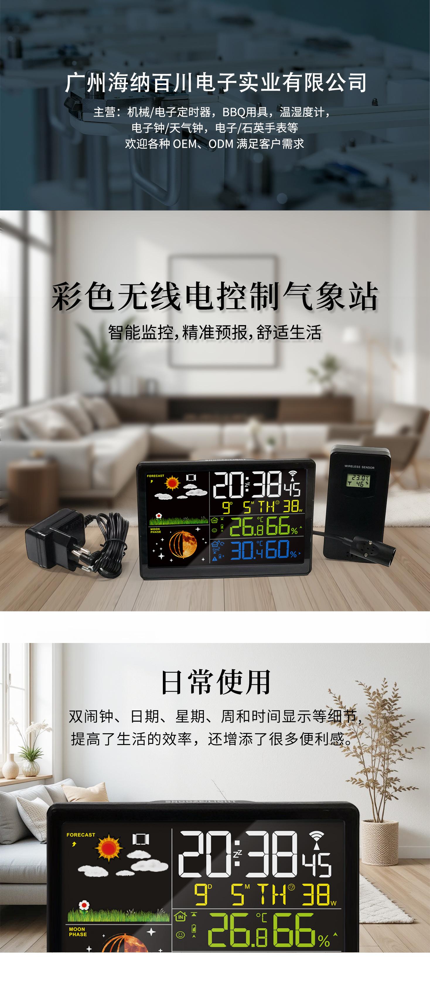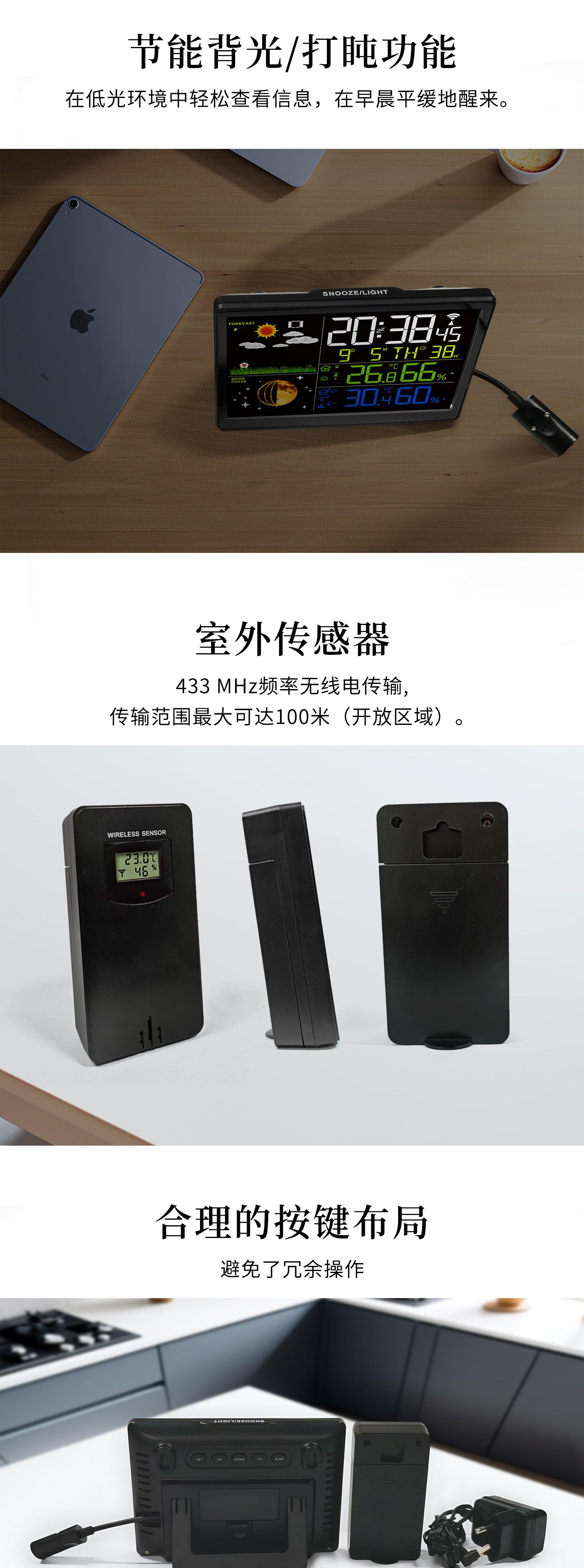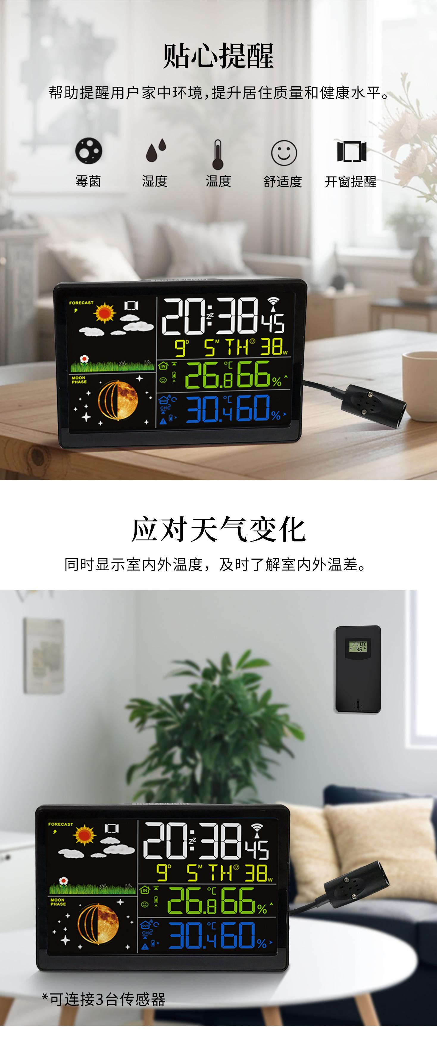 Reloj meteorológico multifunción con pantalla VA, pronóstico del tiempo, despertador, termómetro para interiores y exteriores