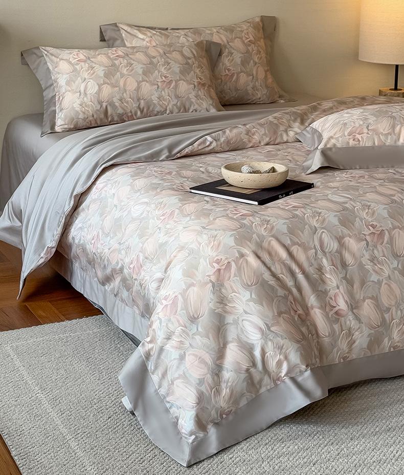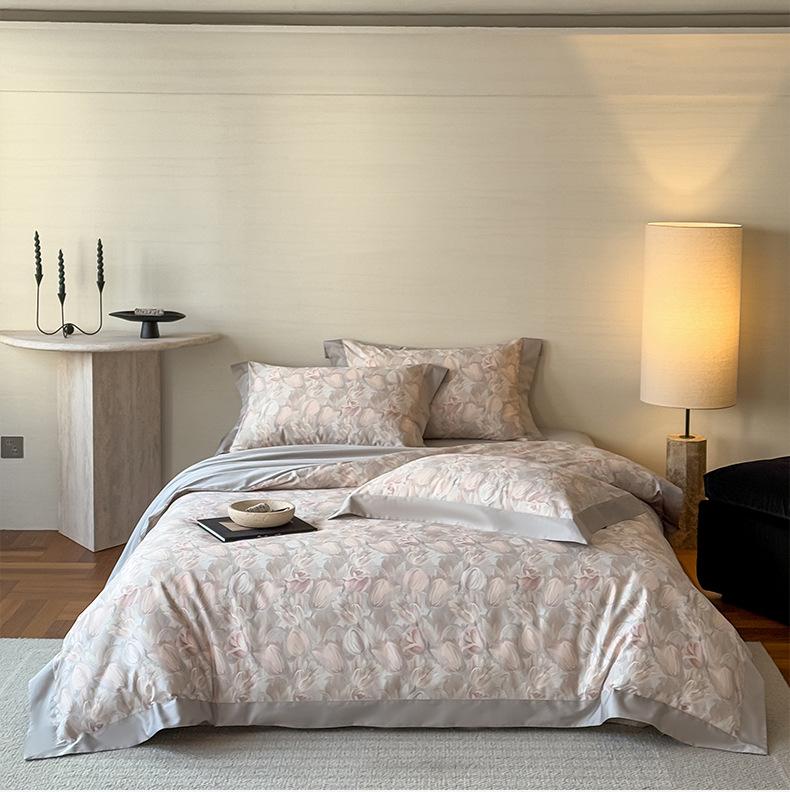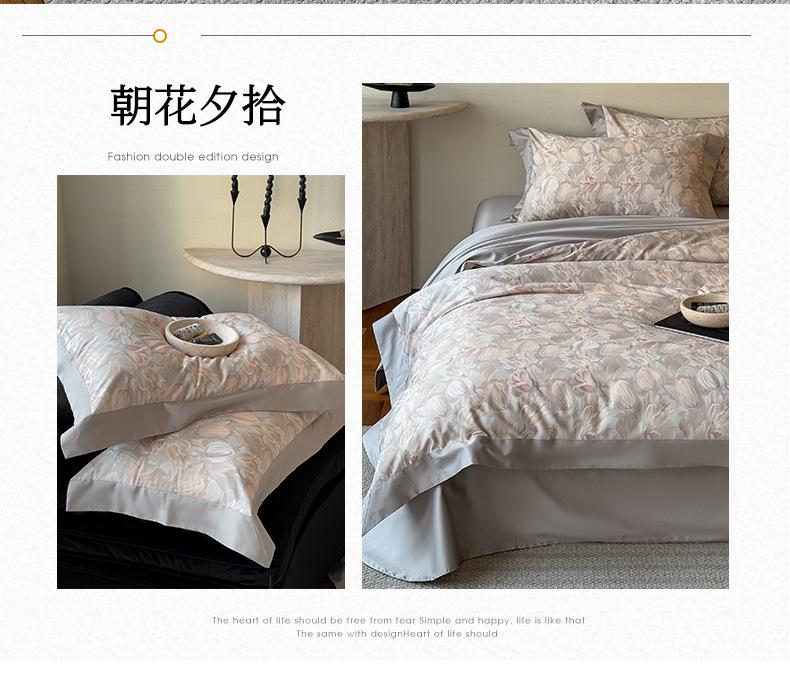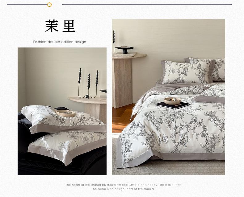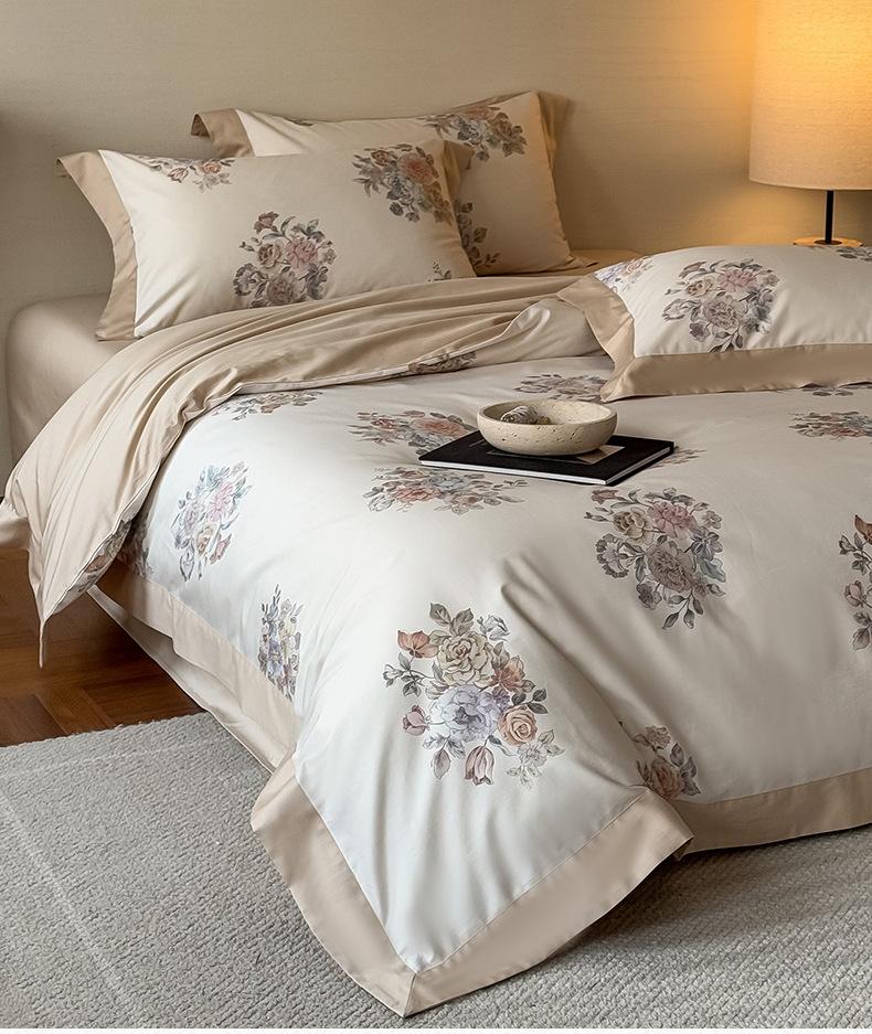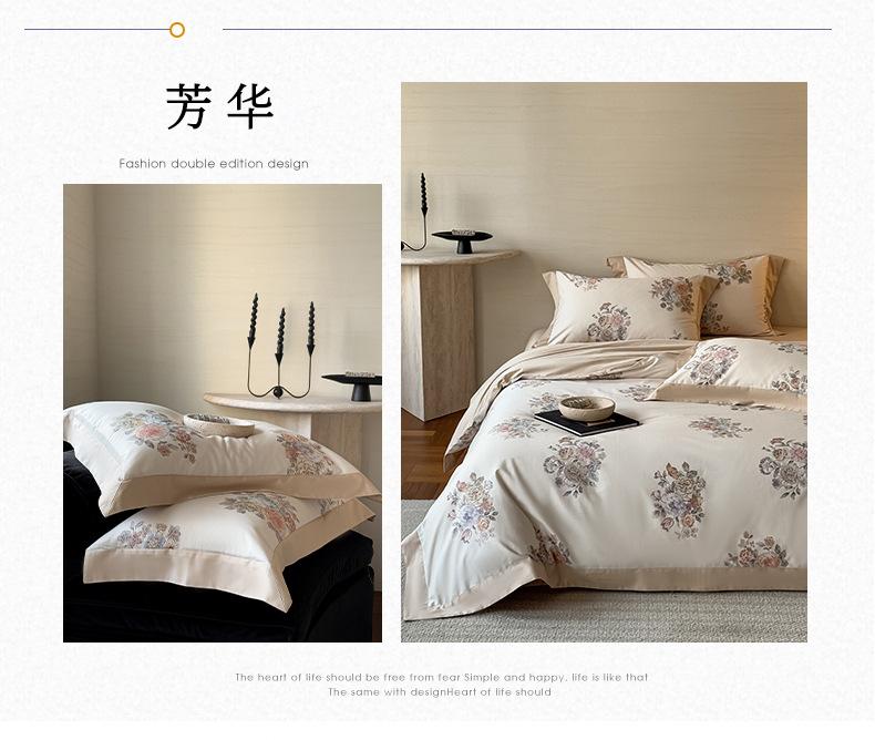 Juego de ropa de cama de algodón de cuatro piezas con estampado de fibra larga estilo americano, sábanas de algodón, juego de textiles para el hogar para las cuatro estaciones.