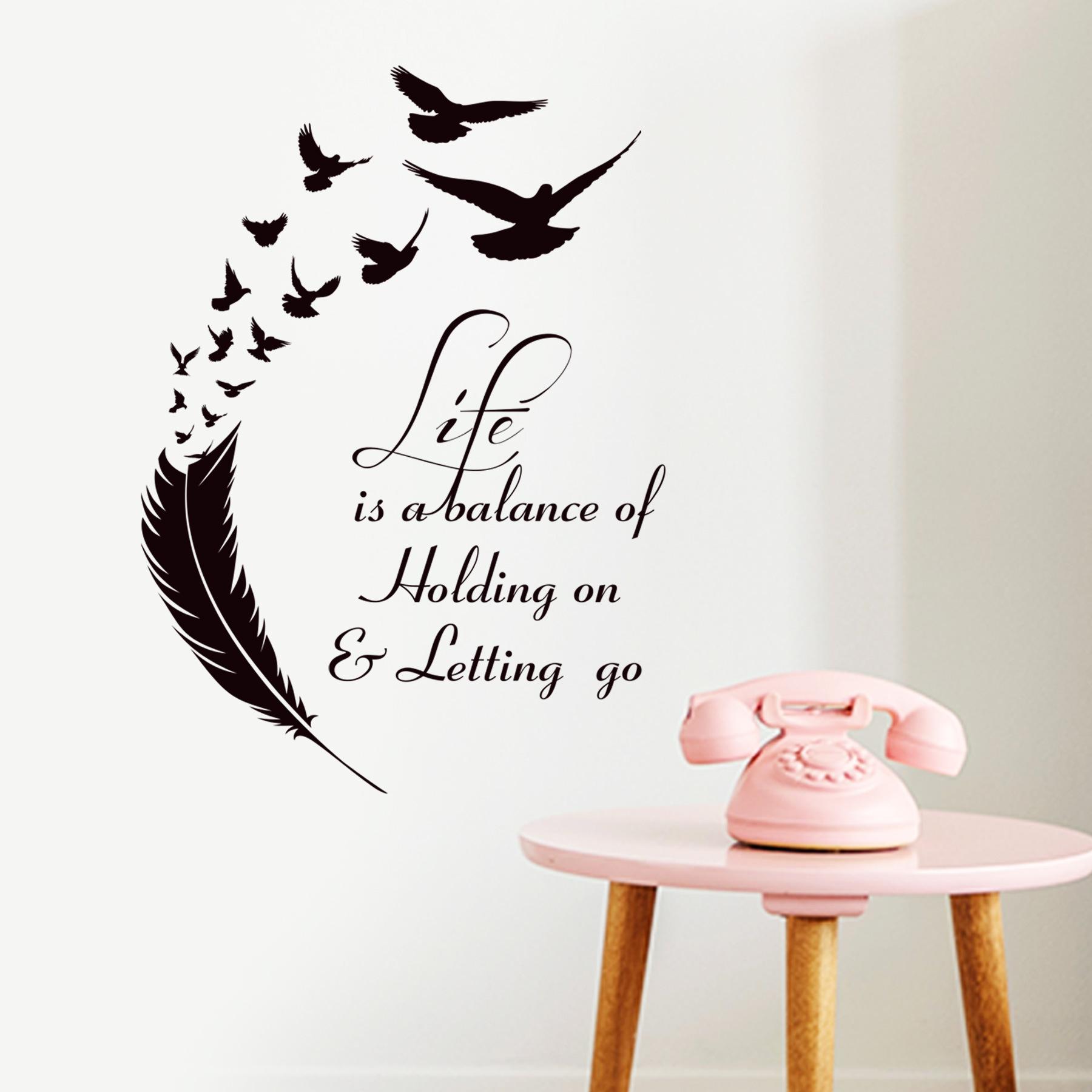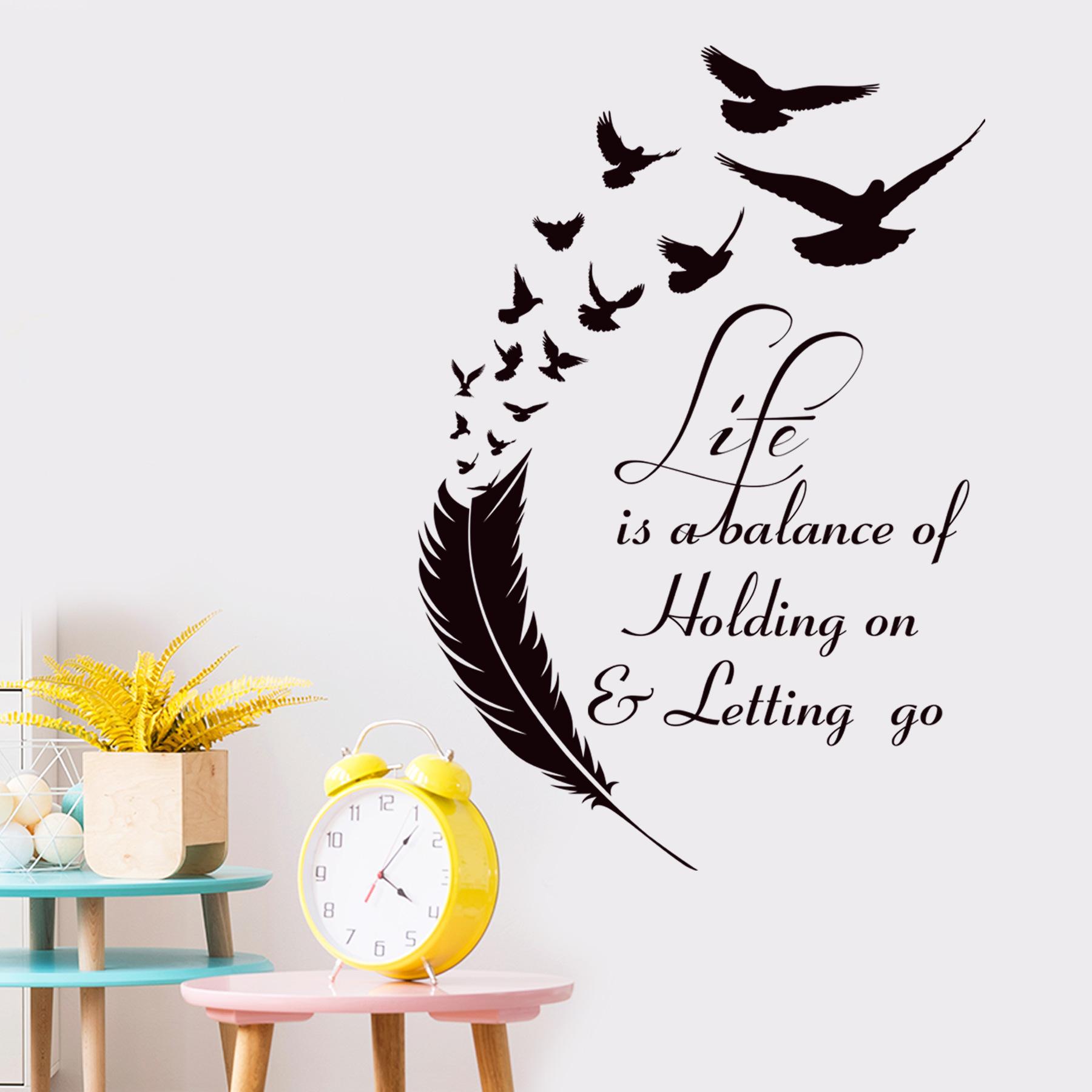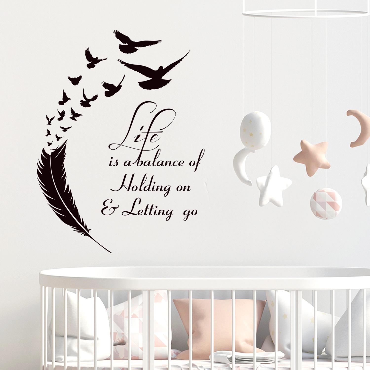 Pegatinas de pared con diseño de pájaro y plumas de proverbios ingleses para el hogar, dormitorio, sala de estar, fondo decorativo, borde transfronterizo extraíble, PH3103