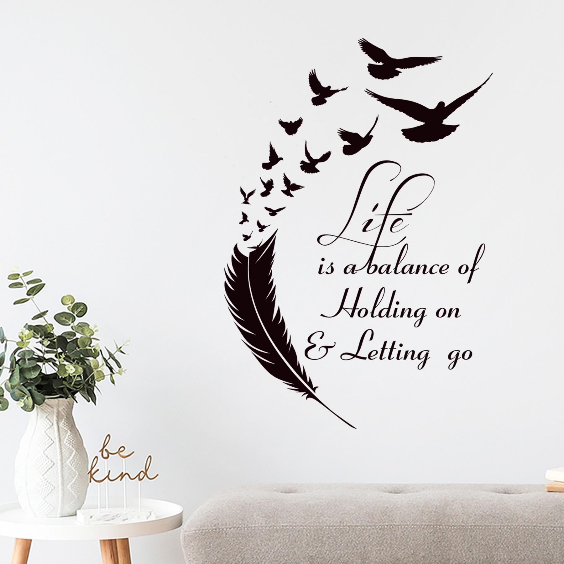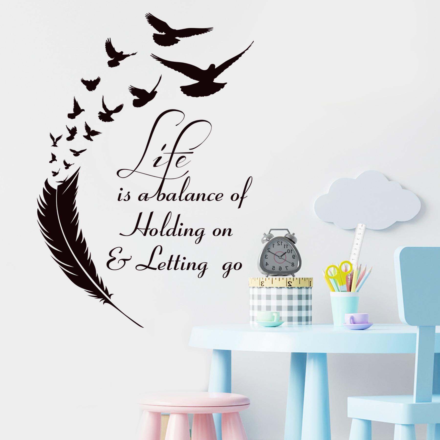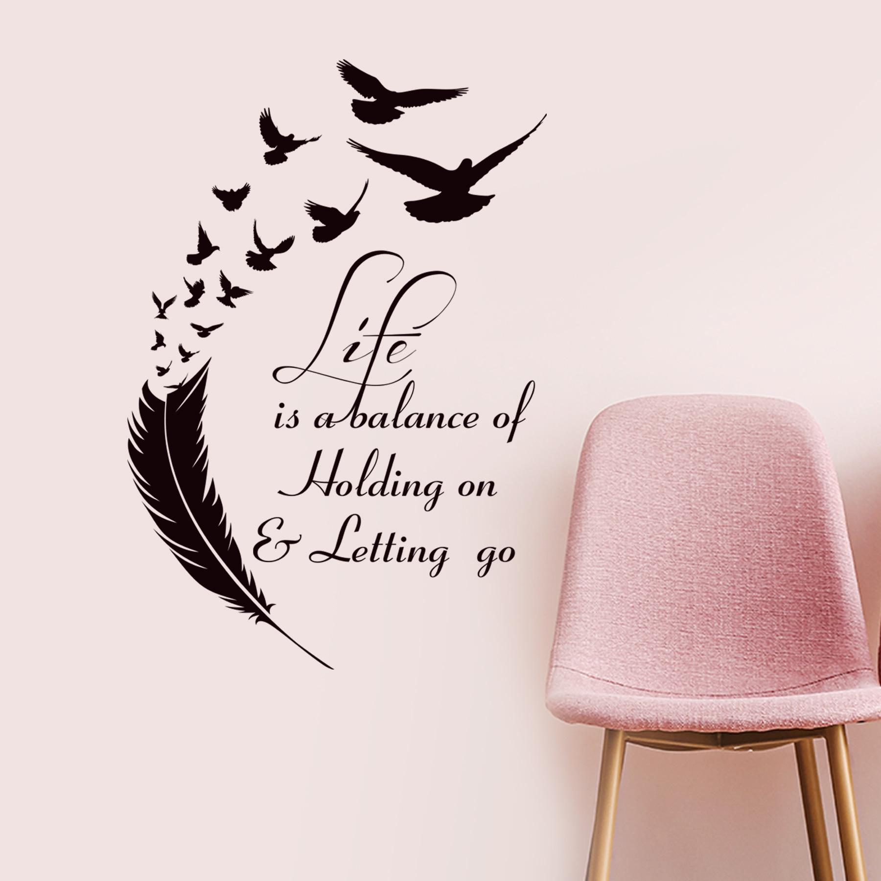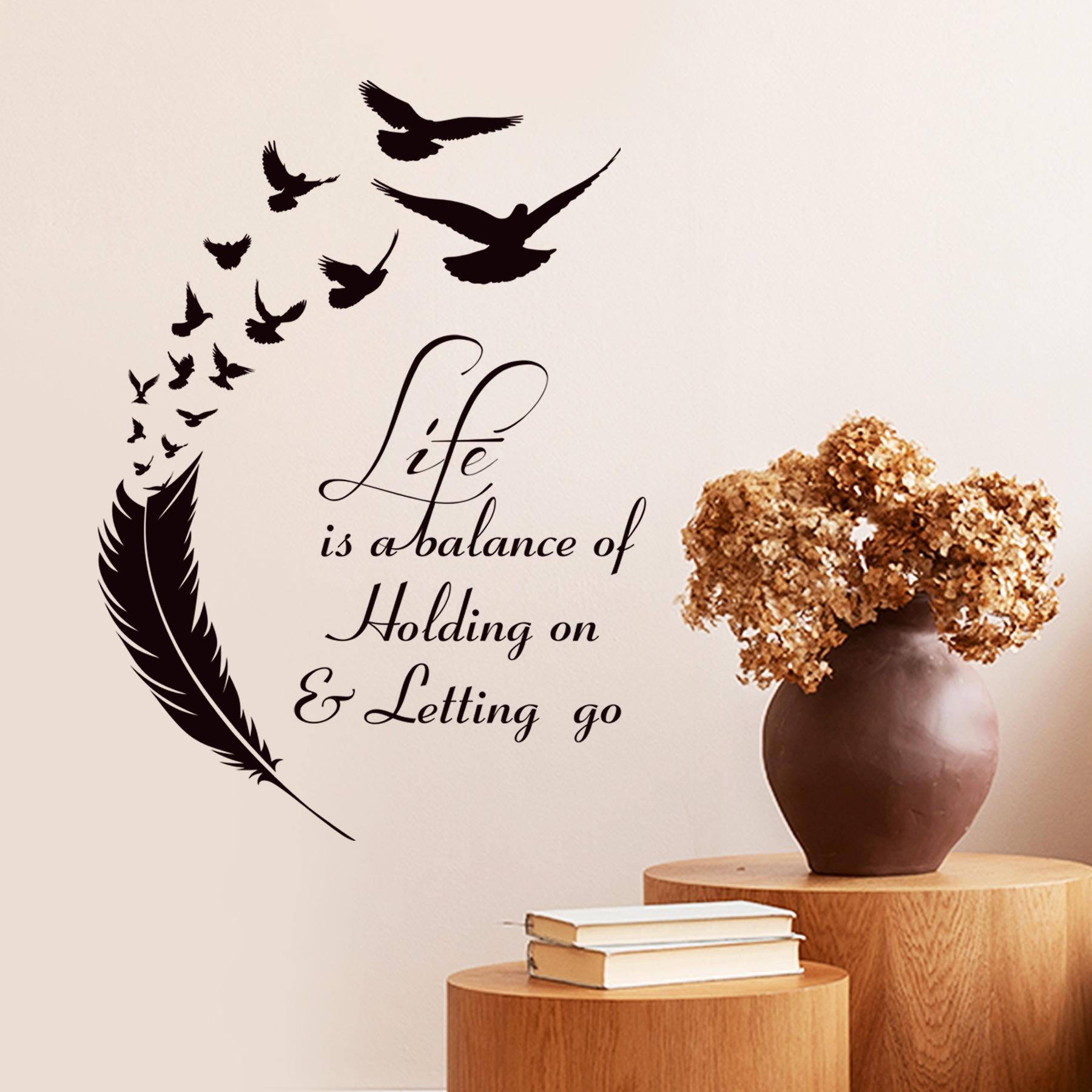 Pegatinas de pared con diseño de pájaro y plumas de proverbios ingleses para el hogar, dormitorio, sala de estar, fondo decorativo, borde transfronterizo extraíble, PH3103