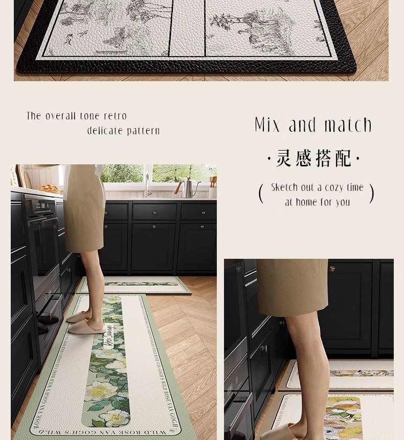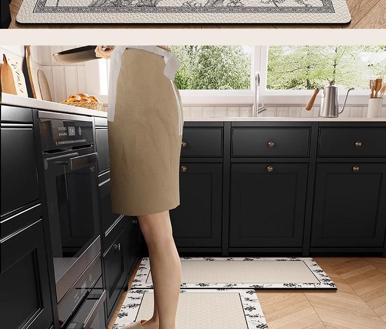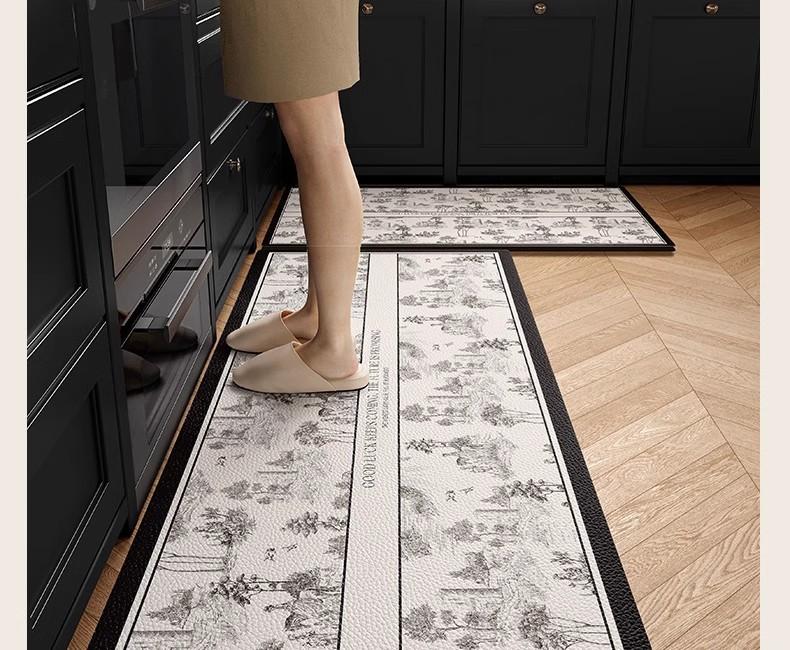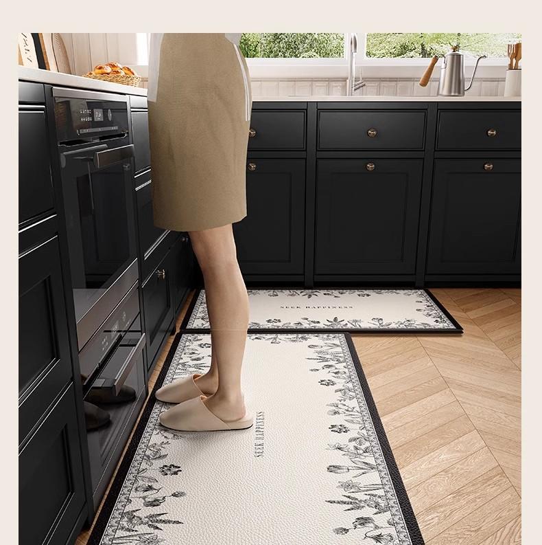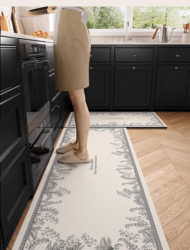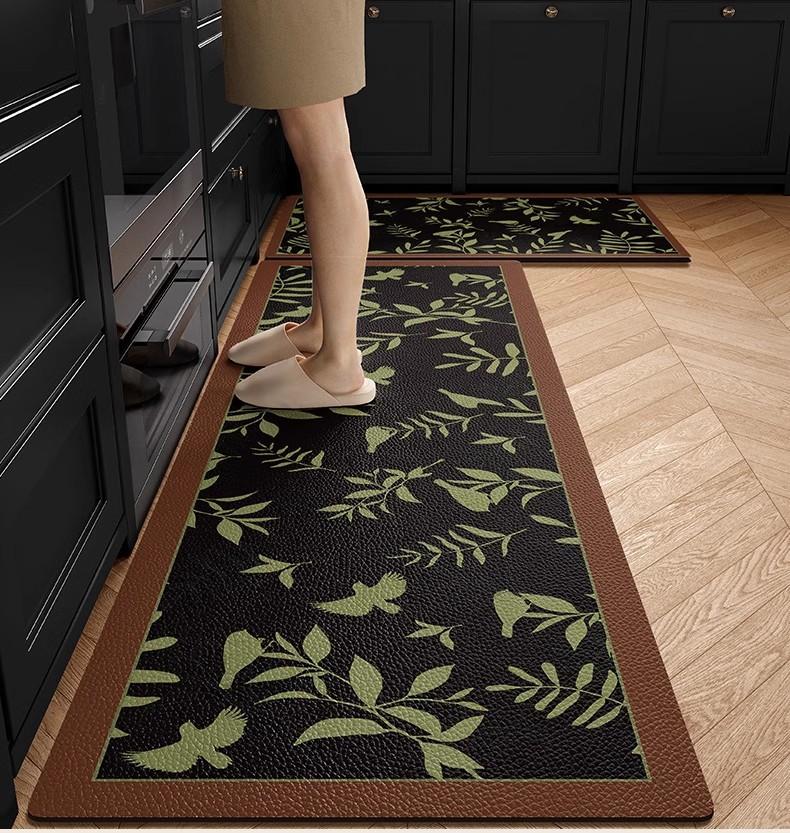 Alfombra de cocina antideslizante, resistente al aceite, borrable y lavable, especial para pies, impermeable y resistente a la suciedad, de cuero y PVC.