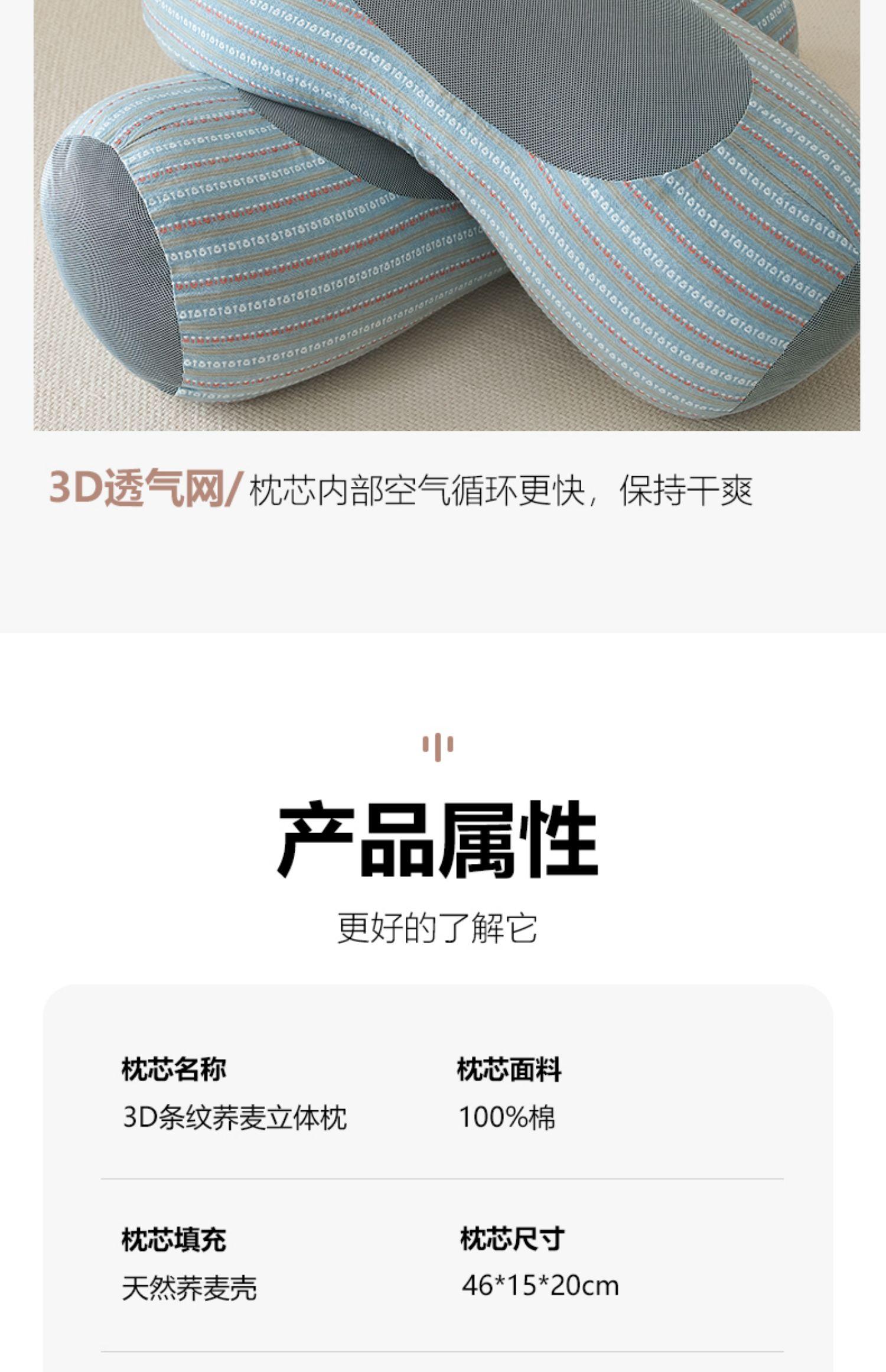 Cotton buckwheat 3d striped three-dimensional pillow-khaki [single pack] about 15cm high, Cotton buckwheat 3d ...