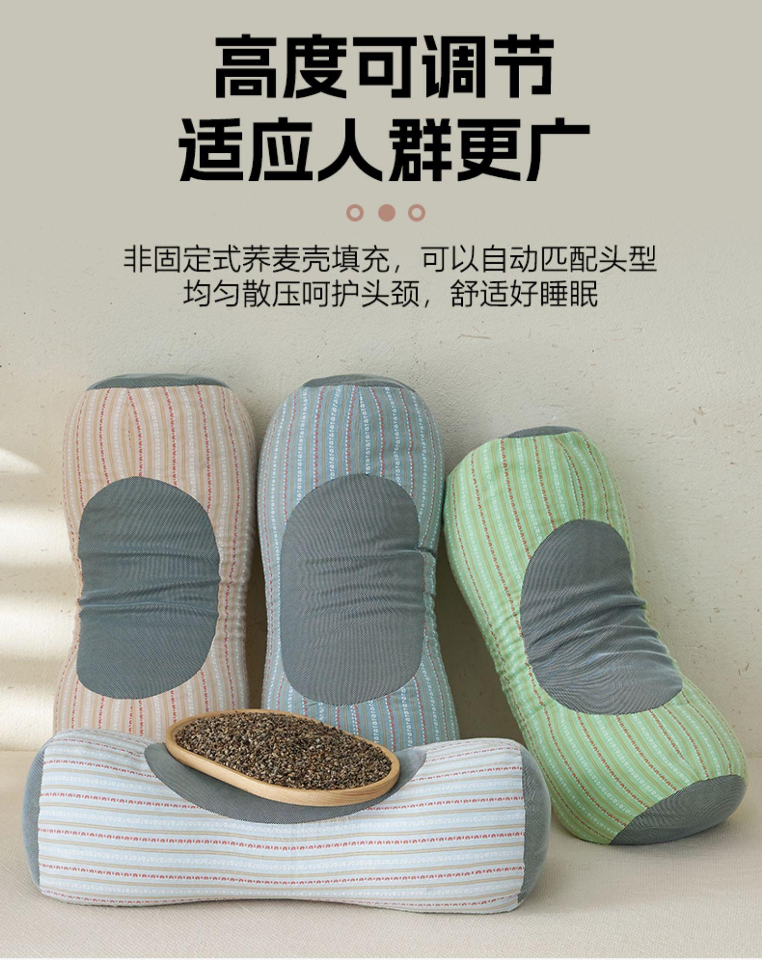 Almohada de trigo sarraceno de algodón, antiarco cervical, almohada especial para ayudar a dormir, tracción cilíndrica, estiramiento, protección de la columna cervical para el hogar, columna cervical dura