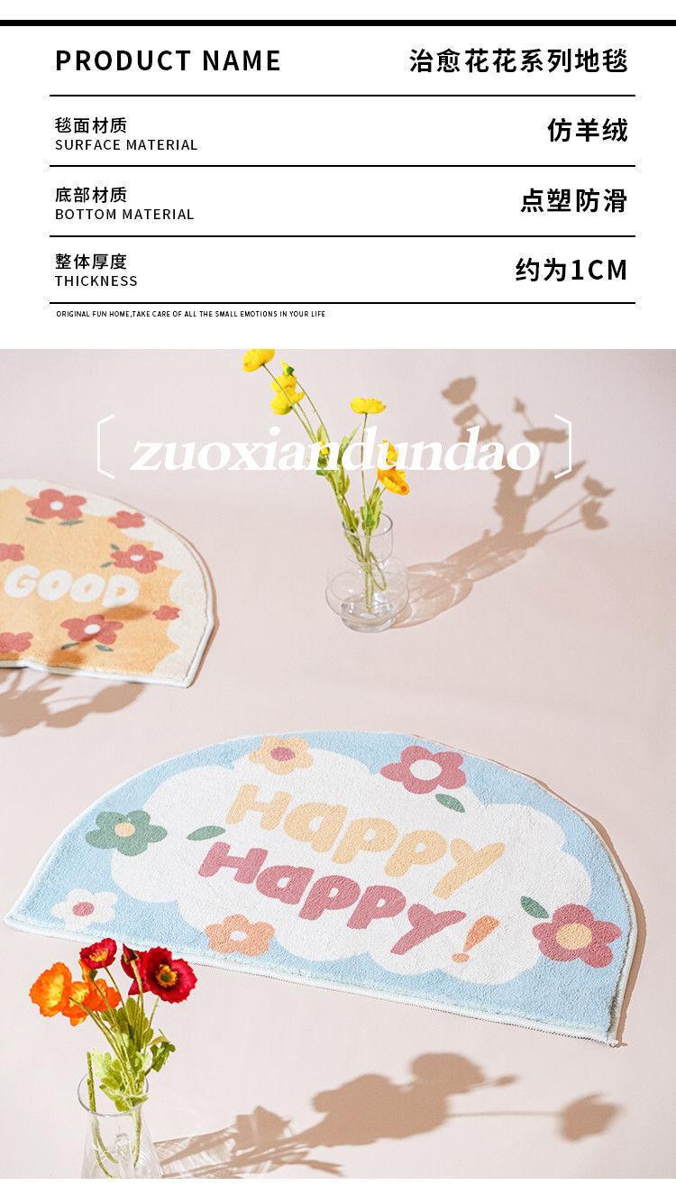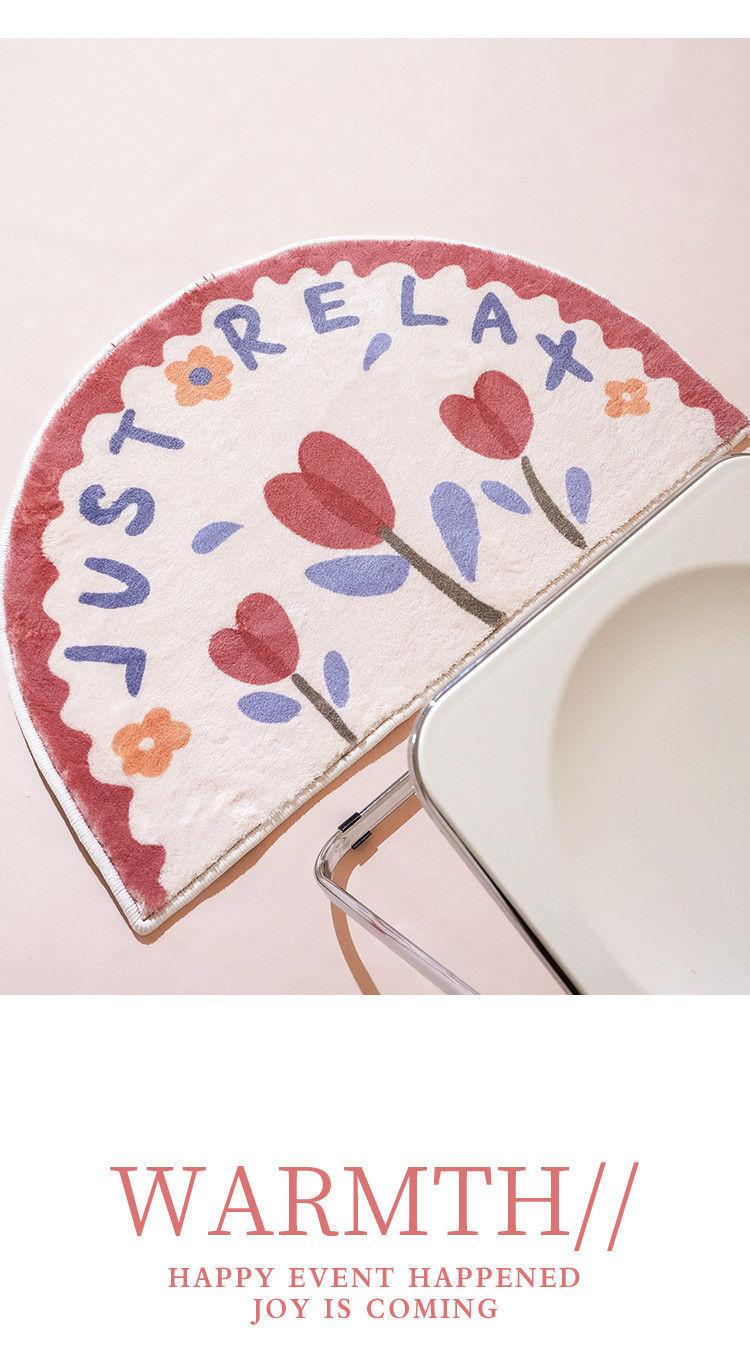 Alfombra de baño absorbente semicircular simple con diseño de flores, gruesa y antideslizante, para inodoro