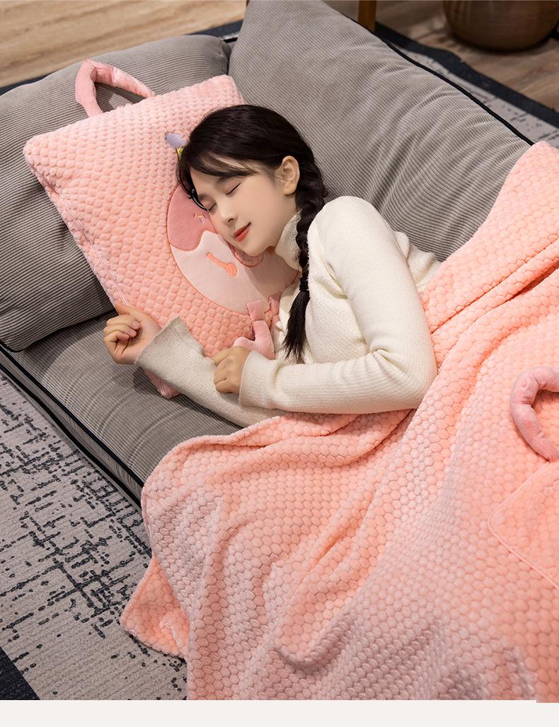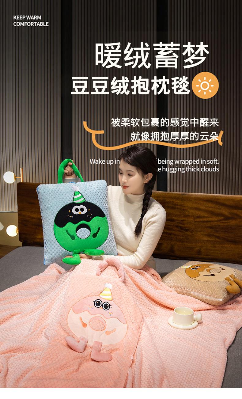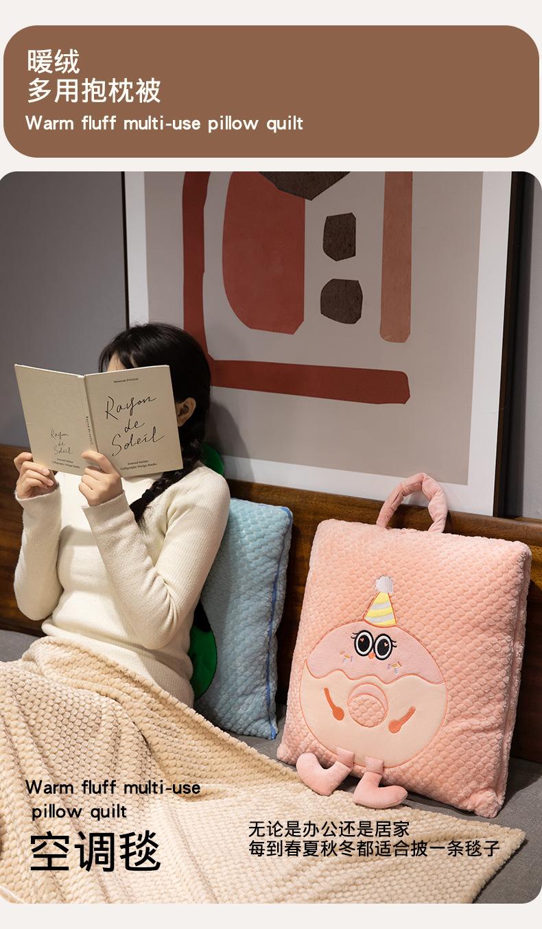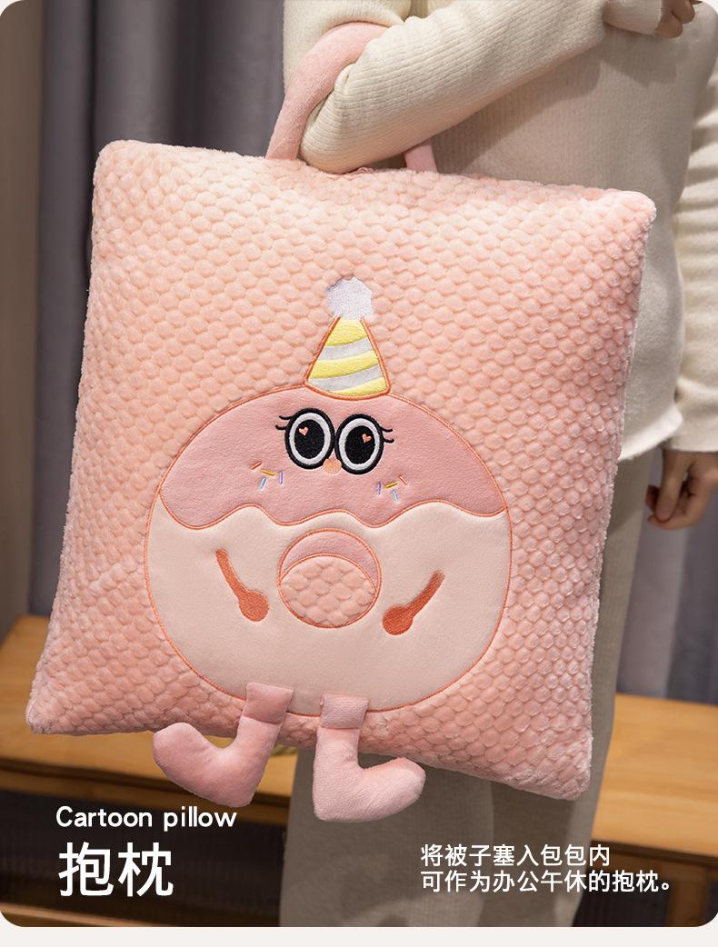 Manta de almohada portátil de terciopelo Doudou de dibujos animados, manta de siesta dos en uno de doble uso, regalo, manta de trémolo personalizada
