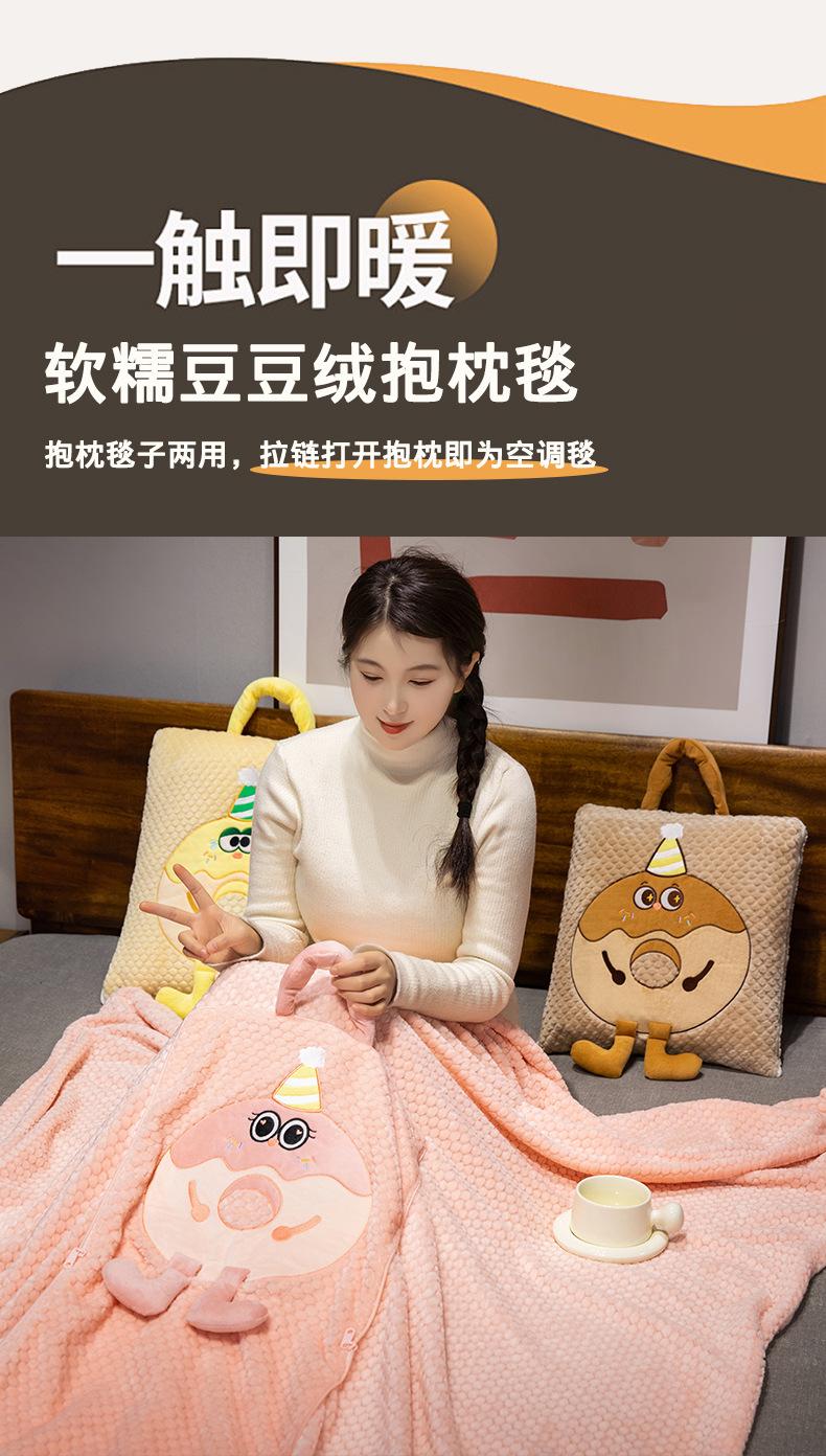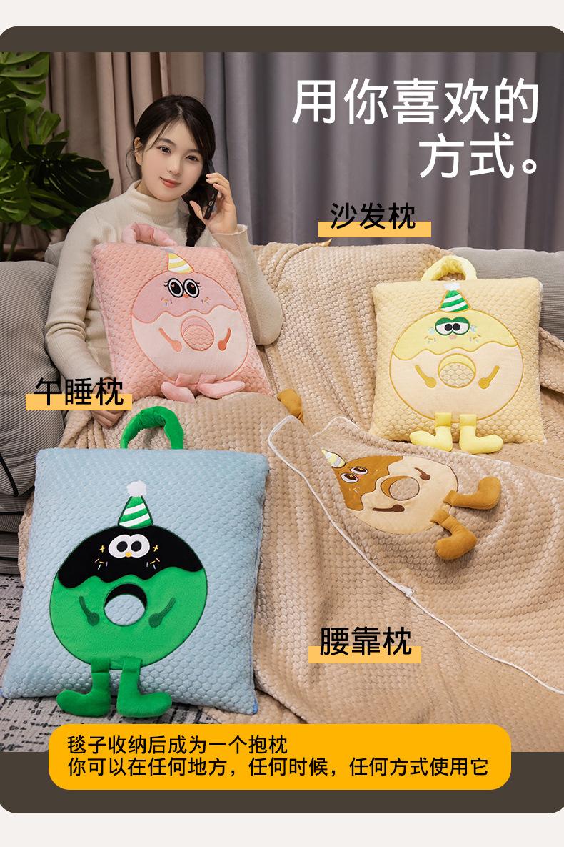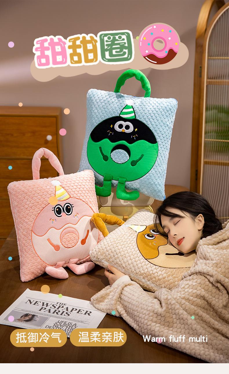 Manta de almohada portátil de terciopelo Doudou de dibujos animados, manta de siesta dos en uno de doble uso, regalo, manta de trémolo personalizada
