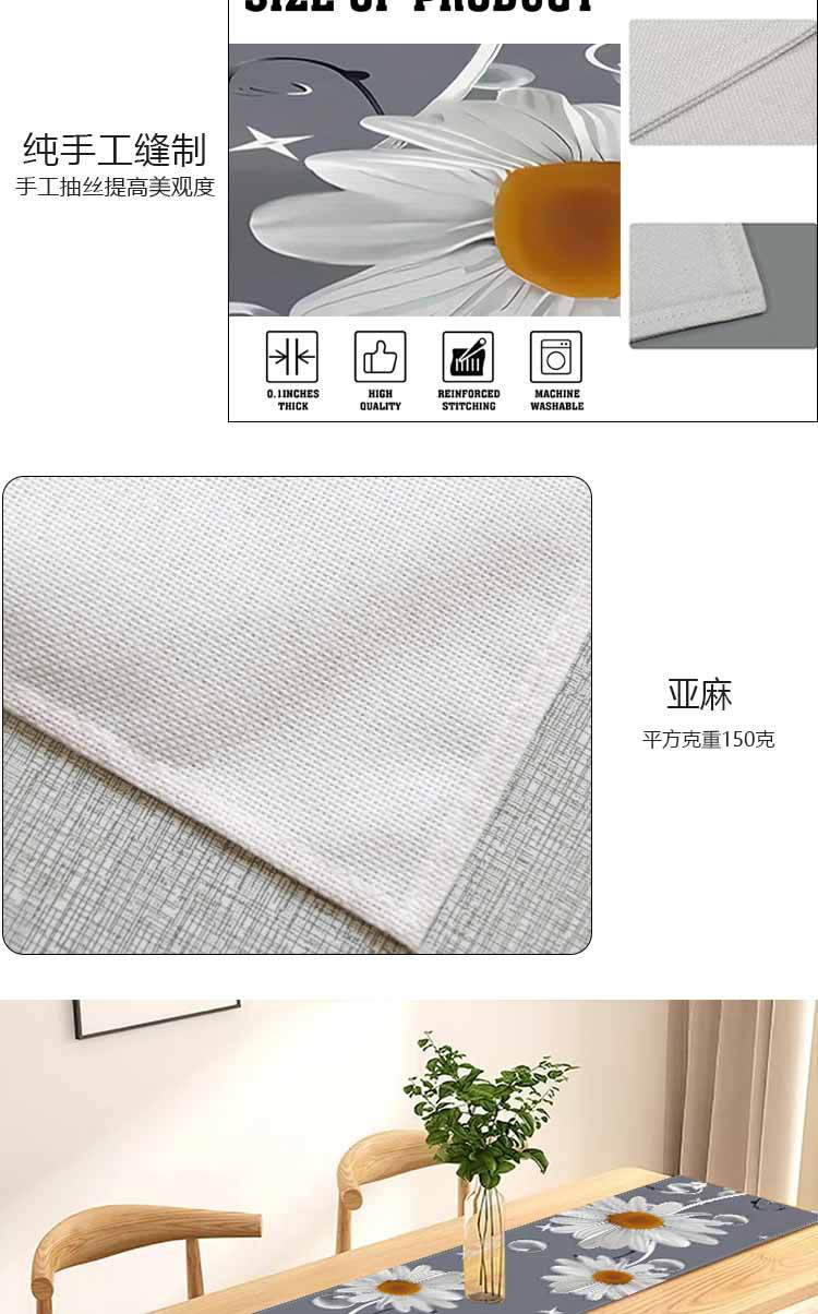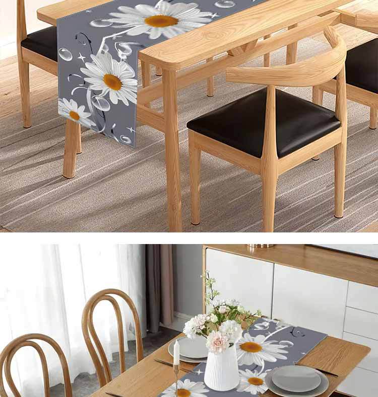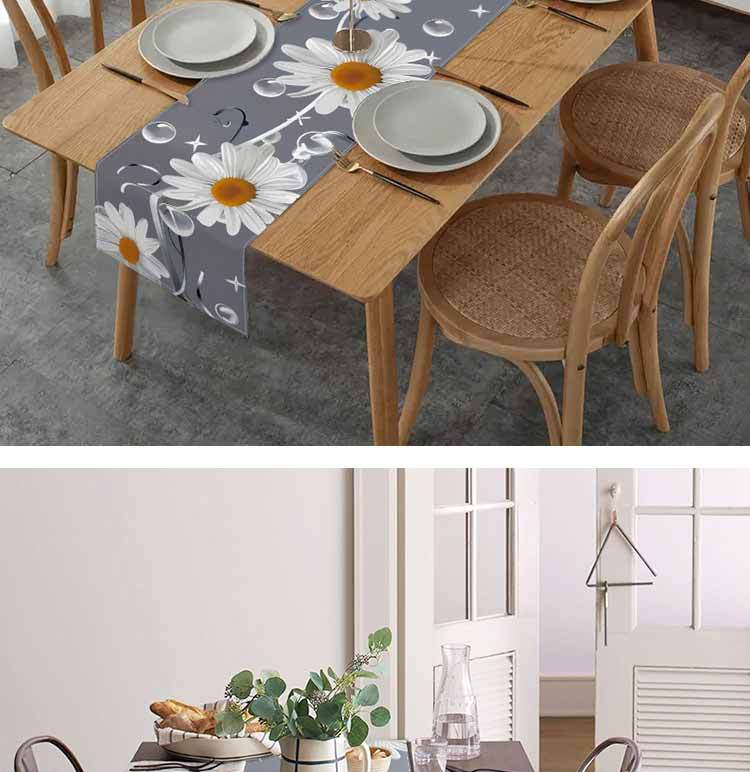 Camino de mesa con flores abstractas de primavera, mantel decorativo para el hogar, la sala de estar y el comedor, mantel con estampado de lino con borde cruzado.