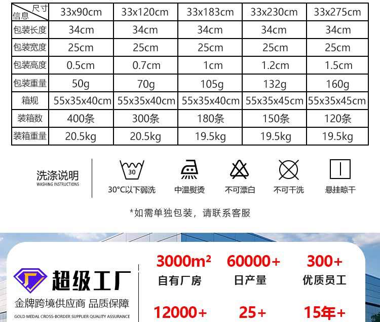 33*90cm (linen), 33x120cm (linen), 33x183cm (linen), 33x230cm (linen), 33x275cm (linen)