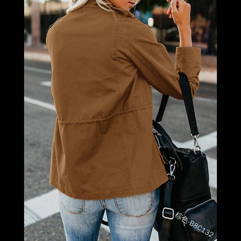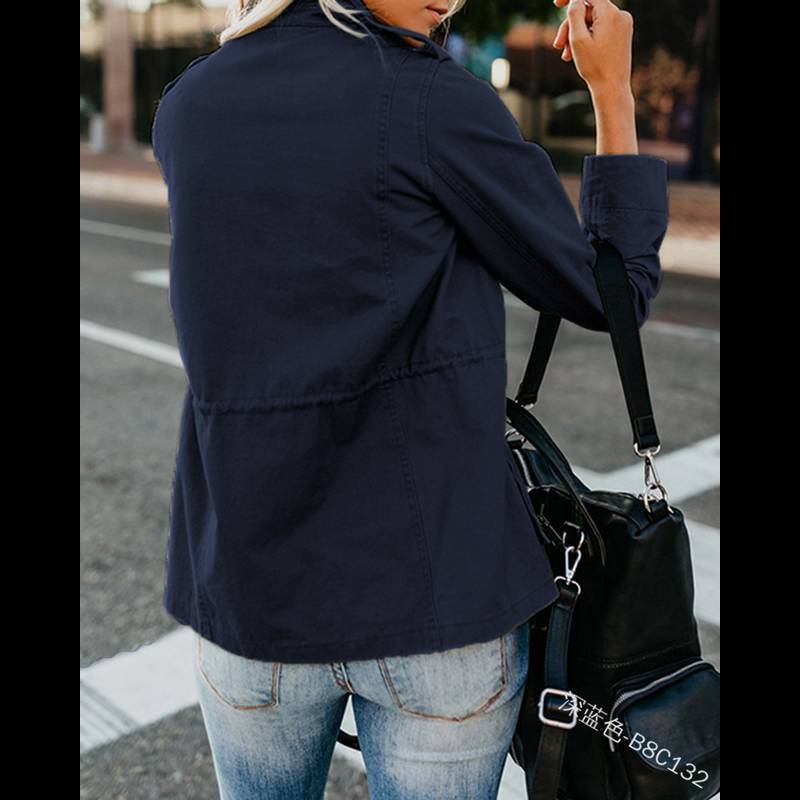 Chaqueta transfronteriza de Amazon, ajustada, moderna, de color liso, holgada, estilo coreano, con cremallera y múltiples bolsillos, para mujer.