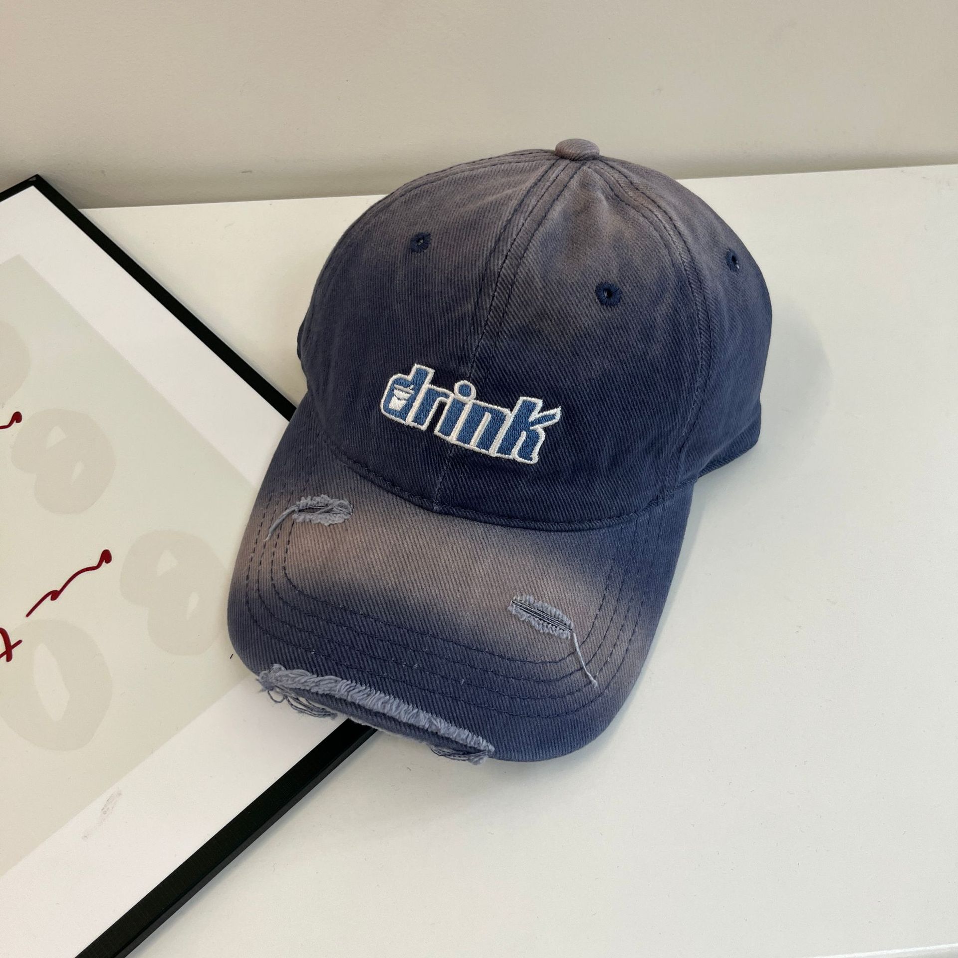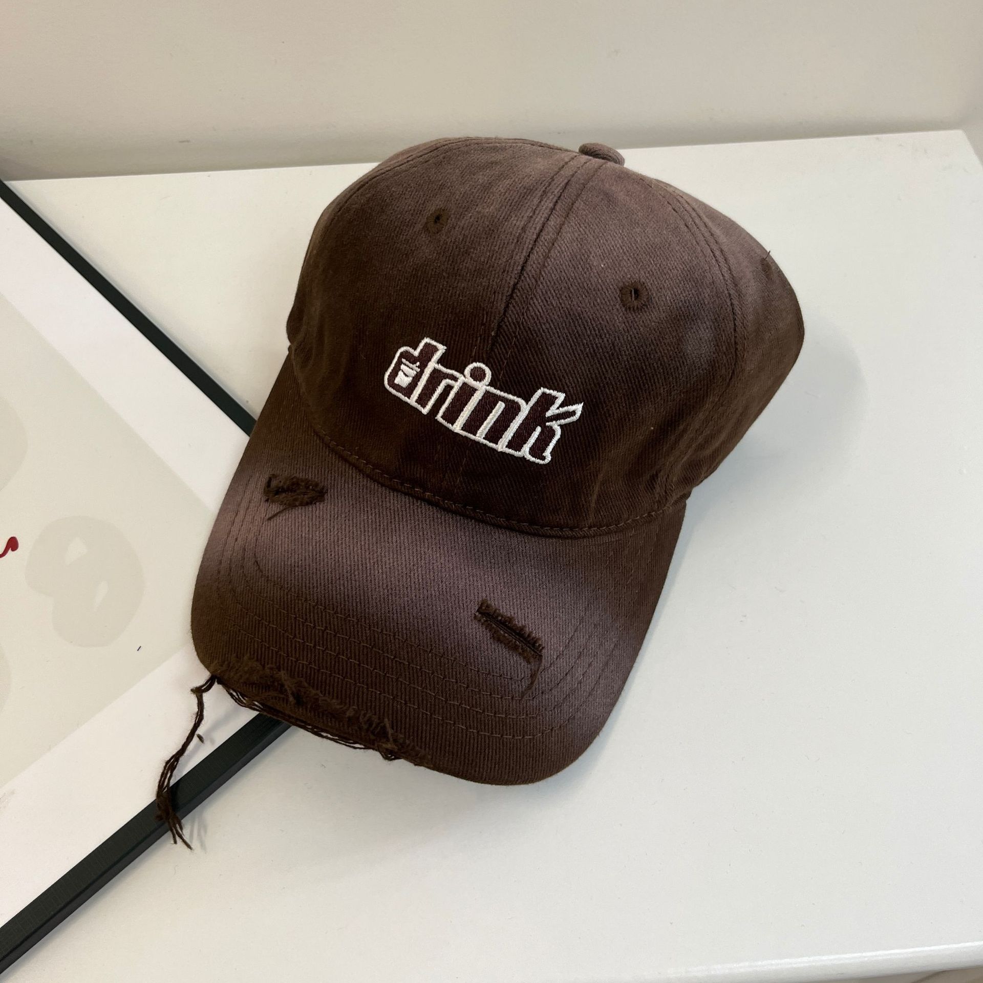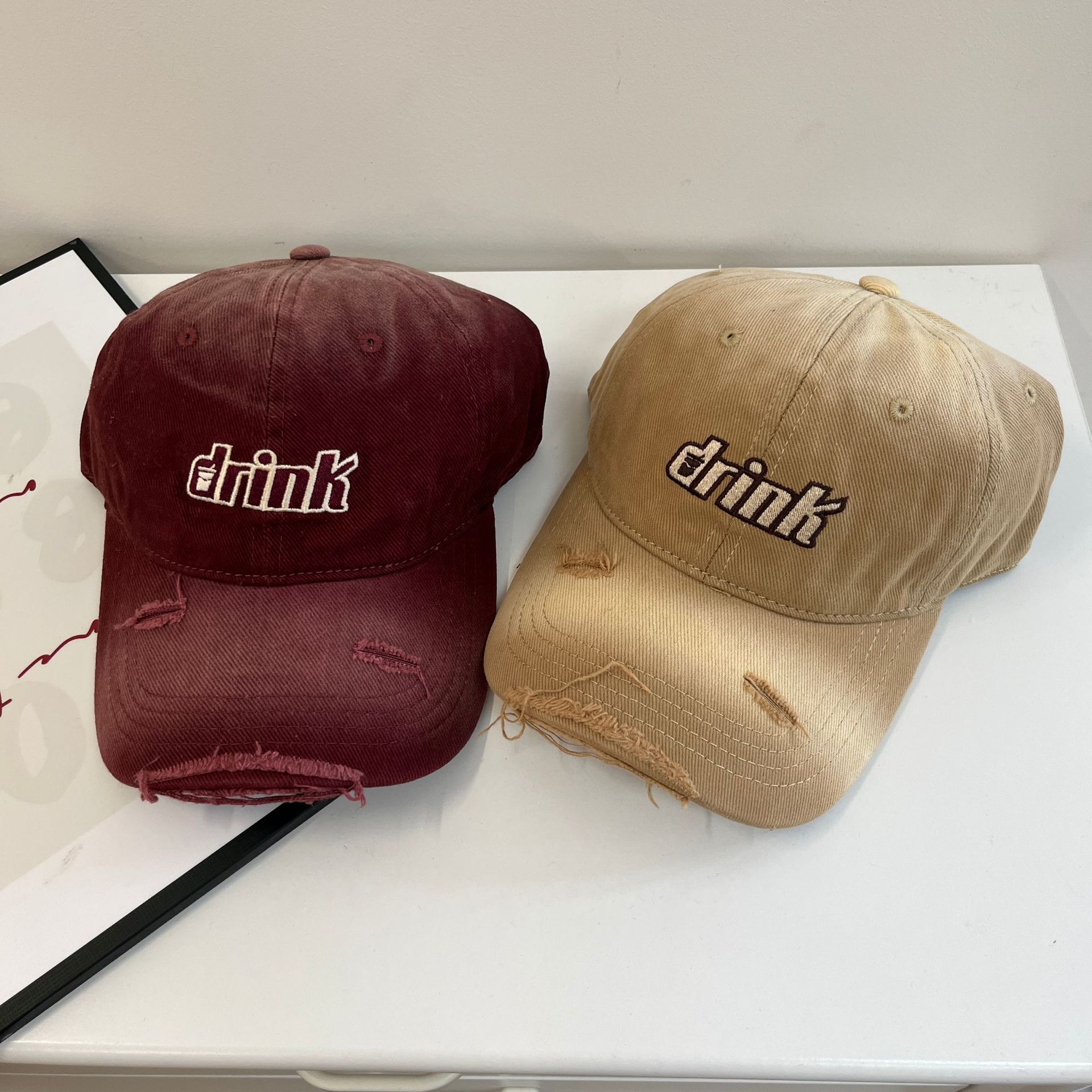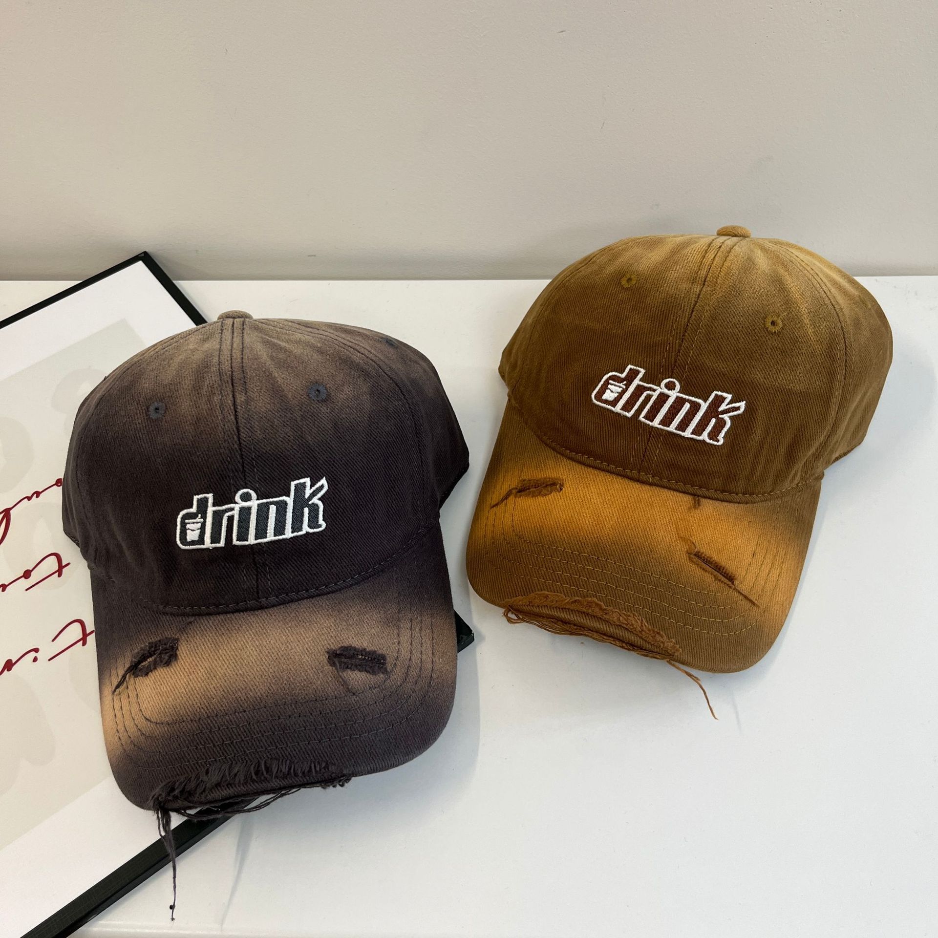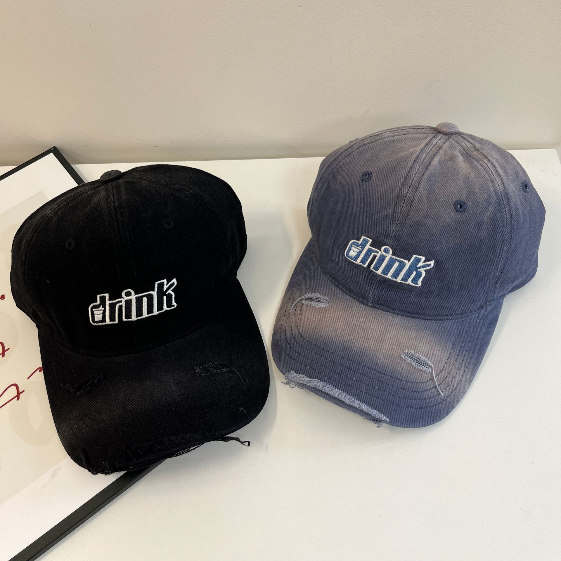 Nueva gorra de béisbol de mezclilla degradada lavada con agujeros y desgastada de estilo coreano para hombres y mujeres con letras bordadas de bebidas