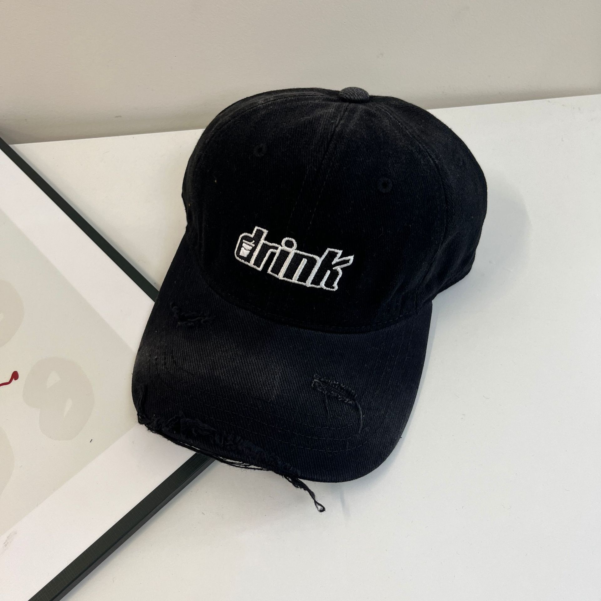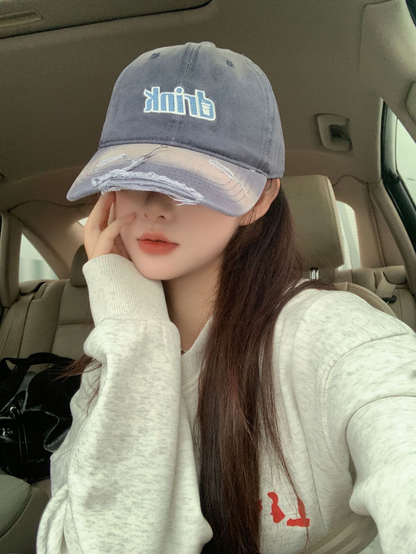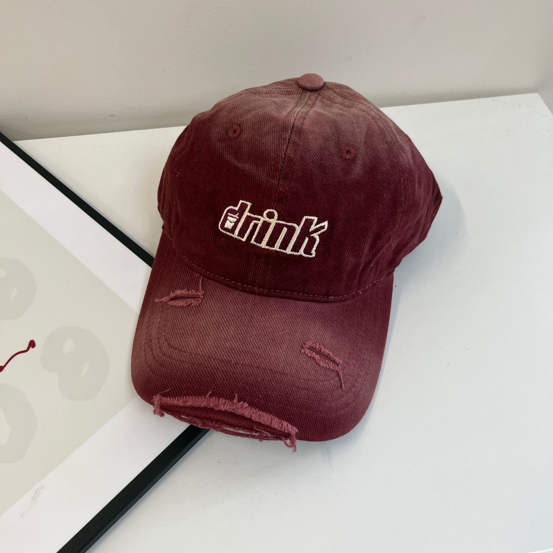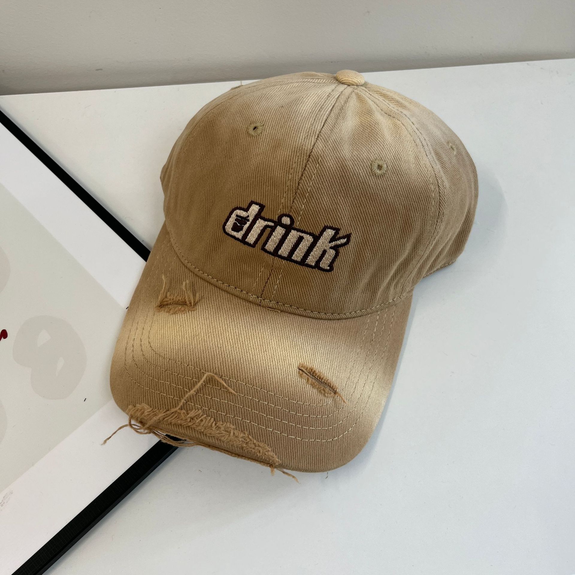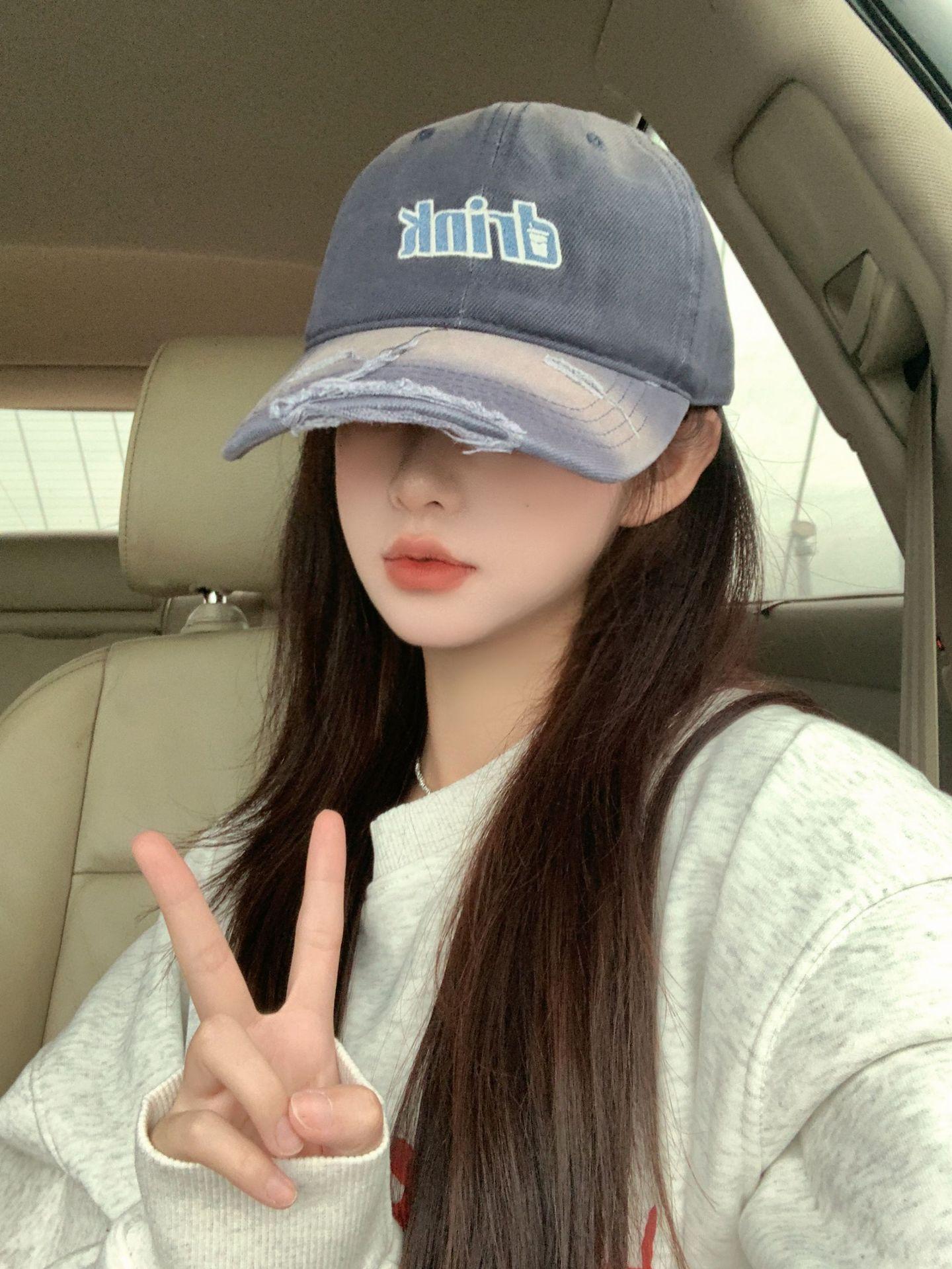 Nueva gorra de béisbol de mezclilla degradada lavada con agujeros y desgastada de estilo coreano para hombres y mujeres con letras bordadas de bebidas