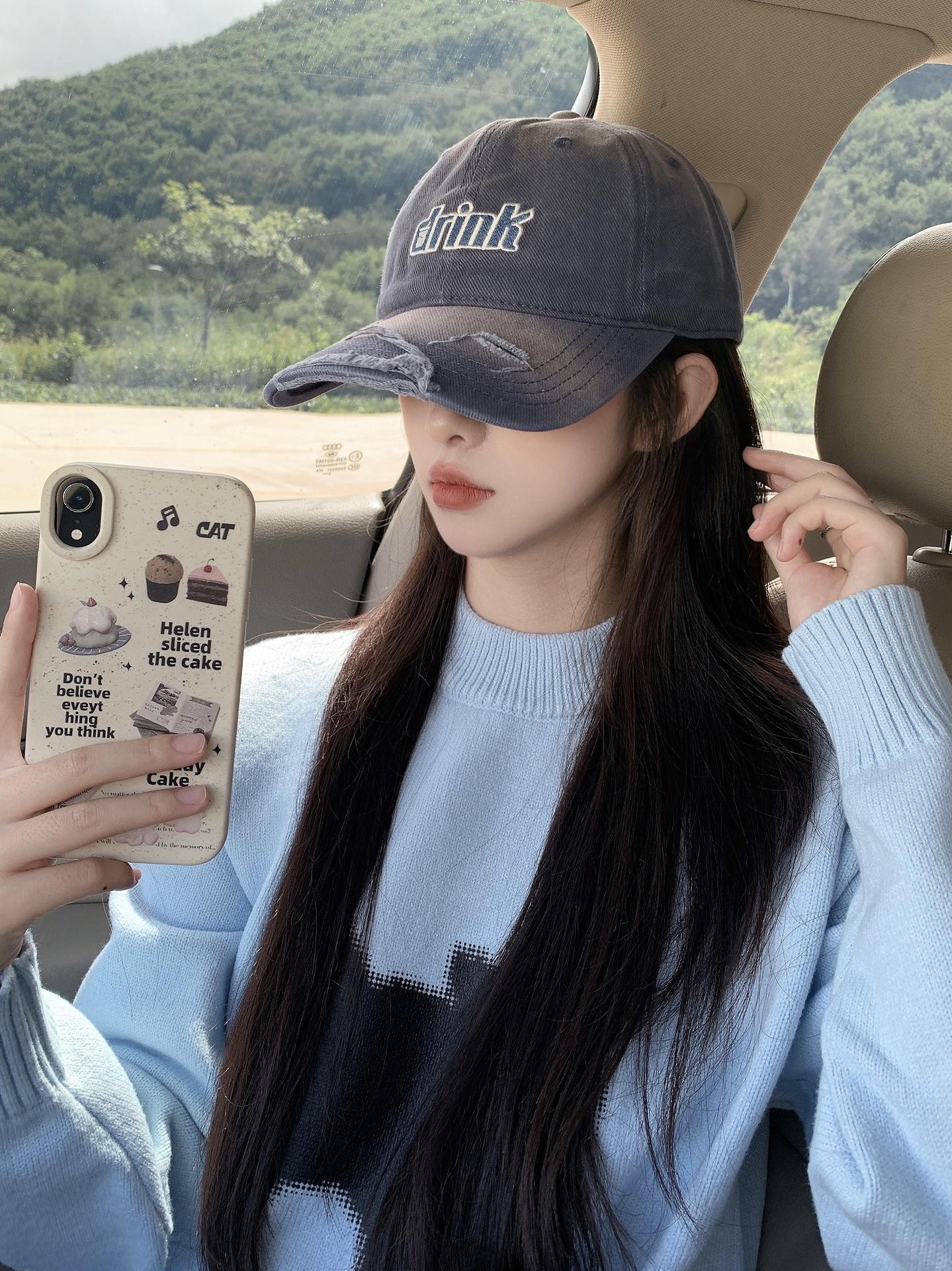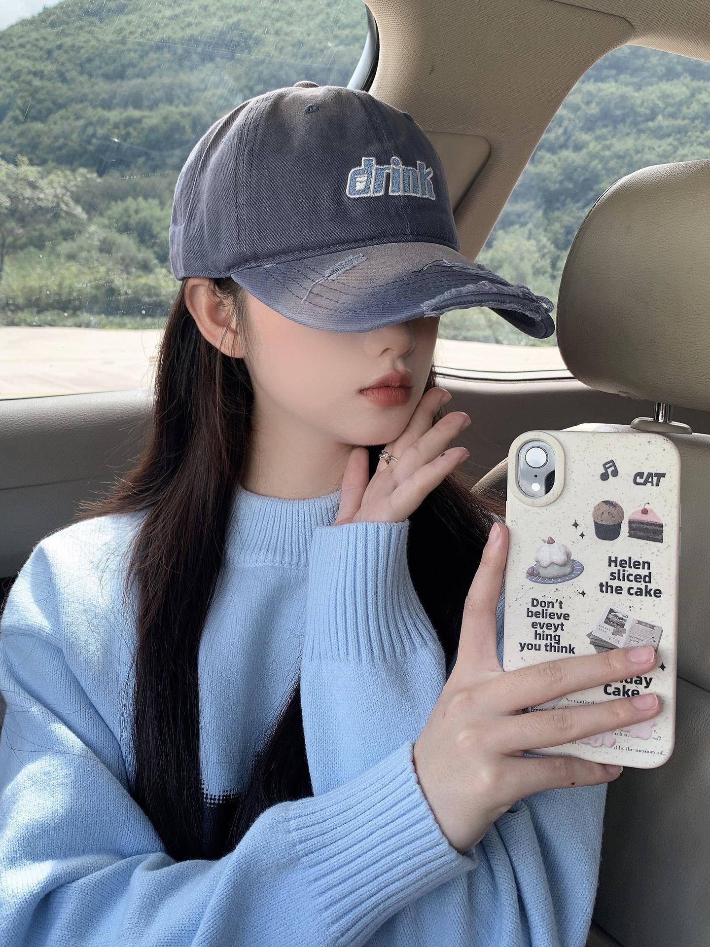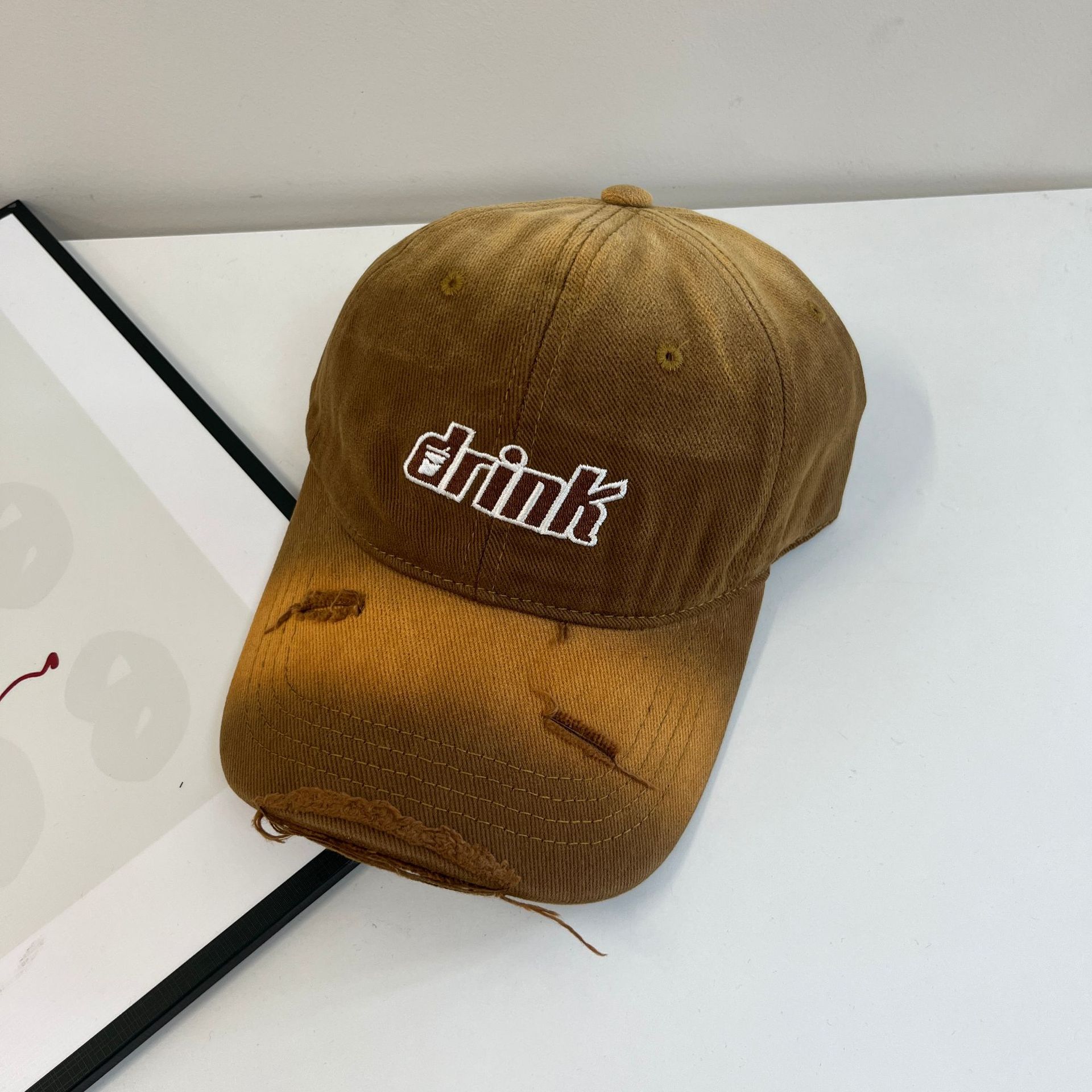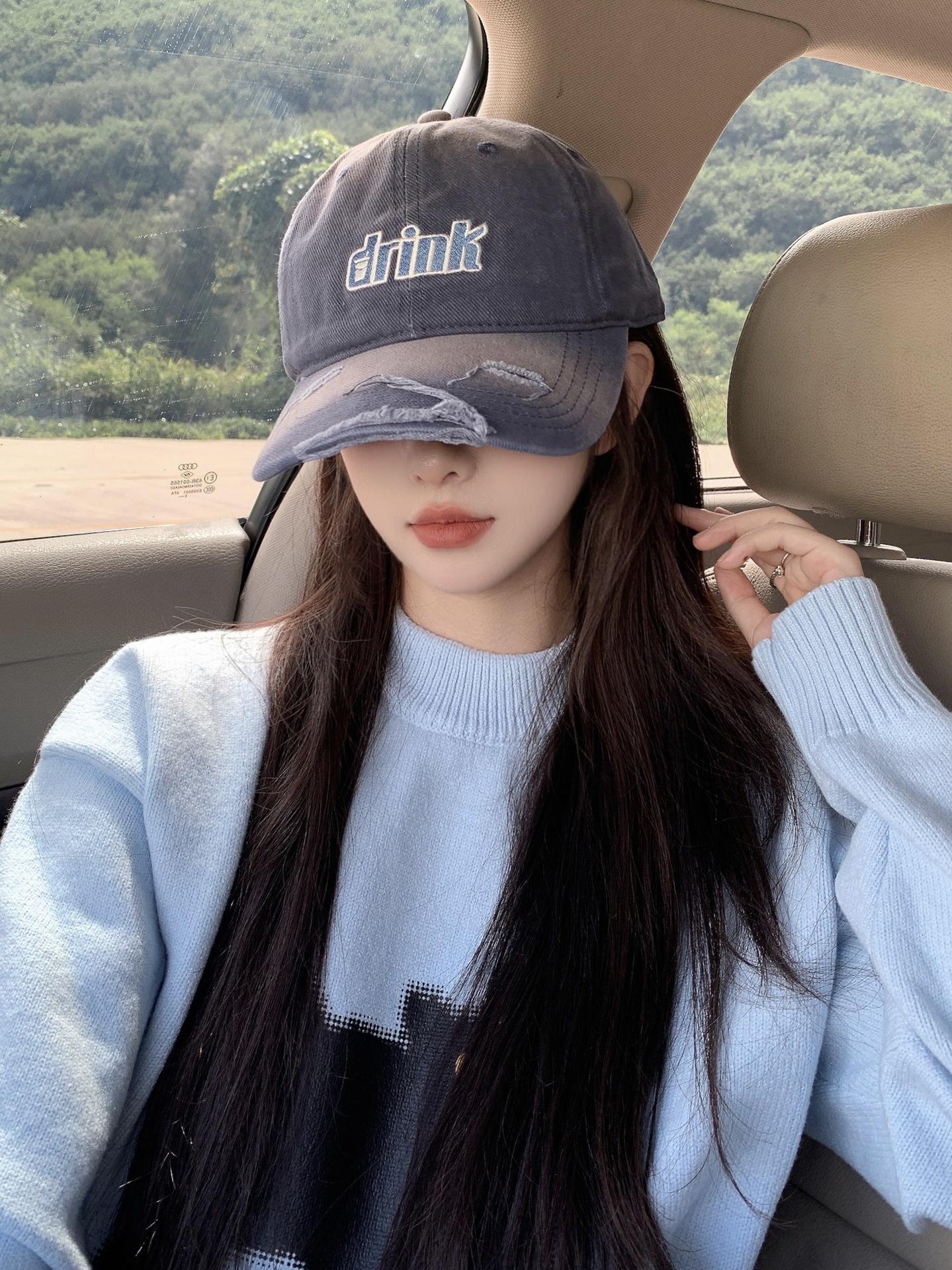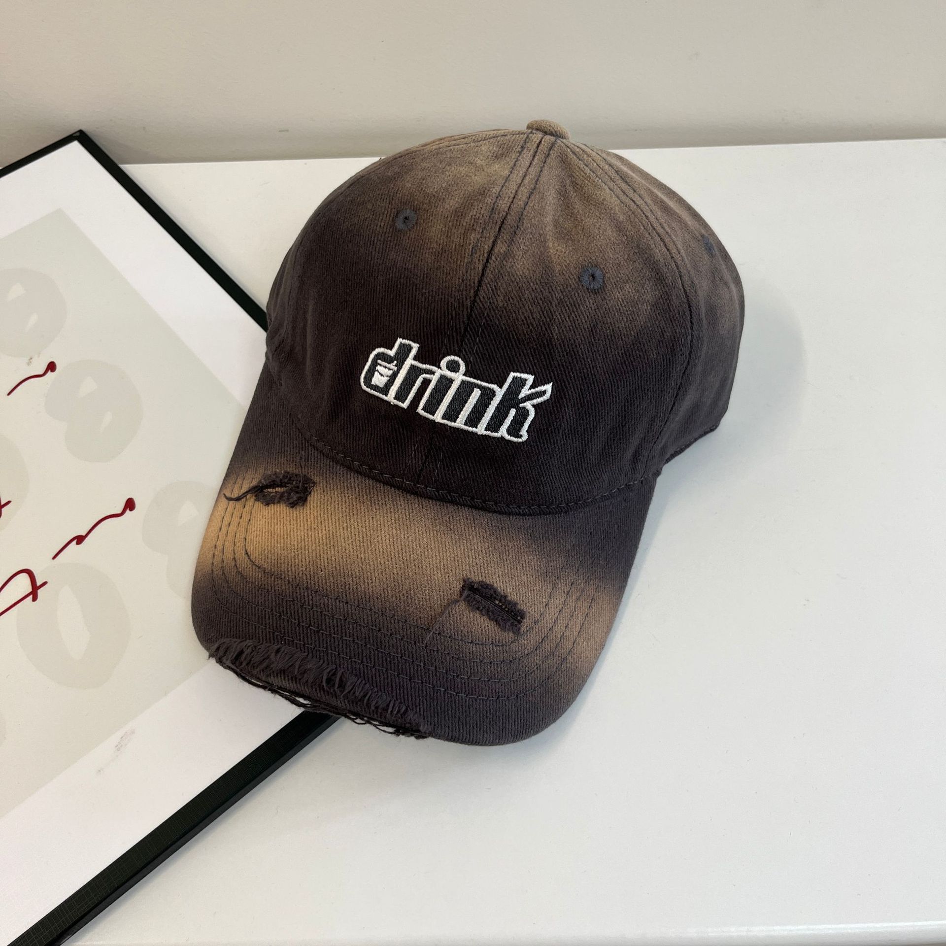 Nueva gorra de béisbol de mezclilla degradada lavada con agujeros y desgastada de estilo coreano para hombres y mujeres con letras bordadas de bebidas
