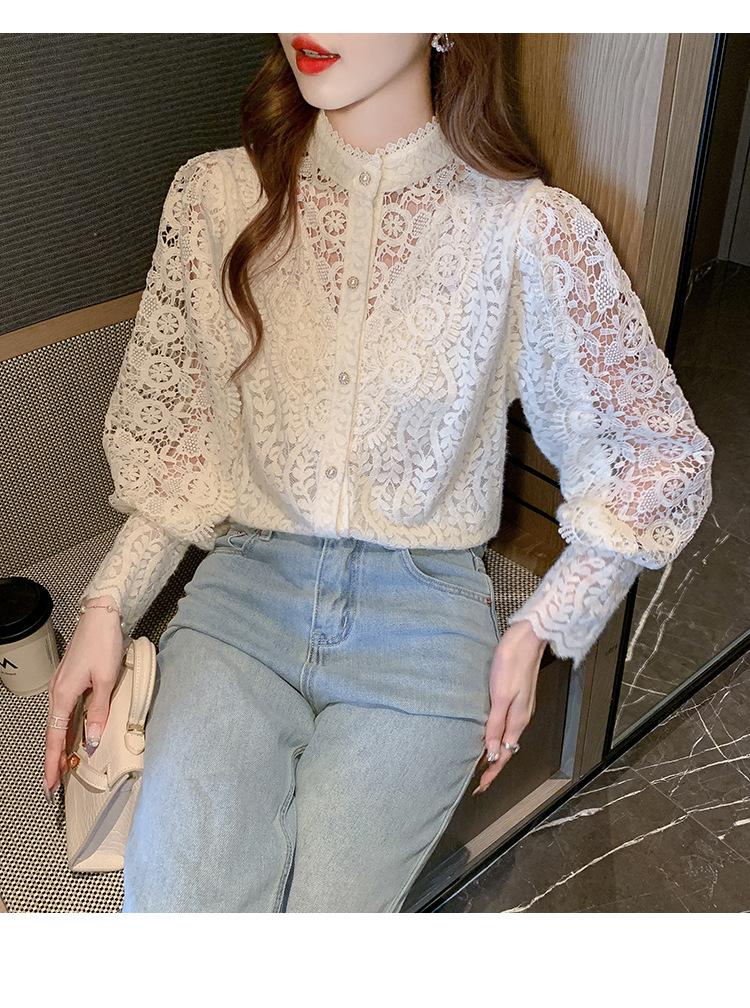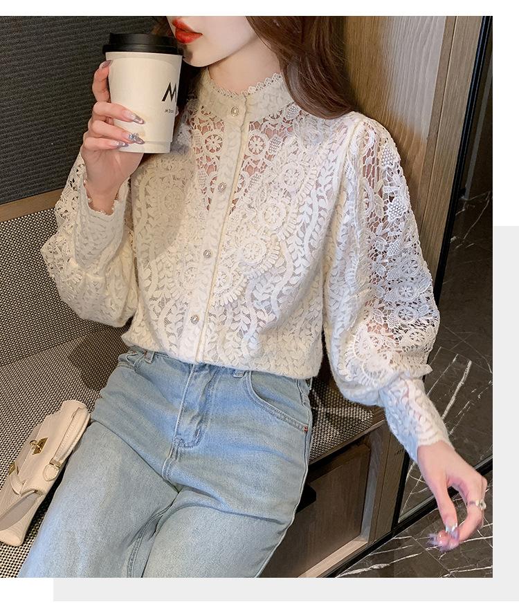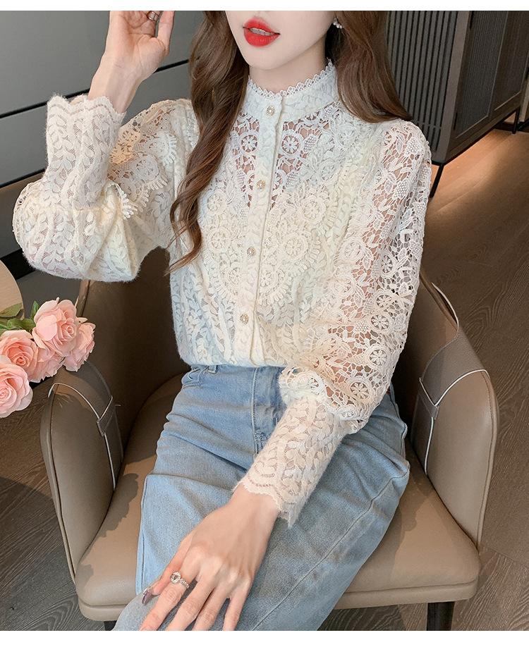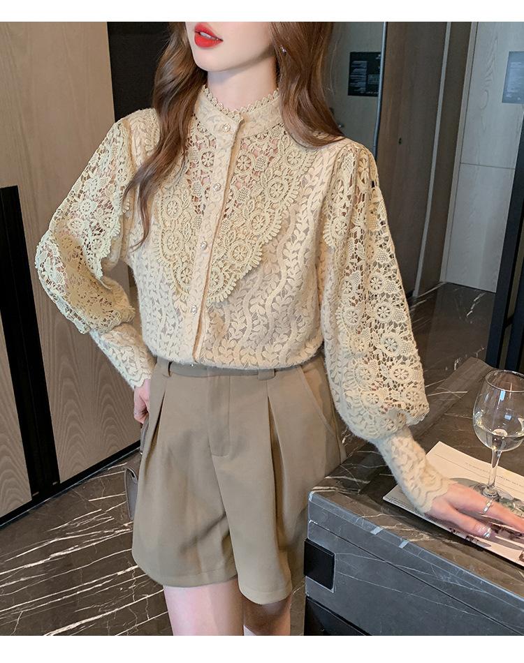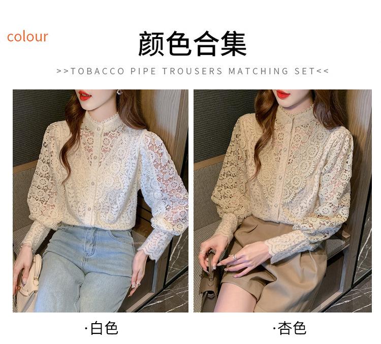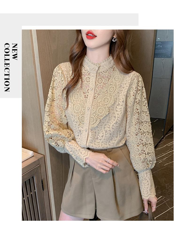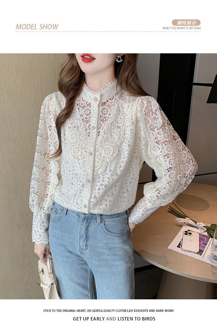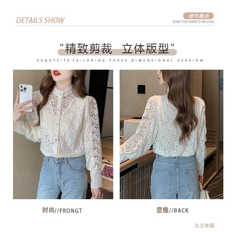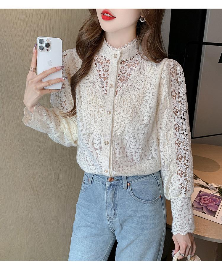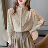 Camisa de encaje estilo palacio francés para mujer, otoño 2024, nueva blusa de manga larga elegante con corte versátil y estilo K.