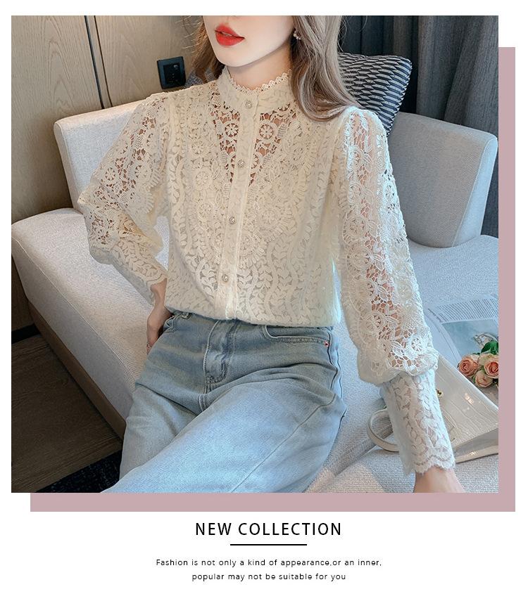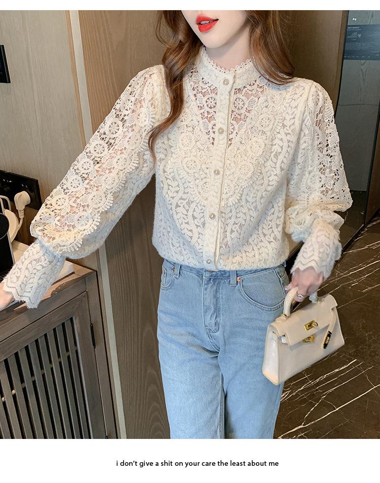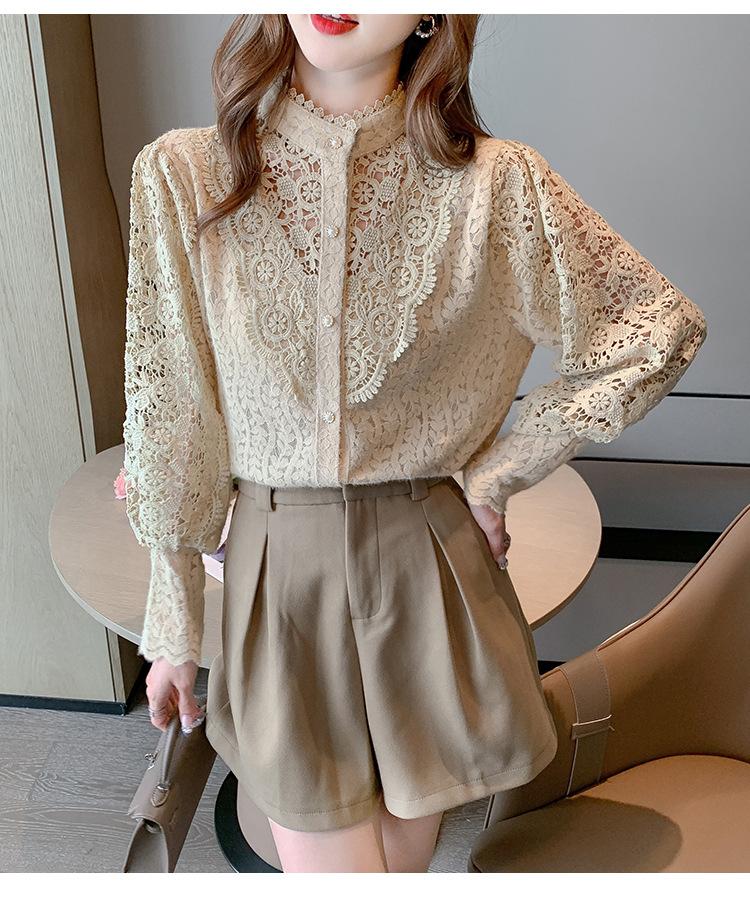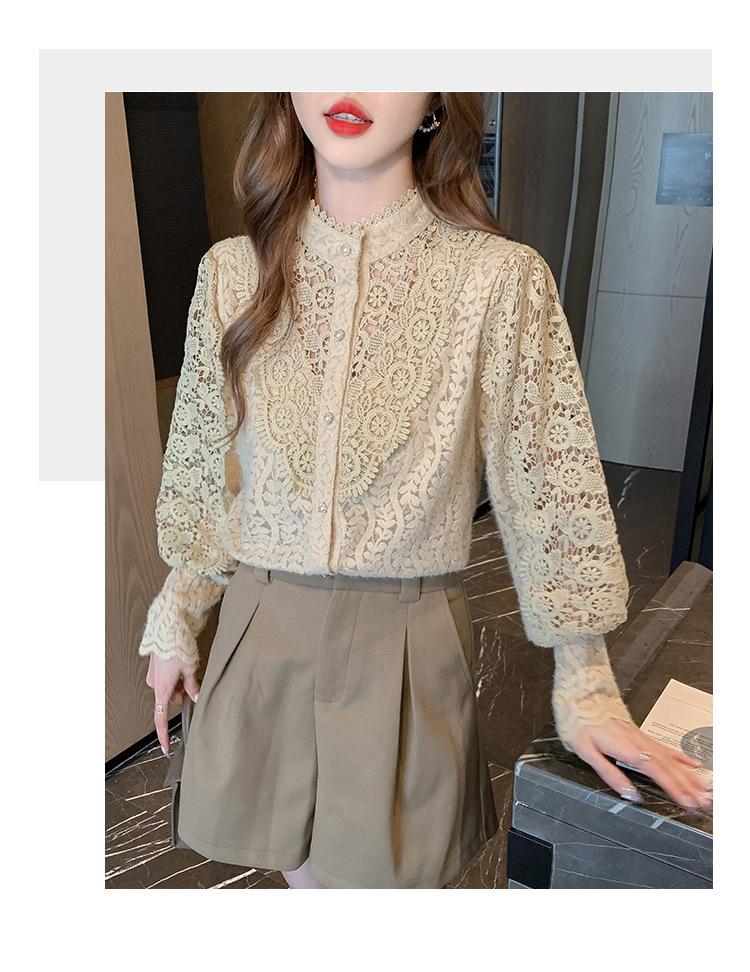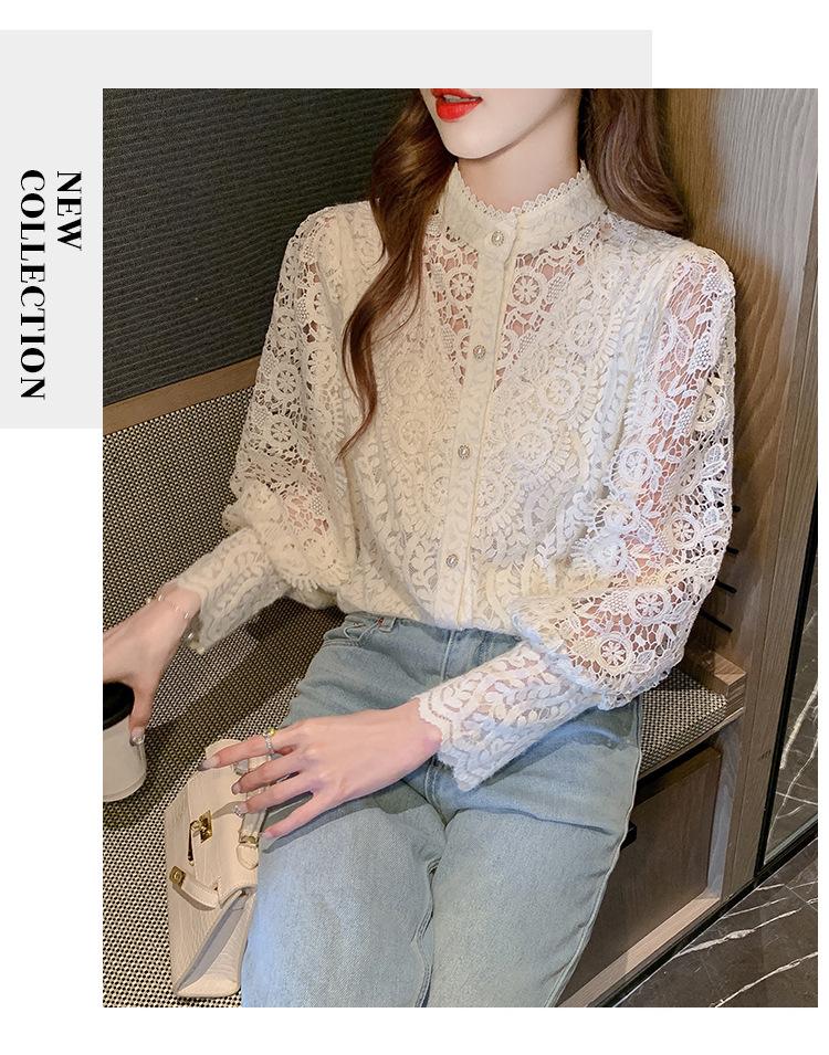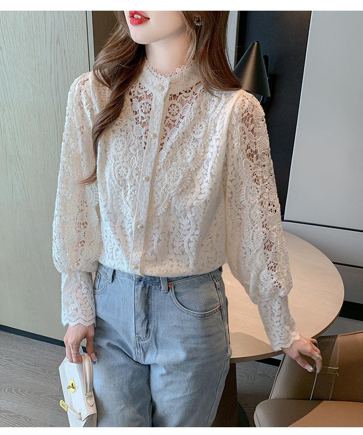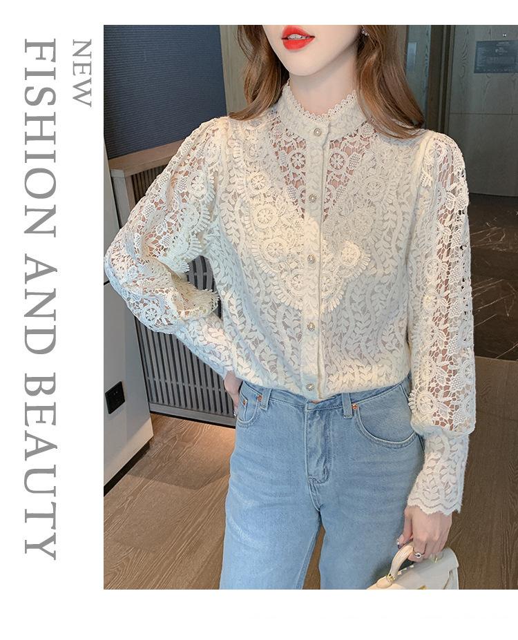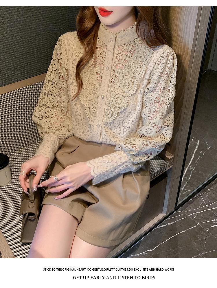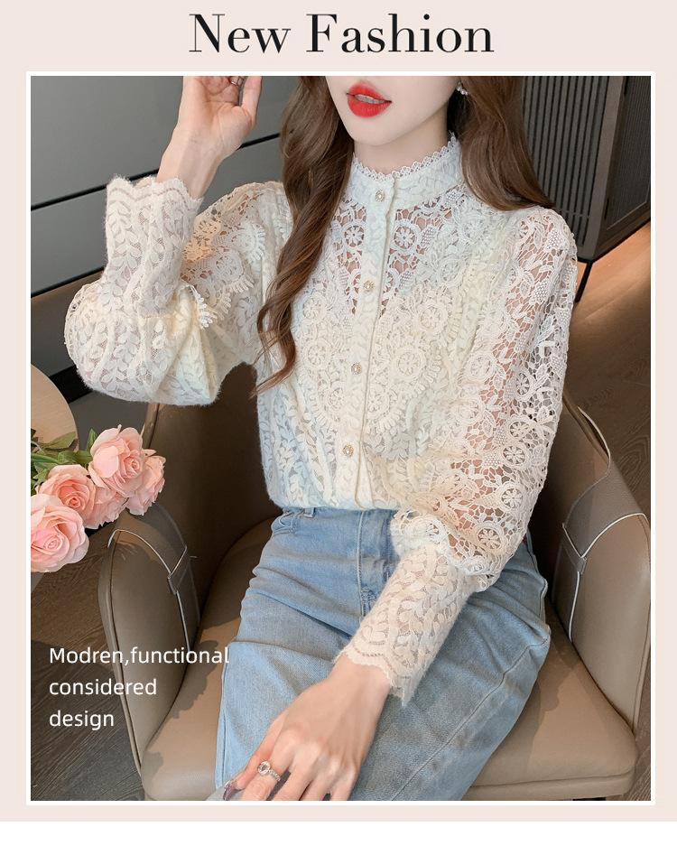 Camisa de encaje estilo palacio francés para mujer, otoño 2024, nueva blusa de manga larga elegante con corte versátil y estilo K.