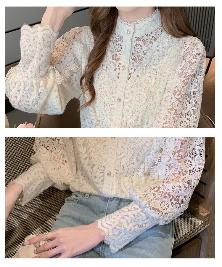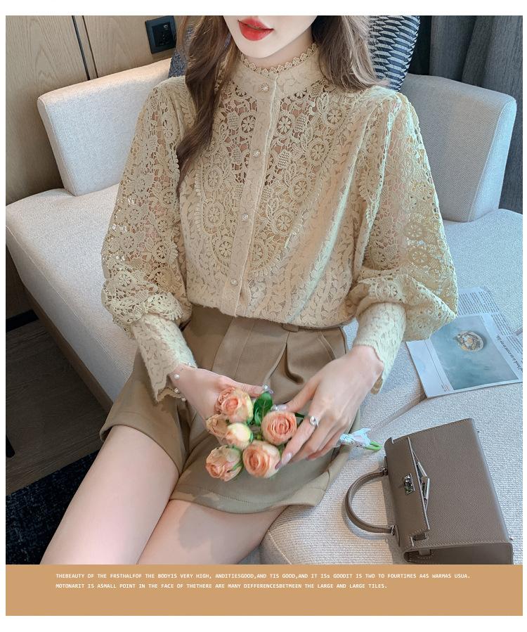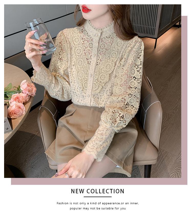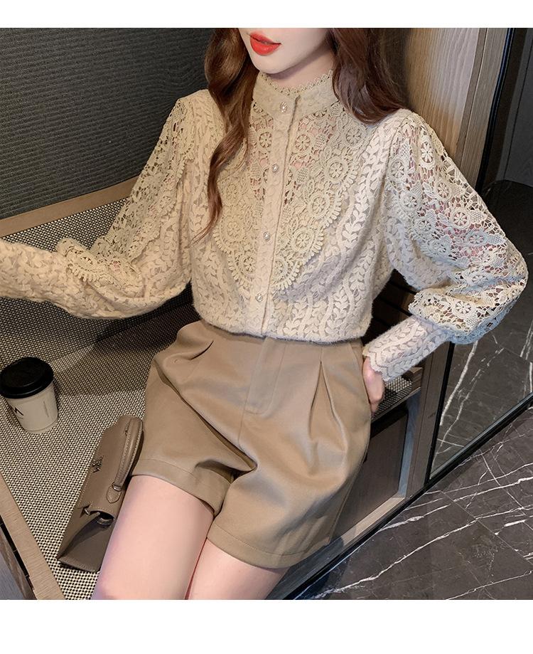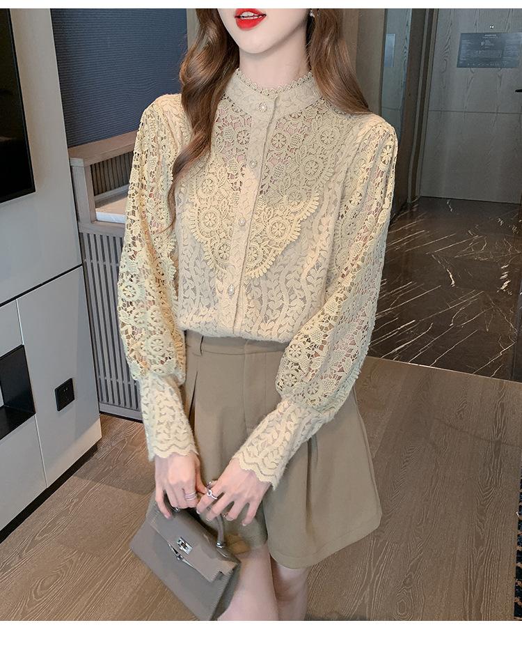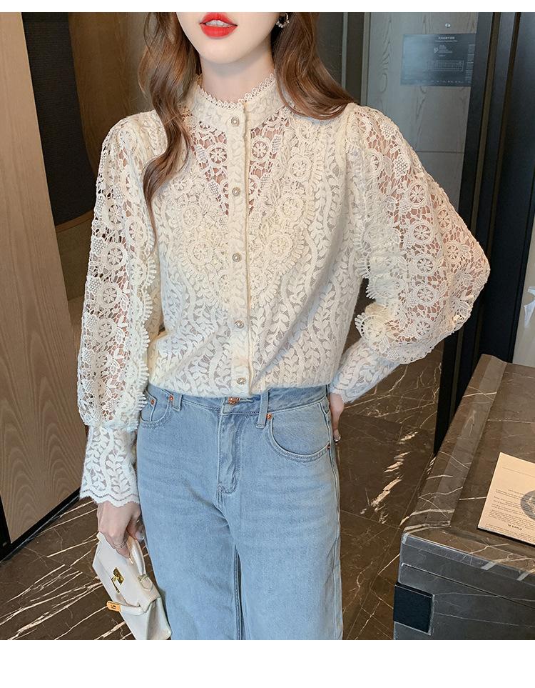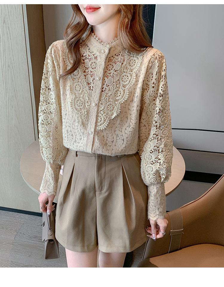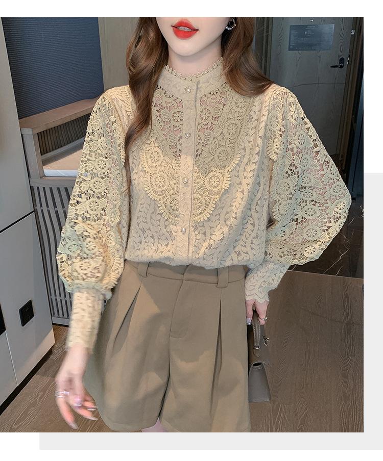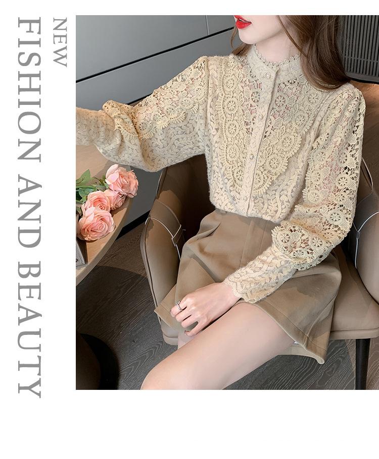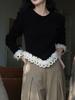 Camisa de encaje estilo palacio francés para mujer, otoño 2024, nueva blusa de manga larga elegante con corte versátil y estilo K.