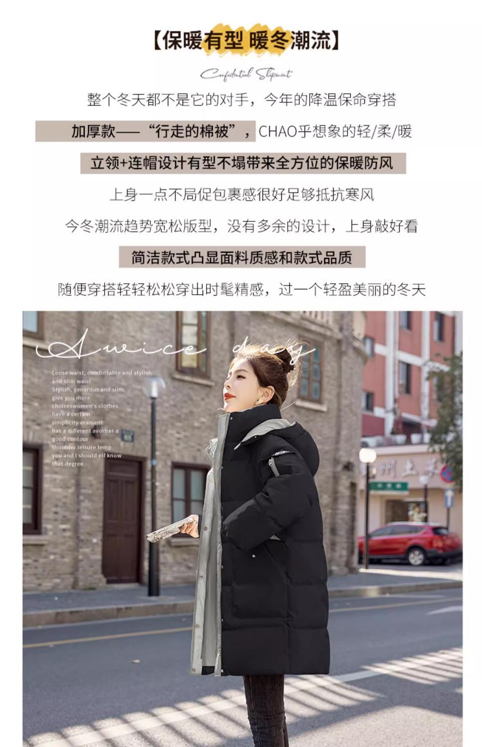 Chaqueta acolchada de algodón para mujer, de longitud media, estilo coreano, holgada, gruesa y cálida, por encima de la rodilla, para invierno de 2024