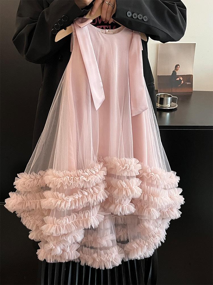 Vestido de Princesa de Moda Estilo Coreano 2025 Invierno Nuevo Diseño Moderno para Niñas Sin Mangas Tipo Hada Vestido para Niñas