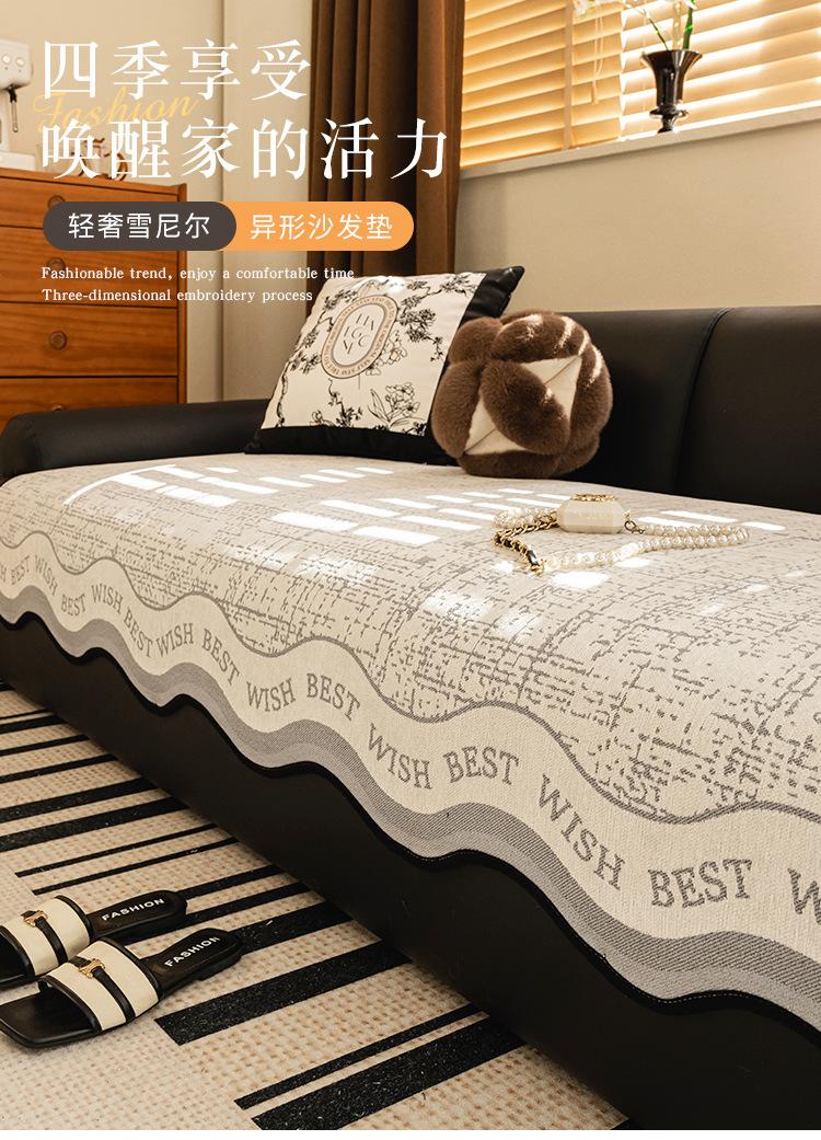 Cojín de sofá de chenilla irregular universal para las cuatro estaciones antideslizante 2025 nuevo cojín de sofá con forma simple