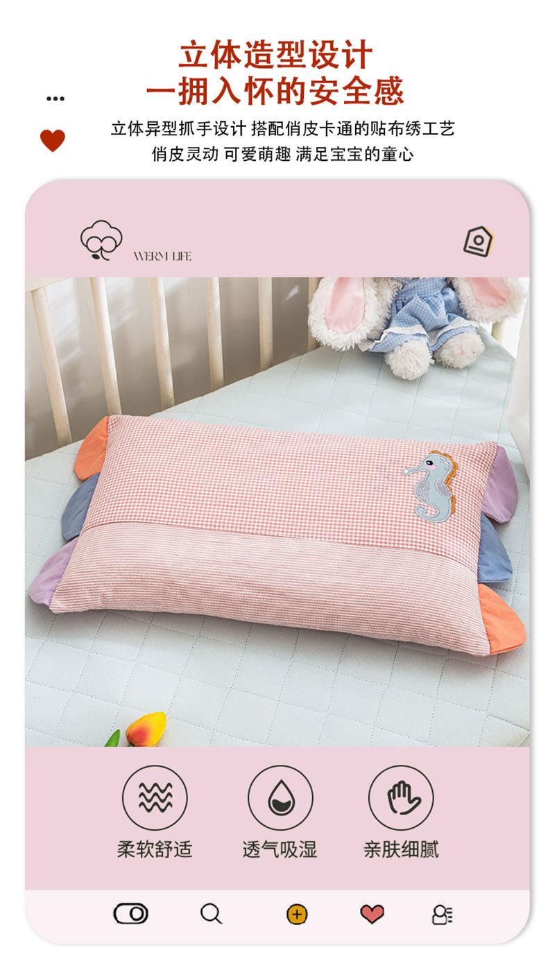 Almohada de Algodón Puro para Niños Algodón Lavado Algodón Puro Jardín de Niños Bebé Removible y Lavable Bordado de Dibujos Animados Almohada para Siesta Universal para Todas las Estaciones