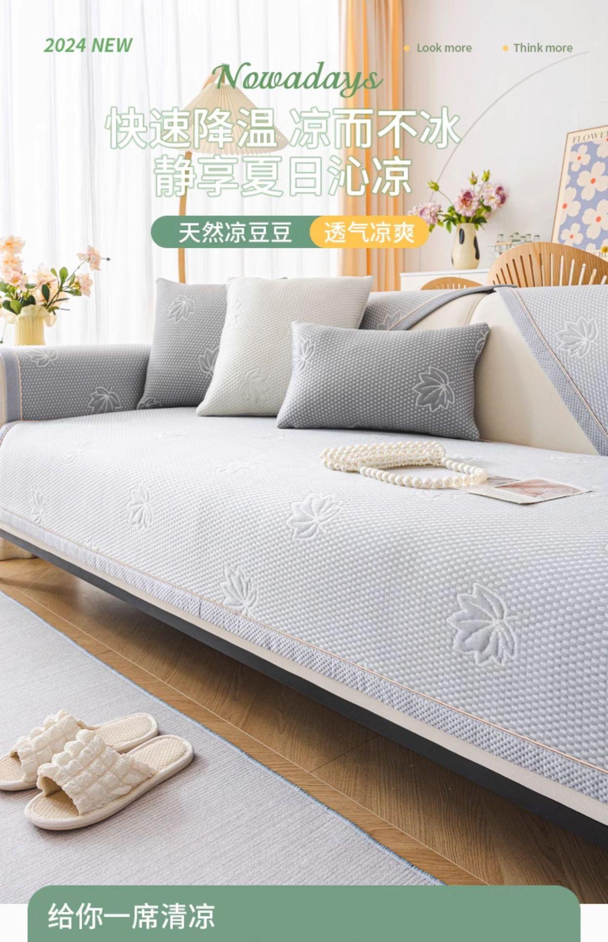 Cojín de sofá de alta calidad, tapete de seda de hielo de verano, funda de sofá de cuero antideslizante, nueva funda de tela 2024, toalla