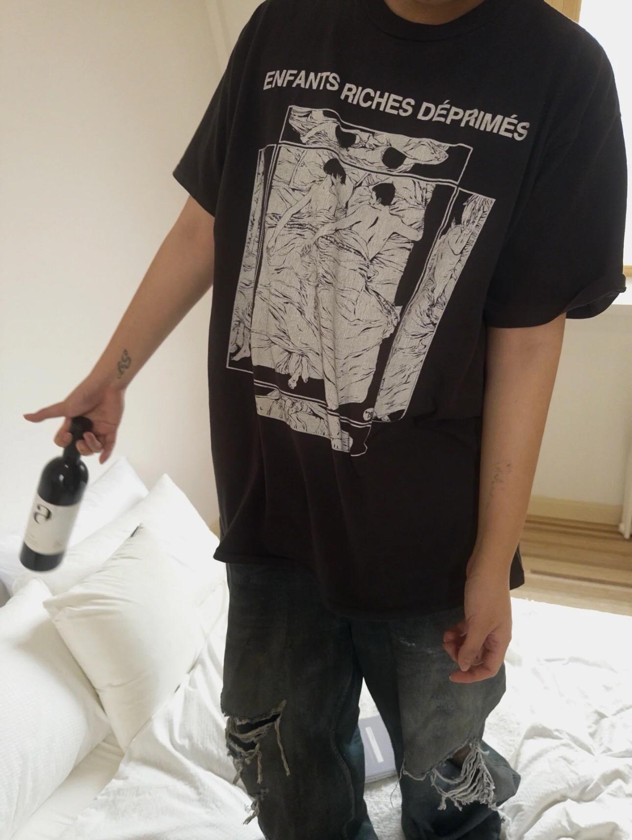 Camiseta de manga corta con cuello redondo y cuello redondo para hombre, de algodón puro, de segunda generación, de la marca estadounidense ERD Melancholy Rich, para verano, para pareja.