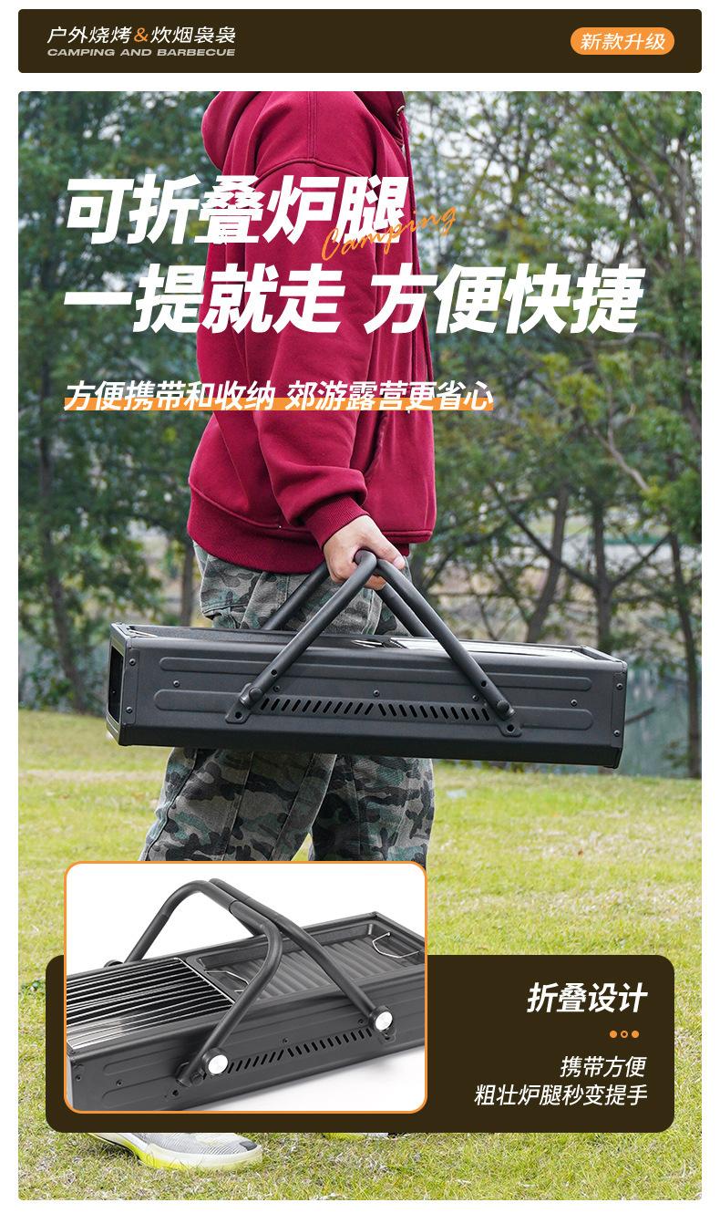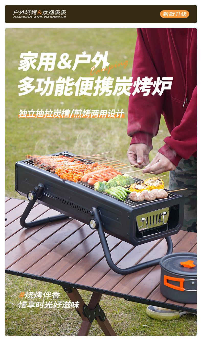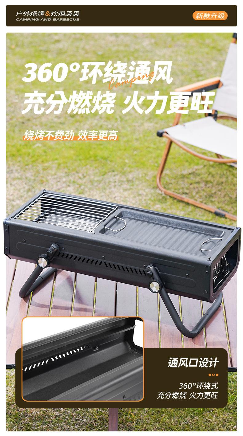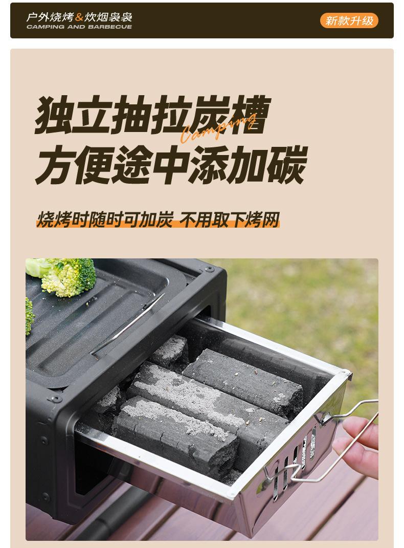 Black portable pull-out stove (square grid), Black portable pull-out stove (strip mesh), Black portable pull-o...