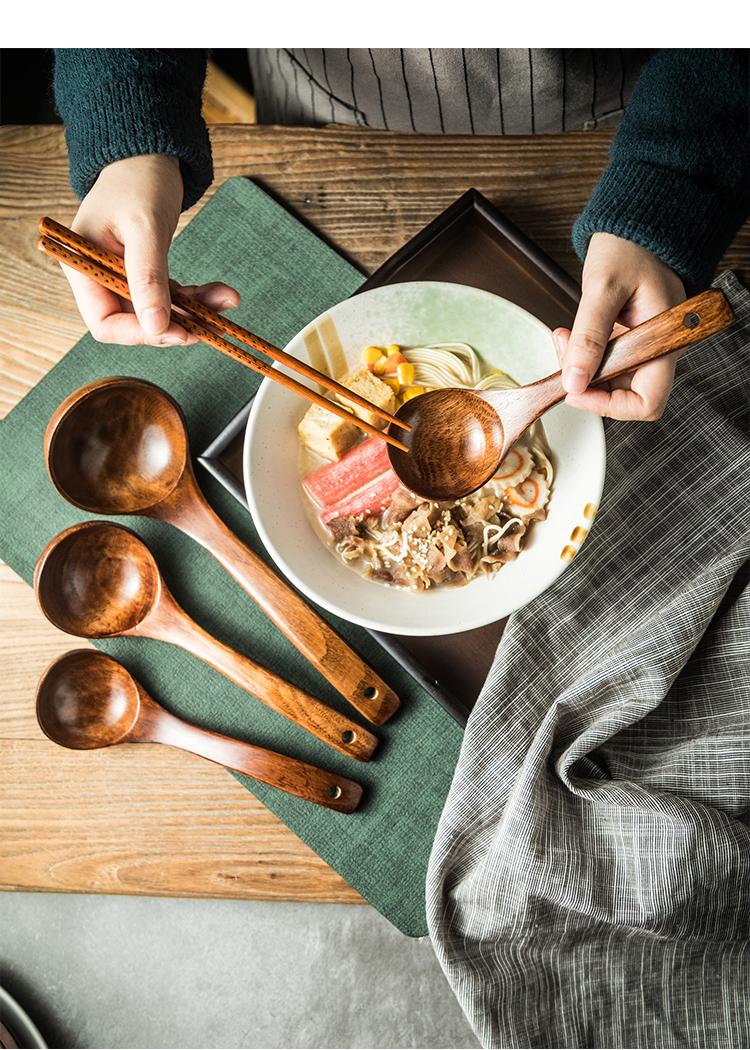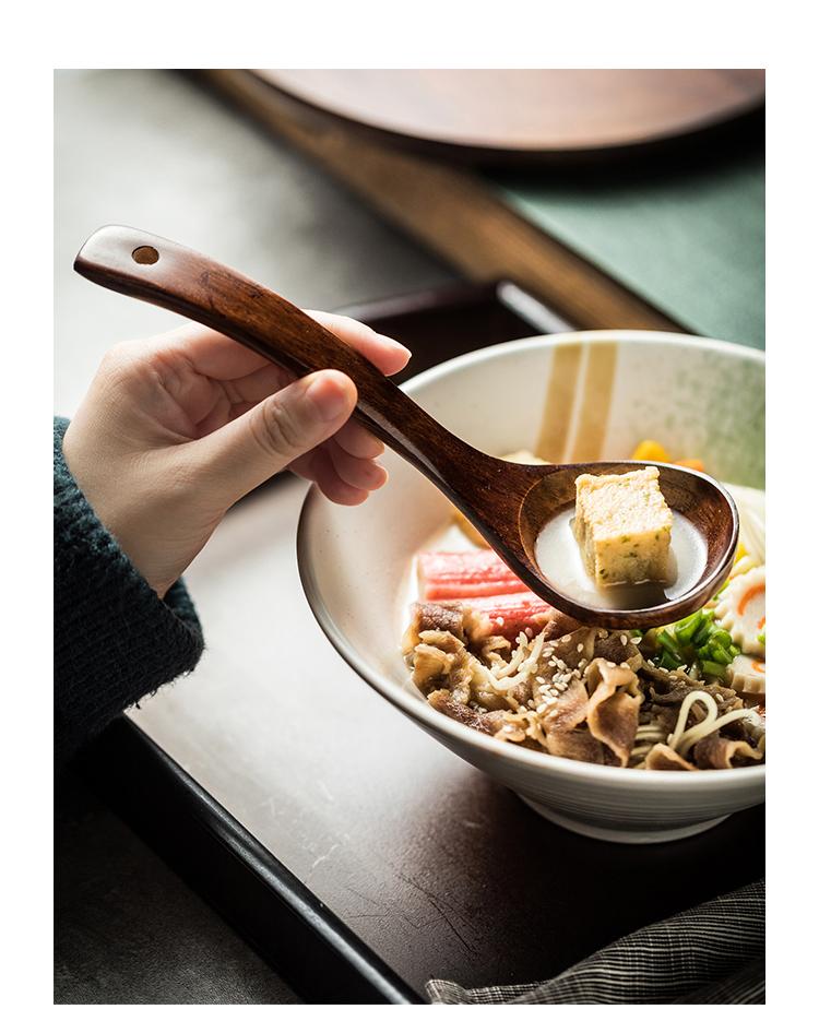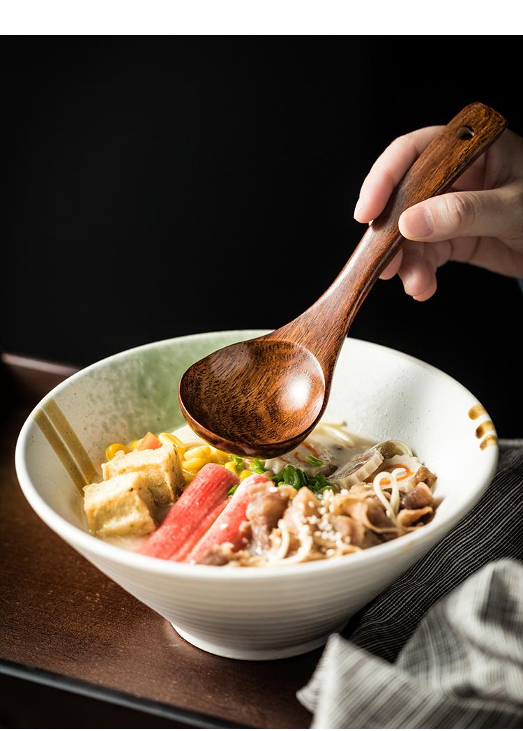 Cuchara de sopa grande de estilo japonés, cuchara de madera, cuchara de ramen de madera para el hogar, cuchara de arroz antiadherente, cuchara de sopa de mango largo, cuchara para gachas