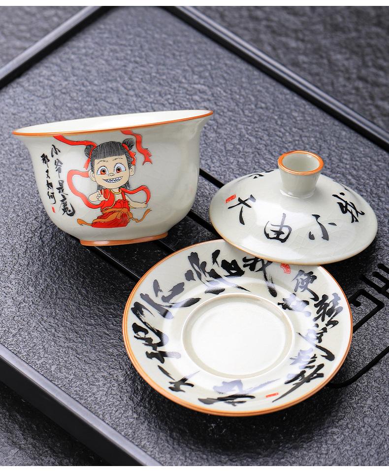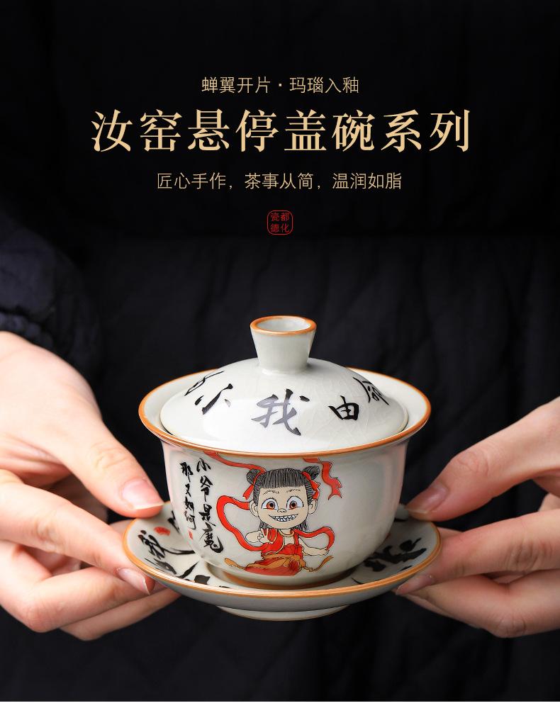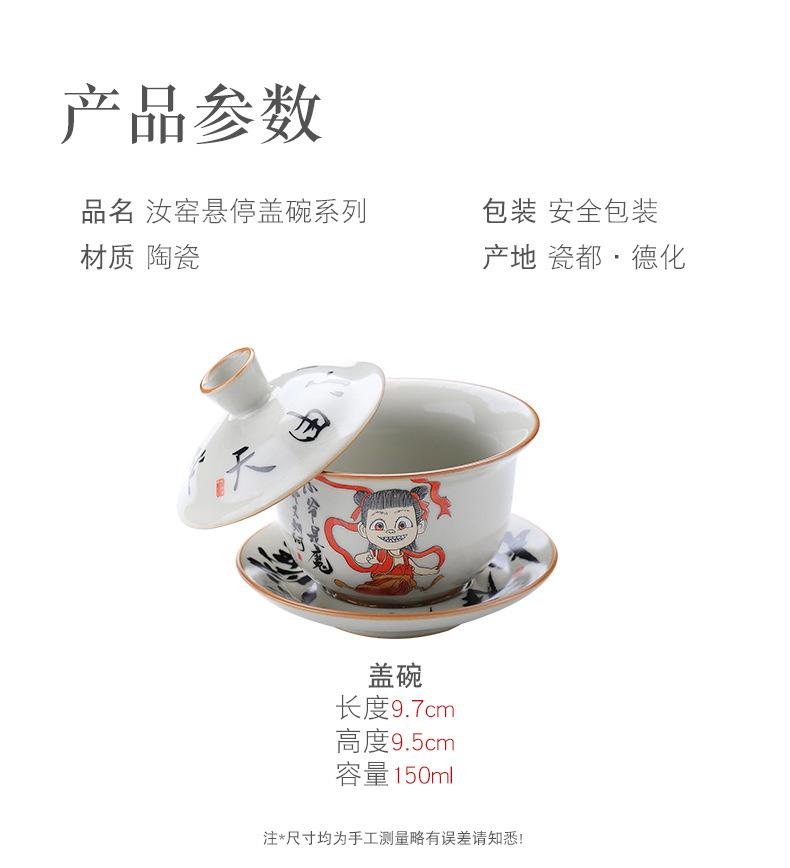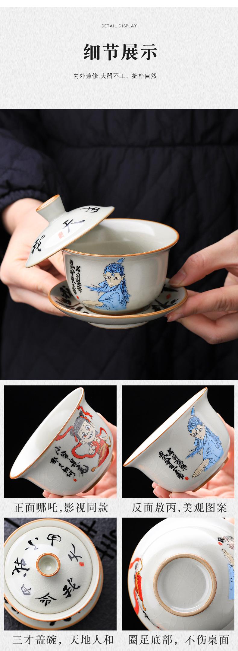Cerámica doméstica que cubre tazón juego de té kung fu tazón de té tazón individual de tres cubiertas taza de té horno Ru película abierta se puede criar