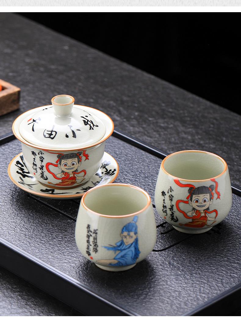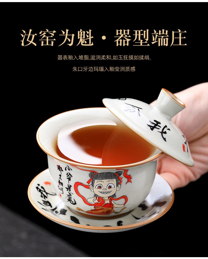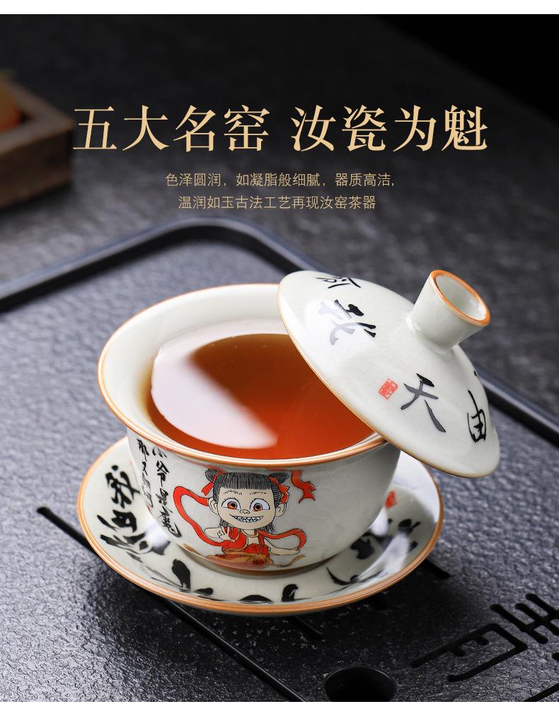 Ru kiln hovering covered bowl (nezha), Ru kiln tea cup (nezha), Ru kiln tea cup (ao bing)