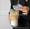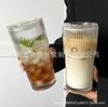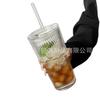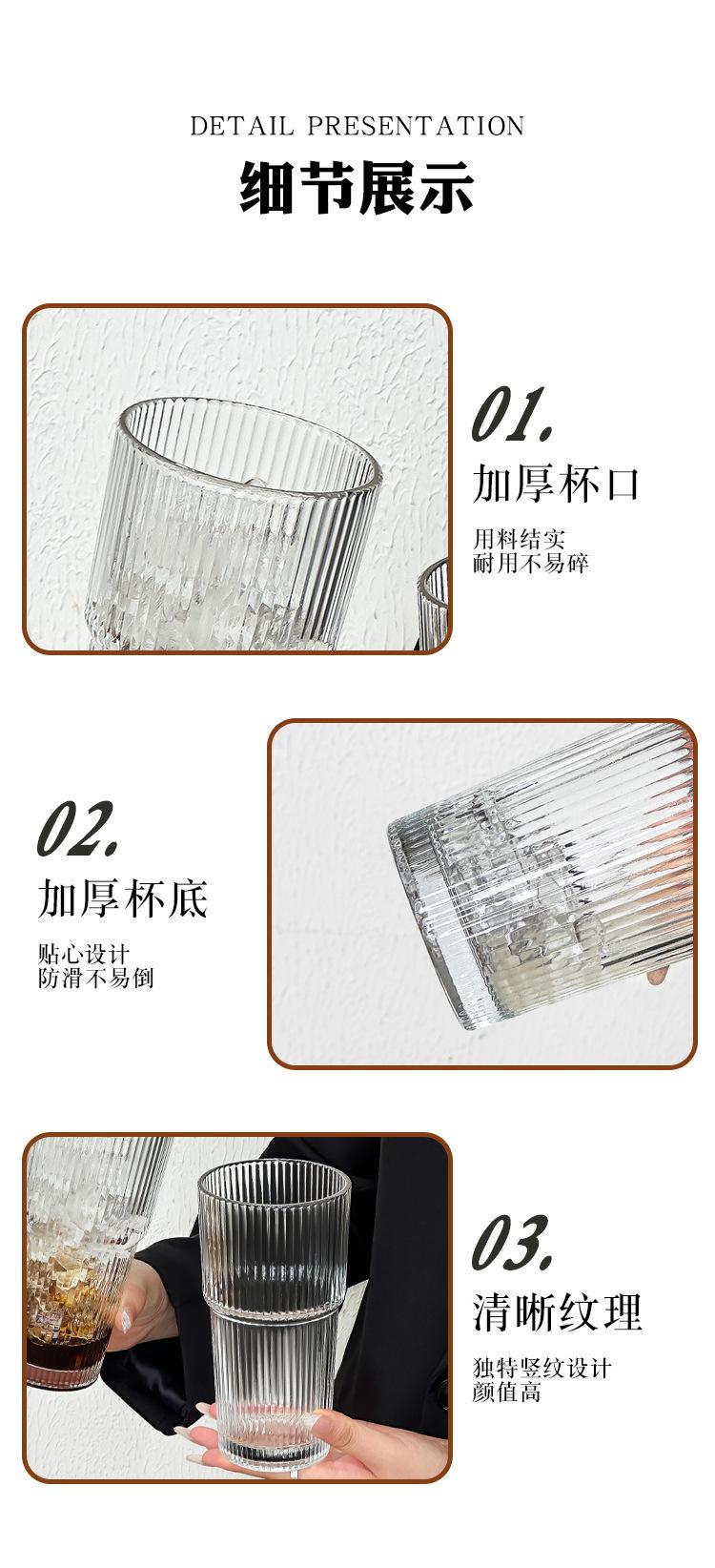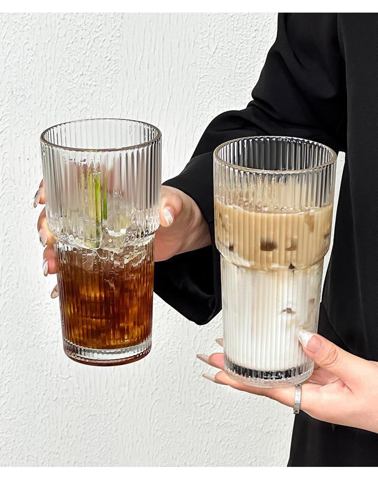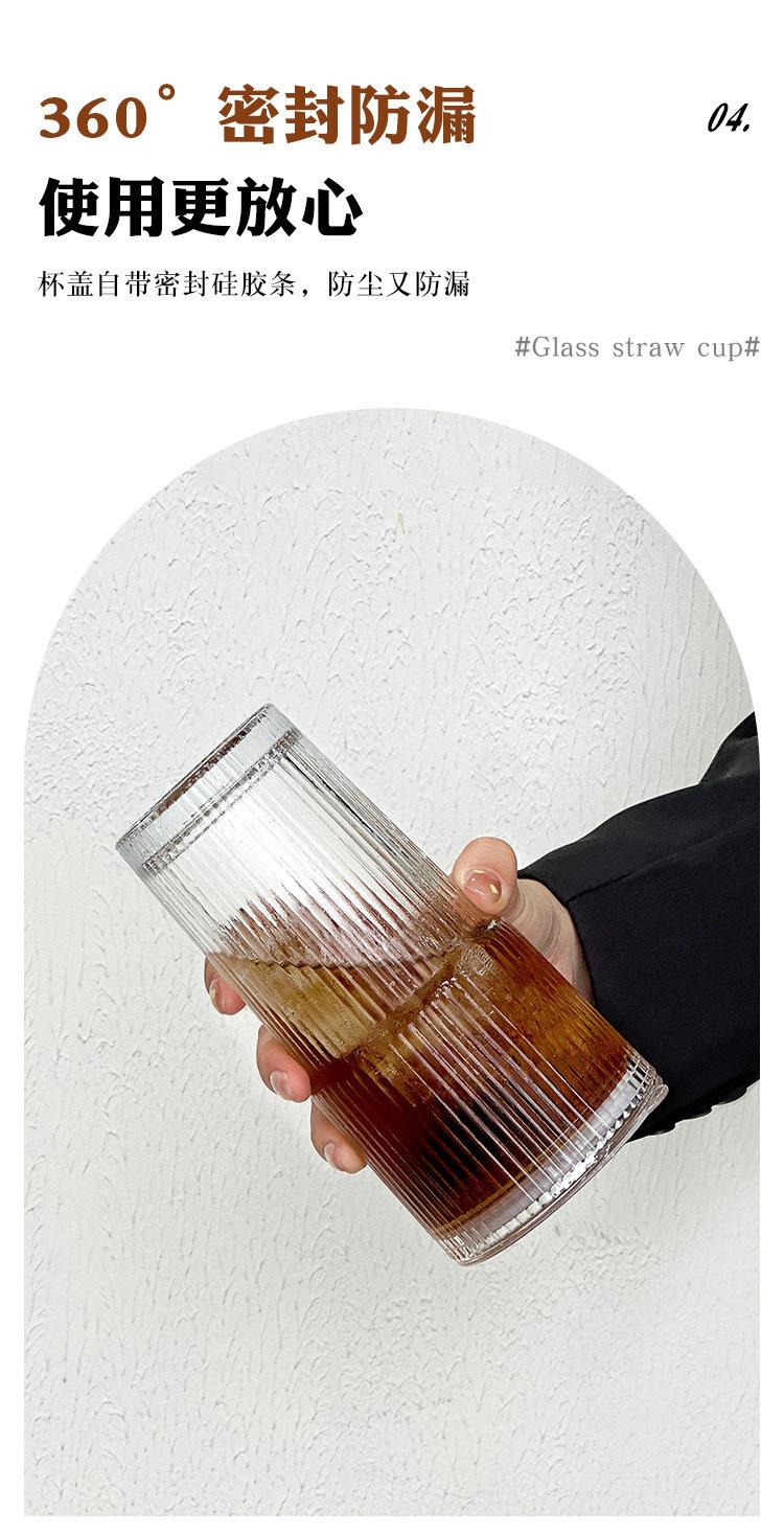 Vaso de Vidrio Rayado Vertical de Gran Capacidad Estilo Ins con Tapa y Popote Alto Valor de Color Vaso para Bebidas Frías Vaso para Jugo de Frutas Vaso para Café Vaso para Agua