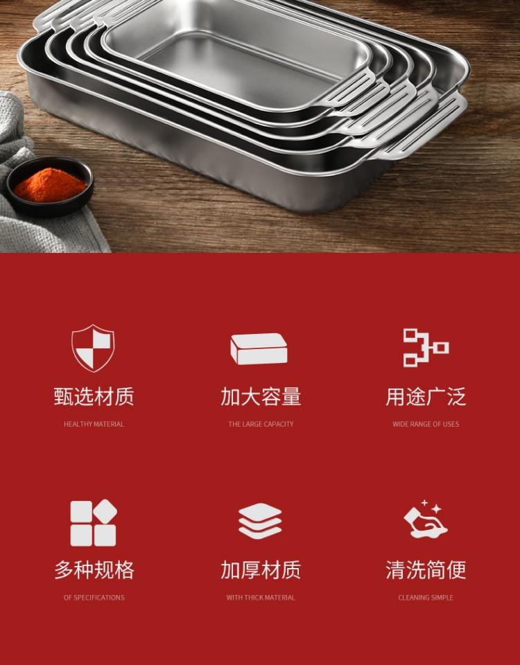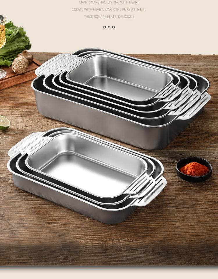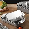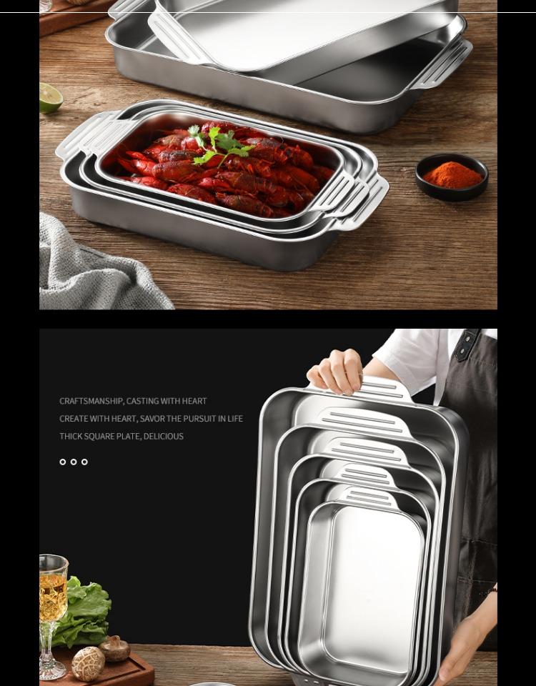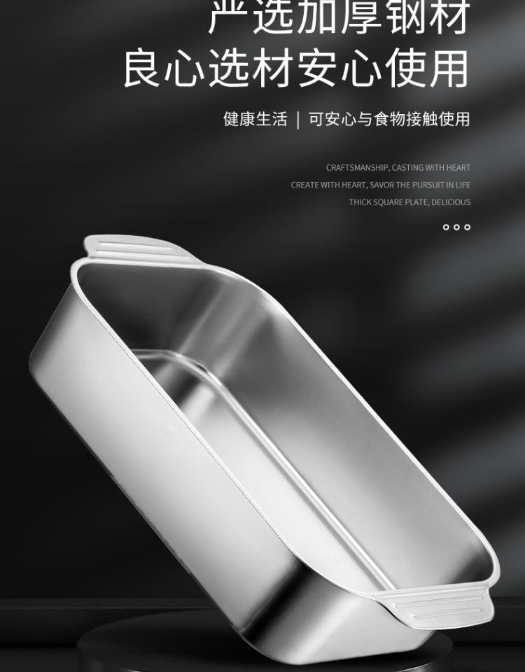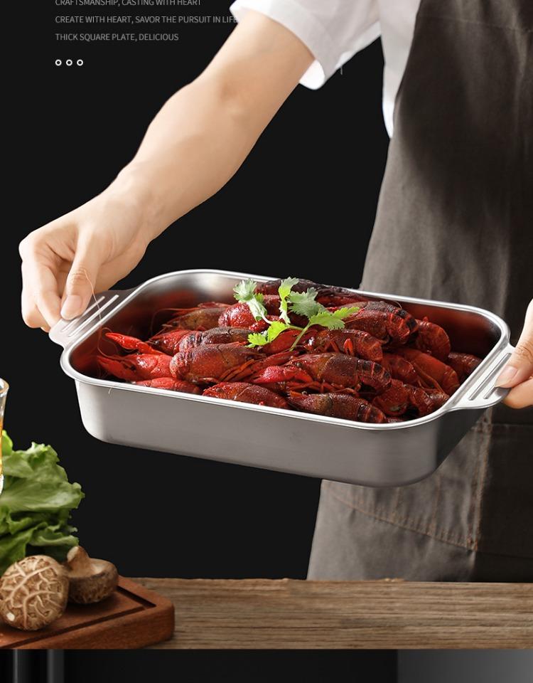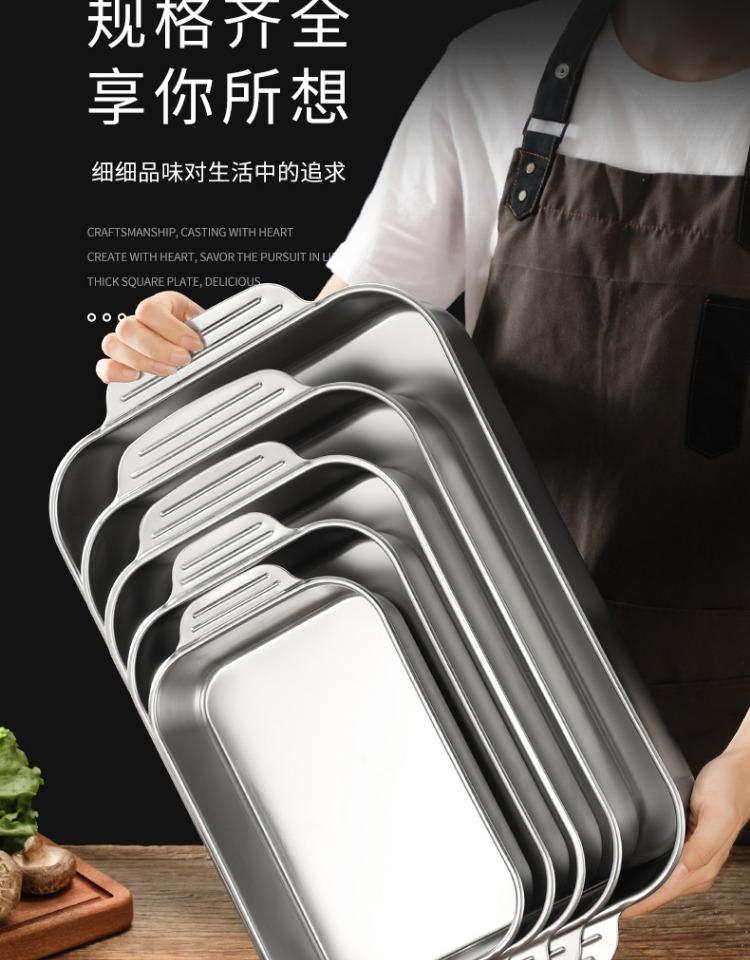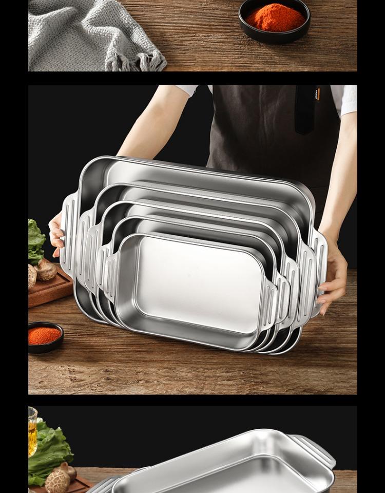 Bandeja comercial rectangular de fondo plano de acero inoxidable 304 engrosado, bandeja profunda de hierro extra grande, plato para pescado a la parrilla con asa