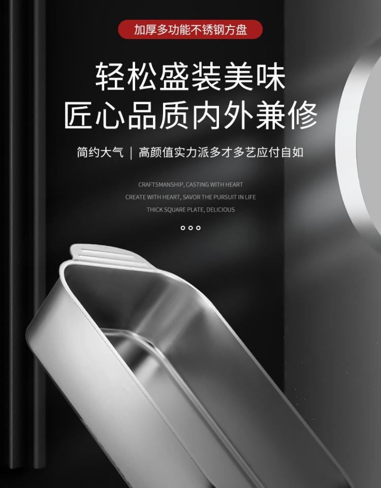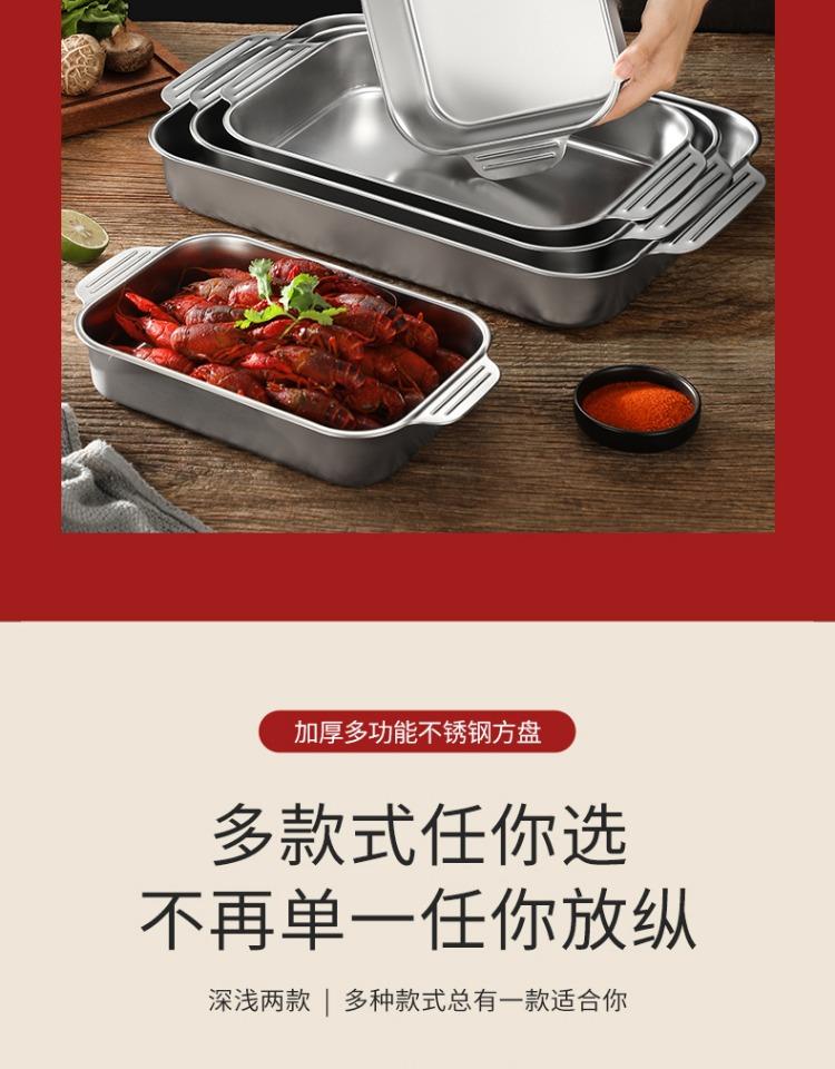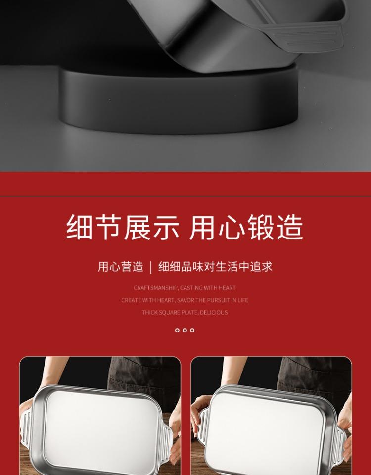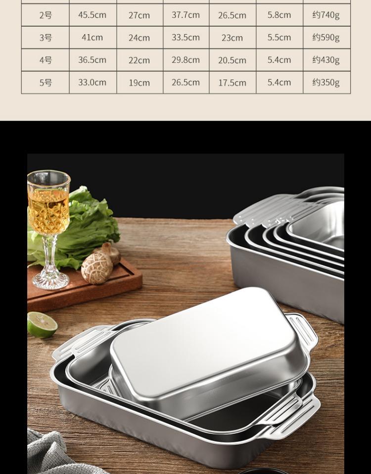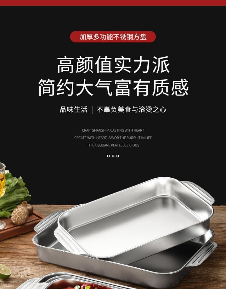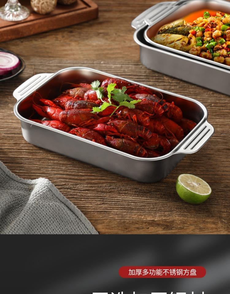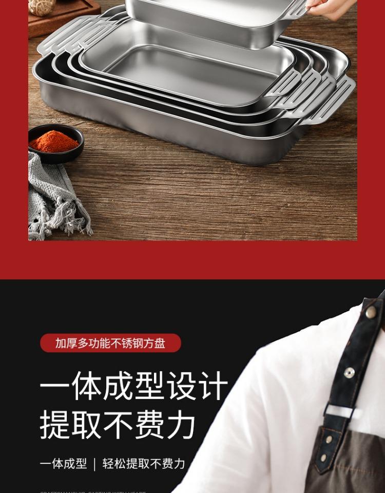 Bandeja comercial rectangular de fondo plano de acero inoxidable 304 engrosado, bandeja profunda de hierro extra grande, plato para pescado a la parrilla con asa