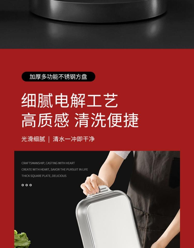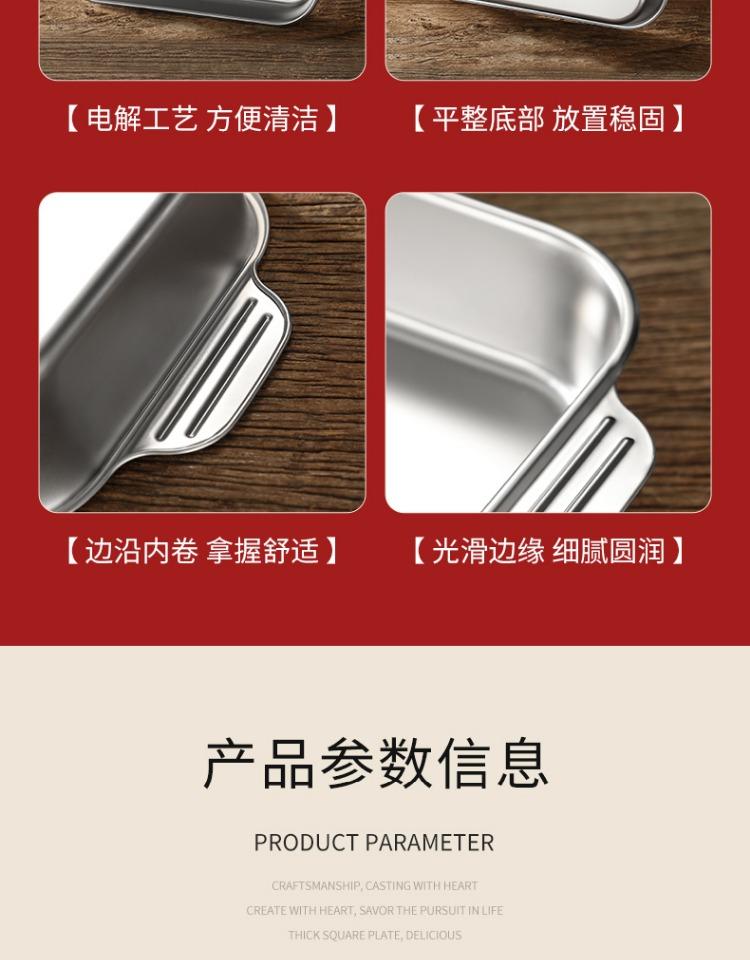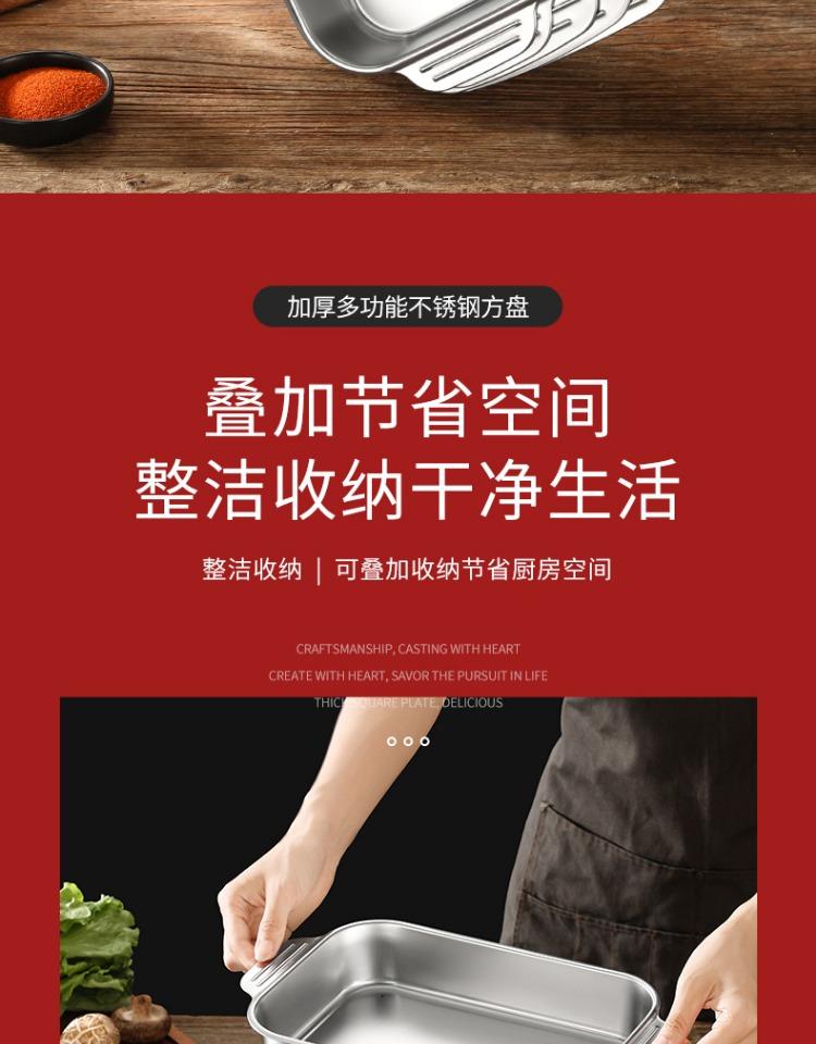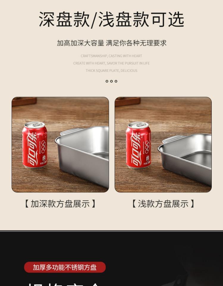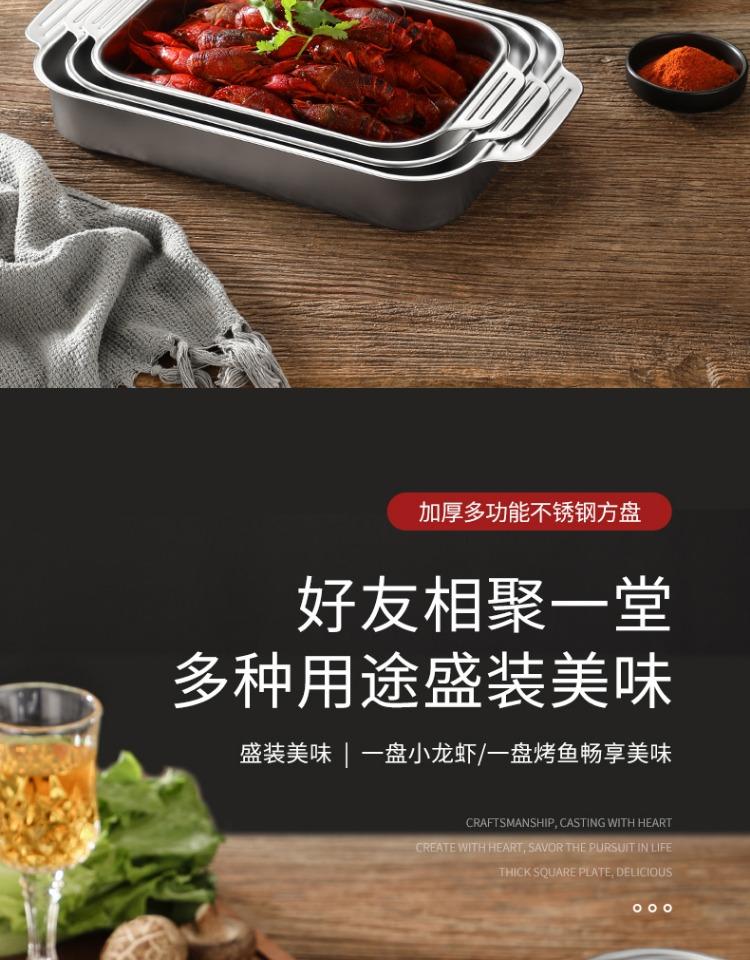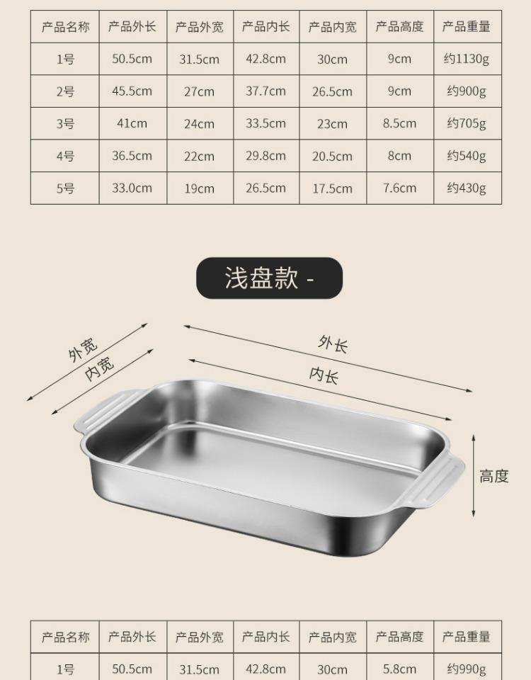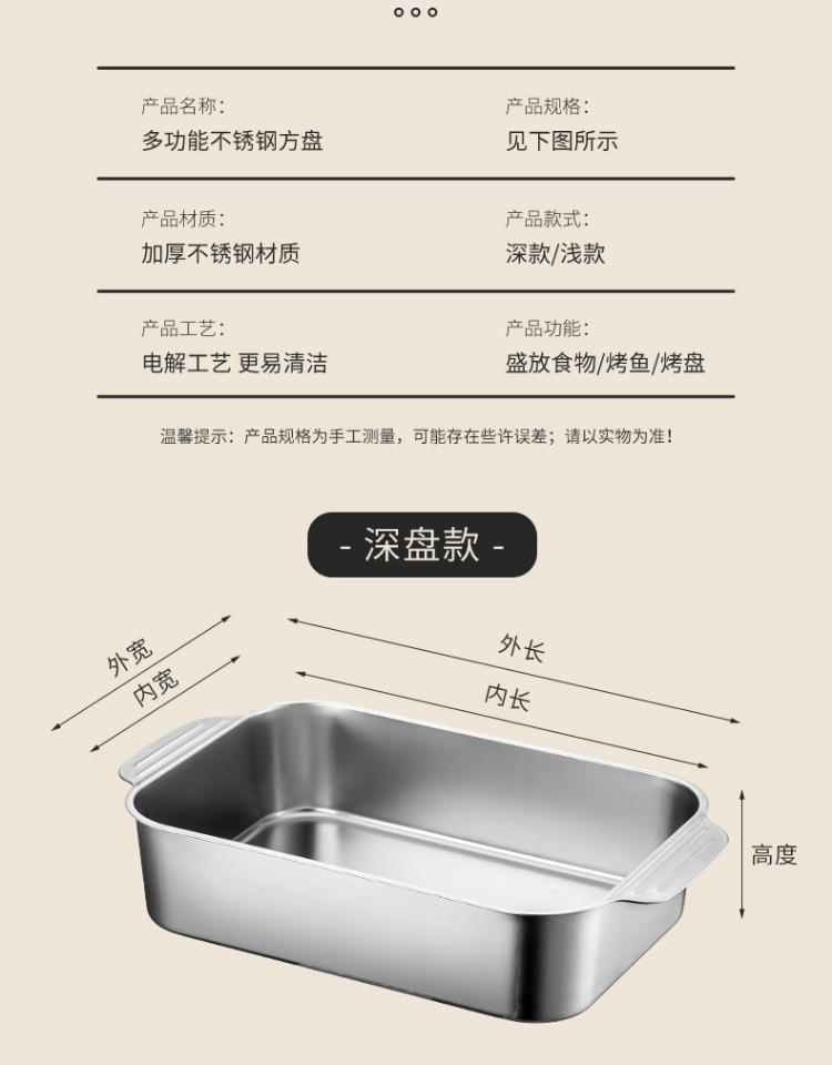 Bandeja comercial rectangular de fondo plano de acero inoxidable 304 engrosado, bandeja profunda de hierro extra grande, plato para pescado a la parrilla con asa