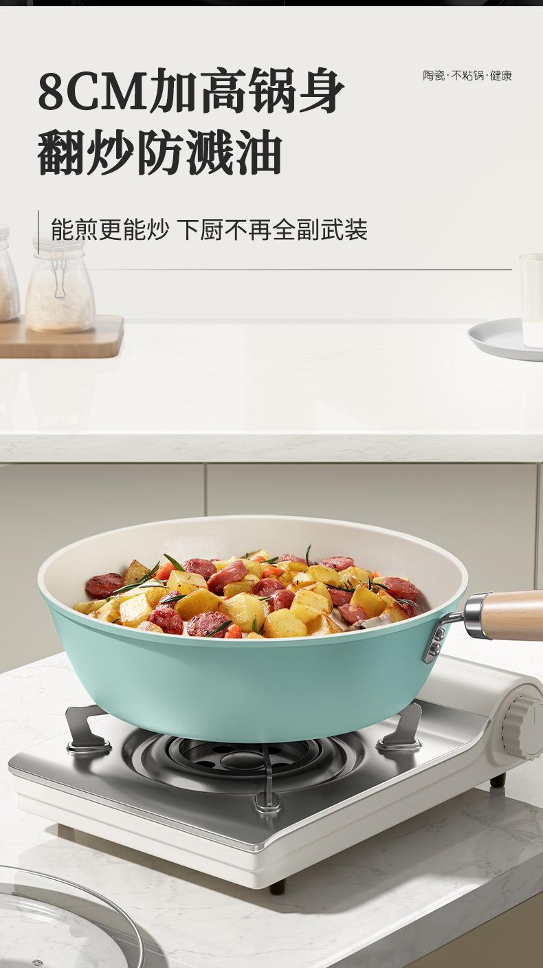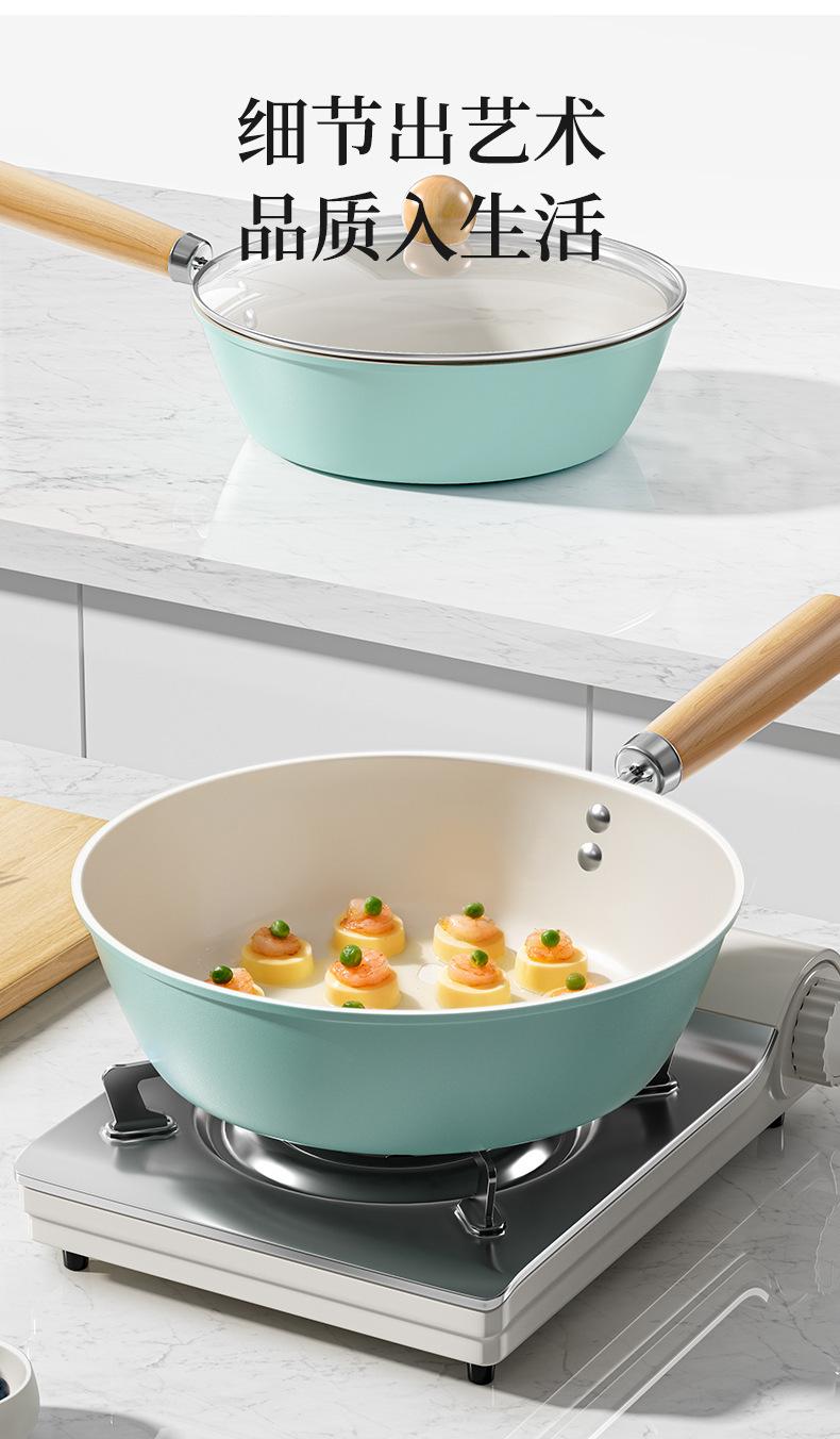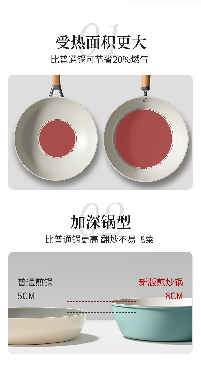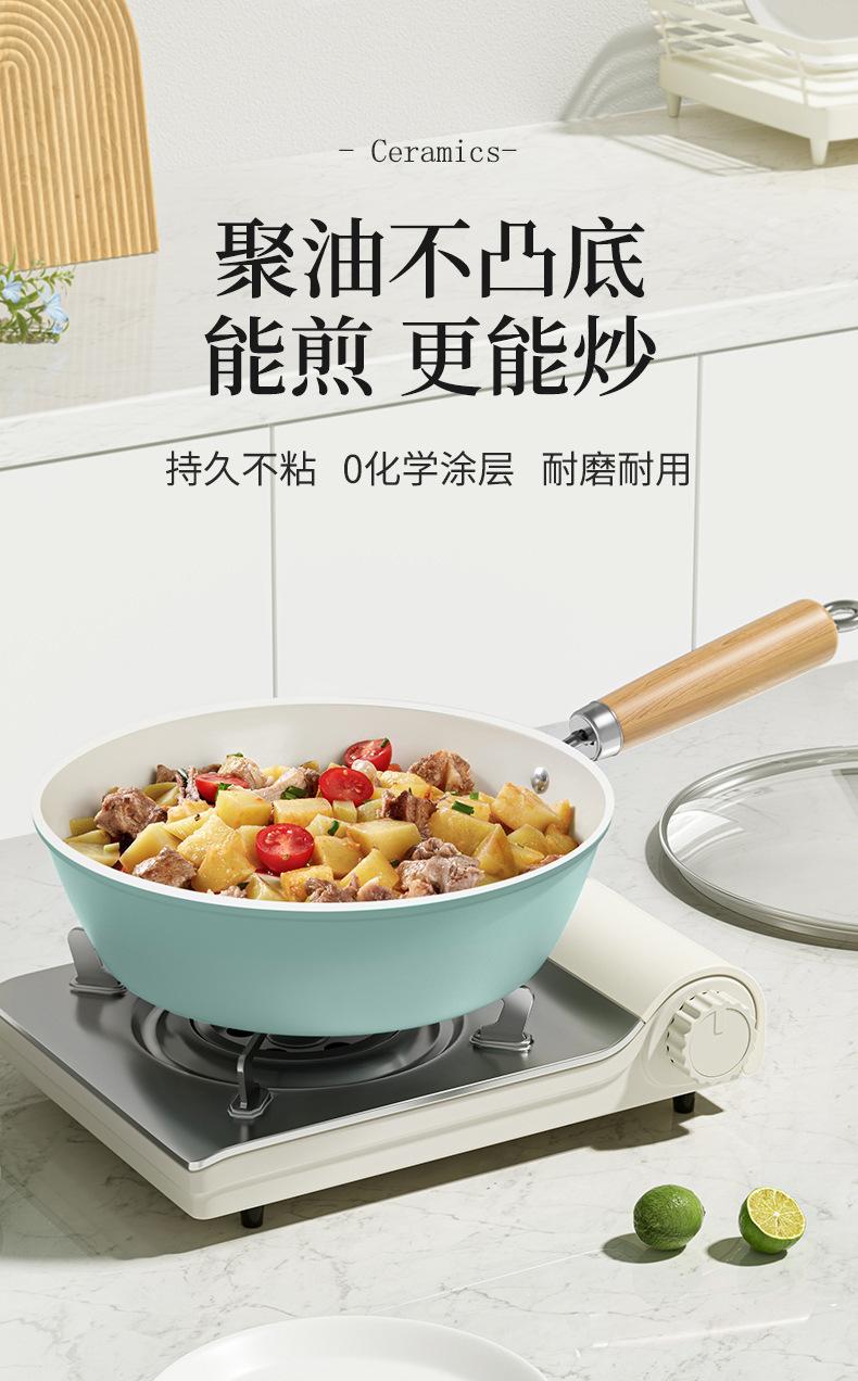 Sartén antiadherente de cerámica, wok doméstico de fondo plano, sartén antiadherente gruesa, olla especial para cocina de gas y cocina de inducción.