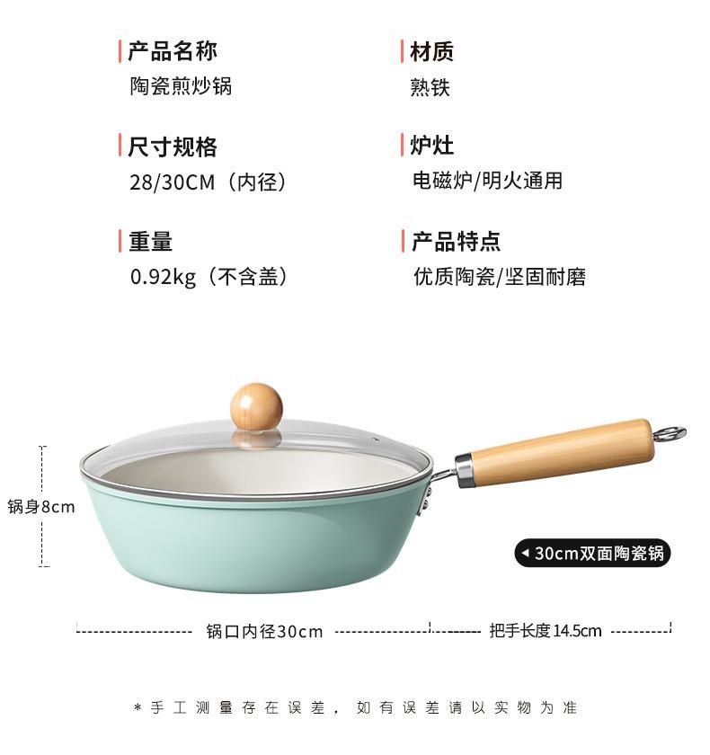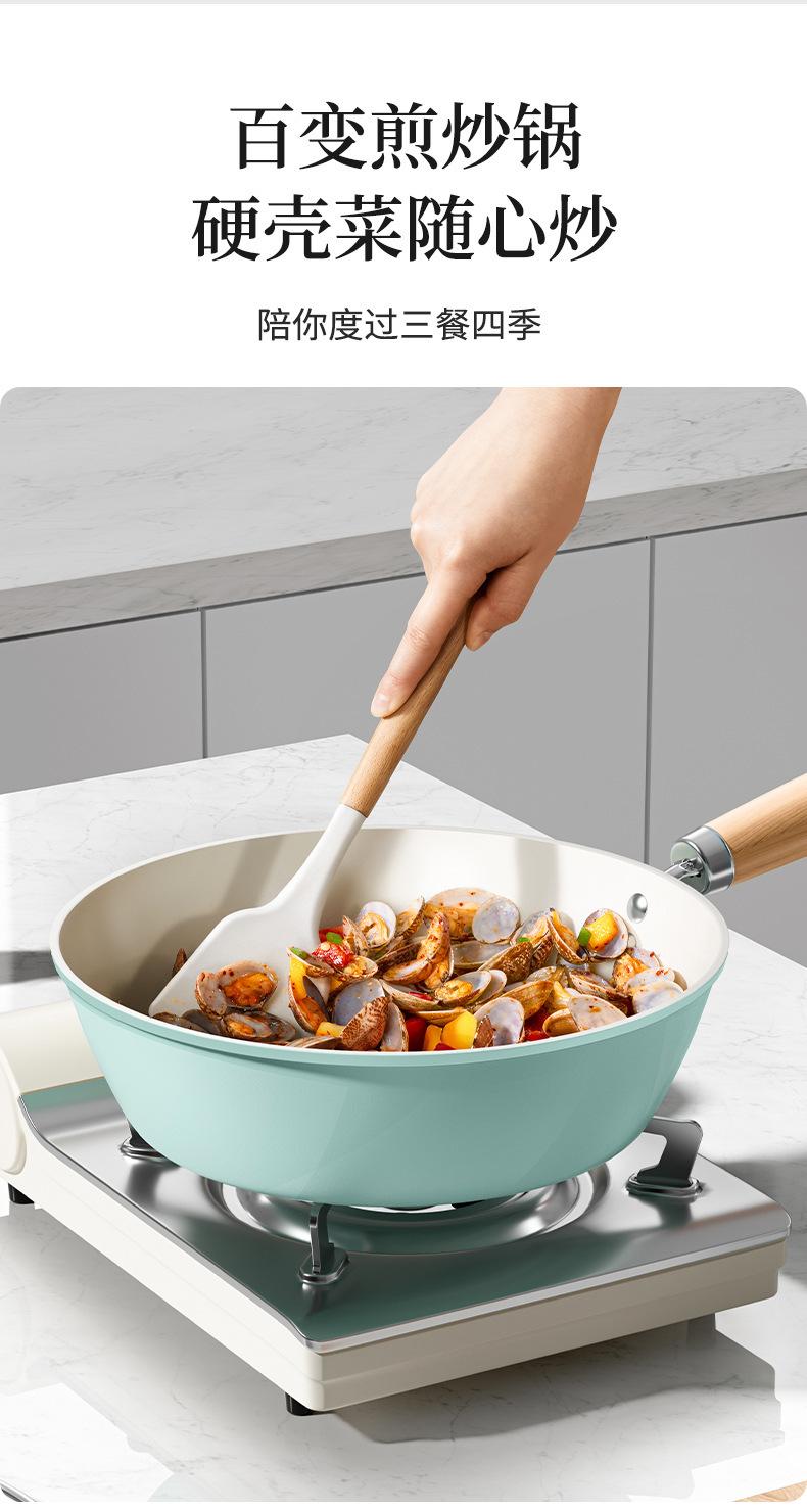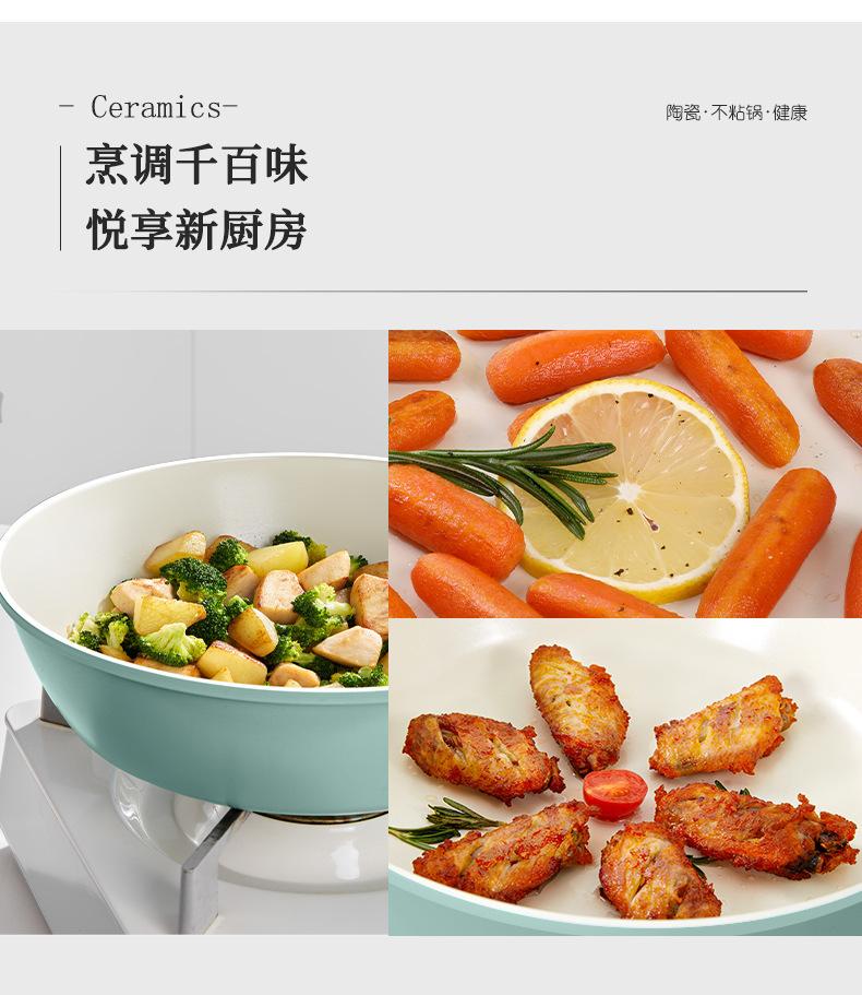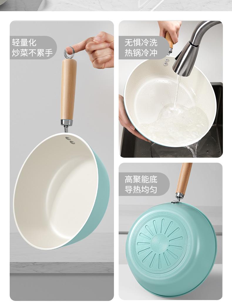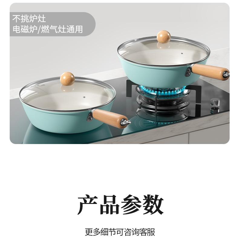 Sartén antiadherente de cerámica, wok doméstico de fondo plano, sartén antiadherente gruesa, olla especial para cocina de gas y cocina de inducción.