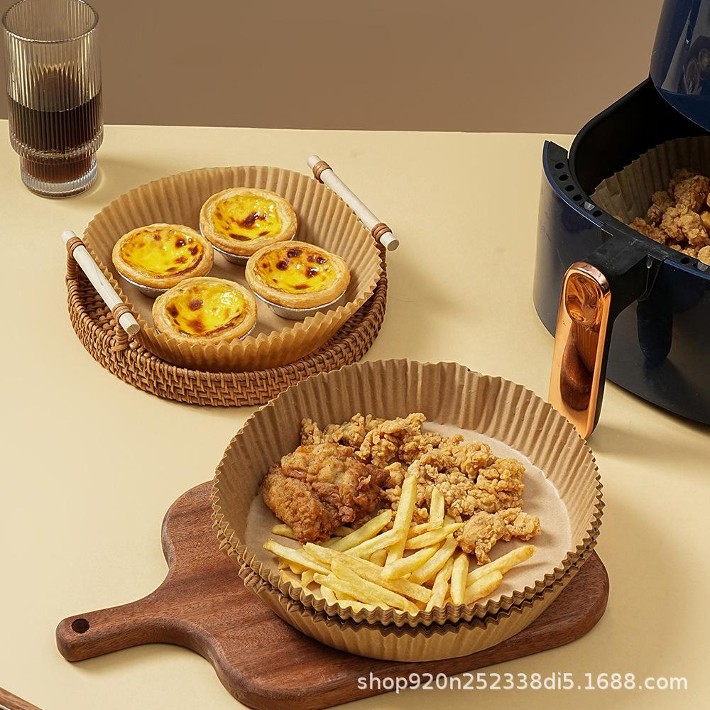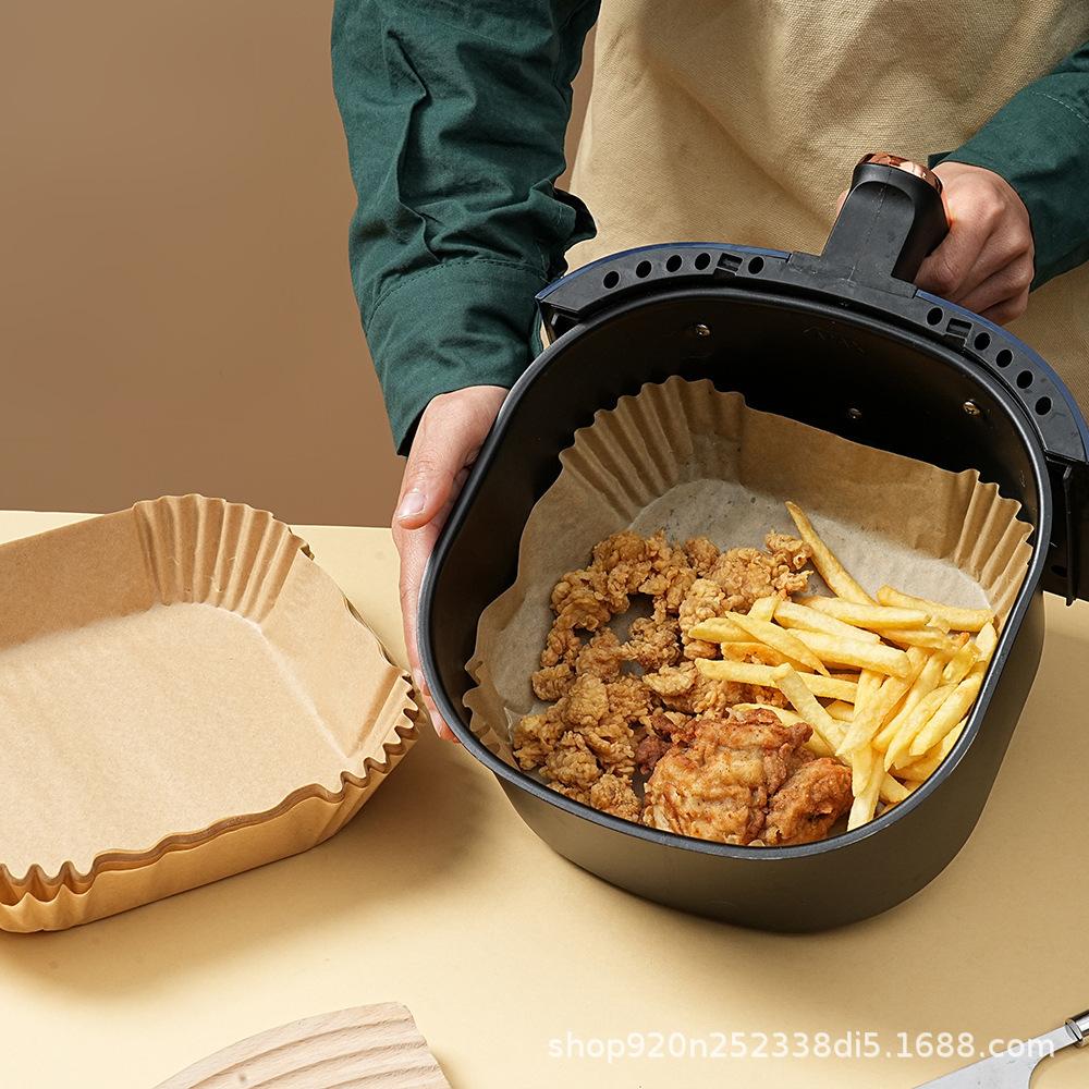 Papel para freidora de aire engrosado, papel especial de grado alimenticio, papel redondo de silicona para freidora, papel cuadrado para hornear, papel absorbente de aceite, papel absorbente