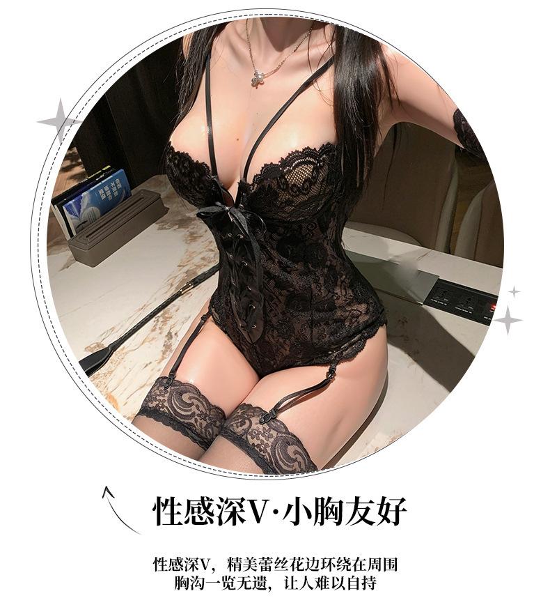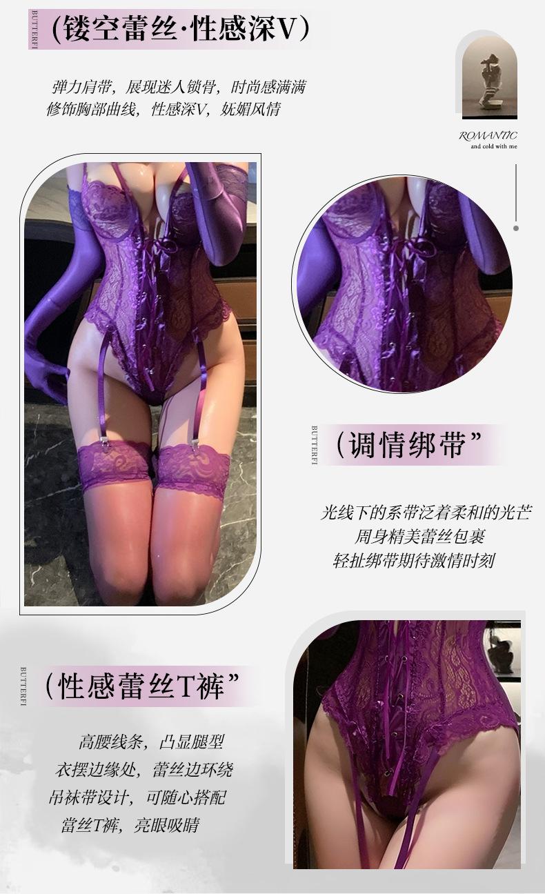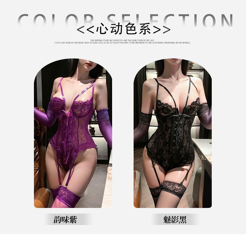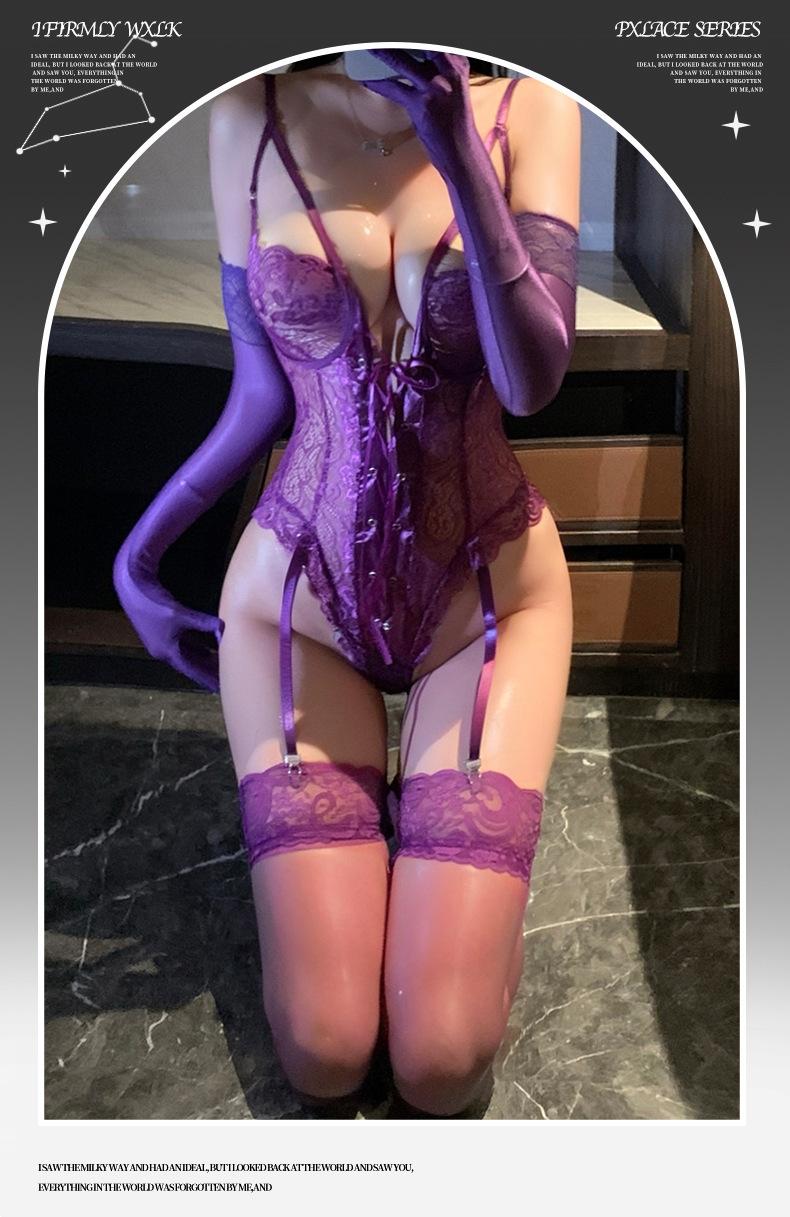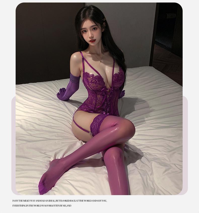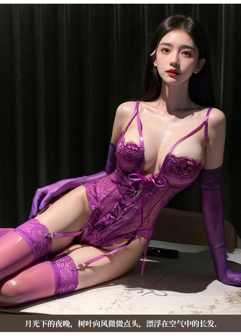 Ropa Interior Sexy Encanto Púrpura Sexy Pecho Pequeño Gran Recogido Deseo Puro Encaje Mono Vestido Tentación Pasión Sexy