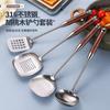 Espátula de acero inoxidable 304 para cocina doméstica, gruesa, antiescaldadura, cuchara para sopa con mango largo, cuchara para freír, pala para freír, pala de silicona, pala para freír