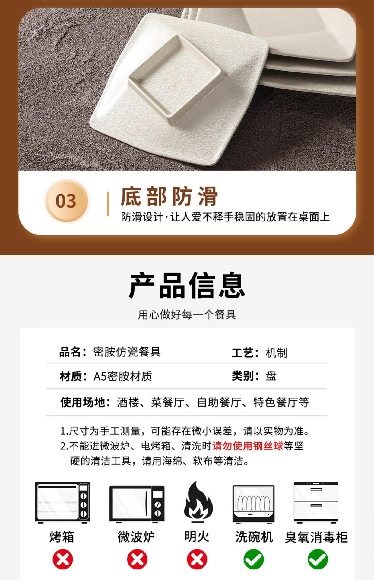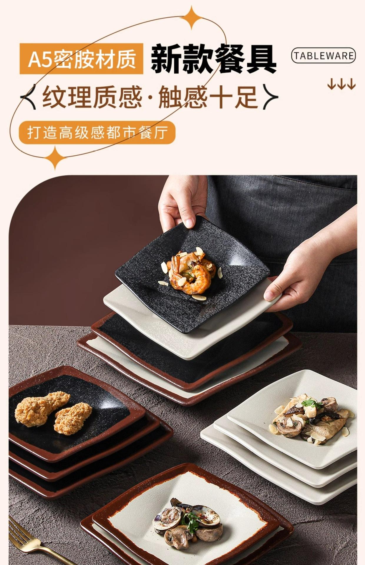 Plato de melamina Xiangyuan para vajilla comercial de restaurante occidental creativo para bistec y ensalada, cuadrado con tapa para arroz, plato para plato frío