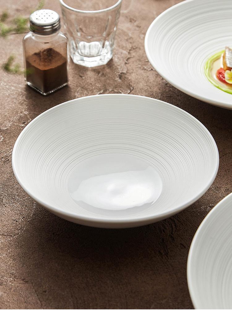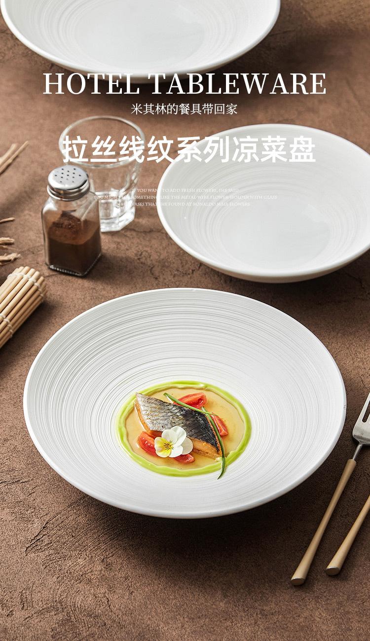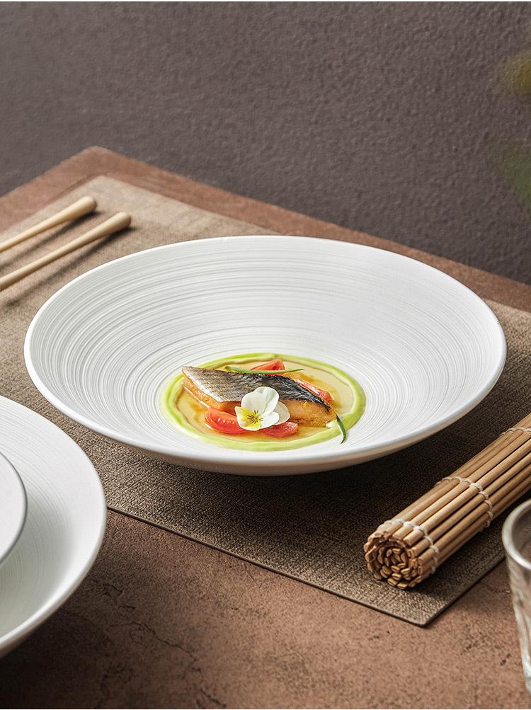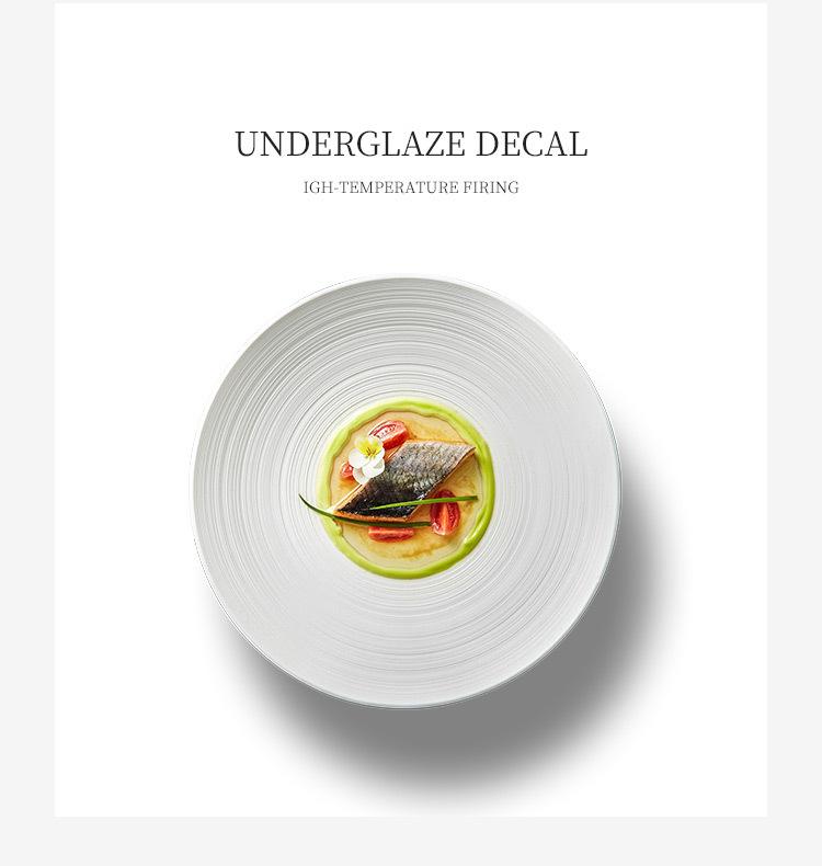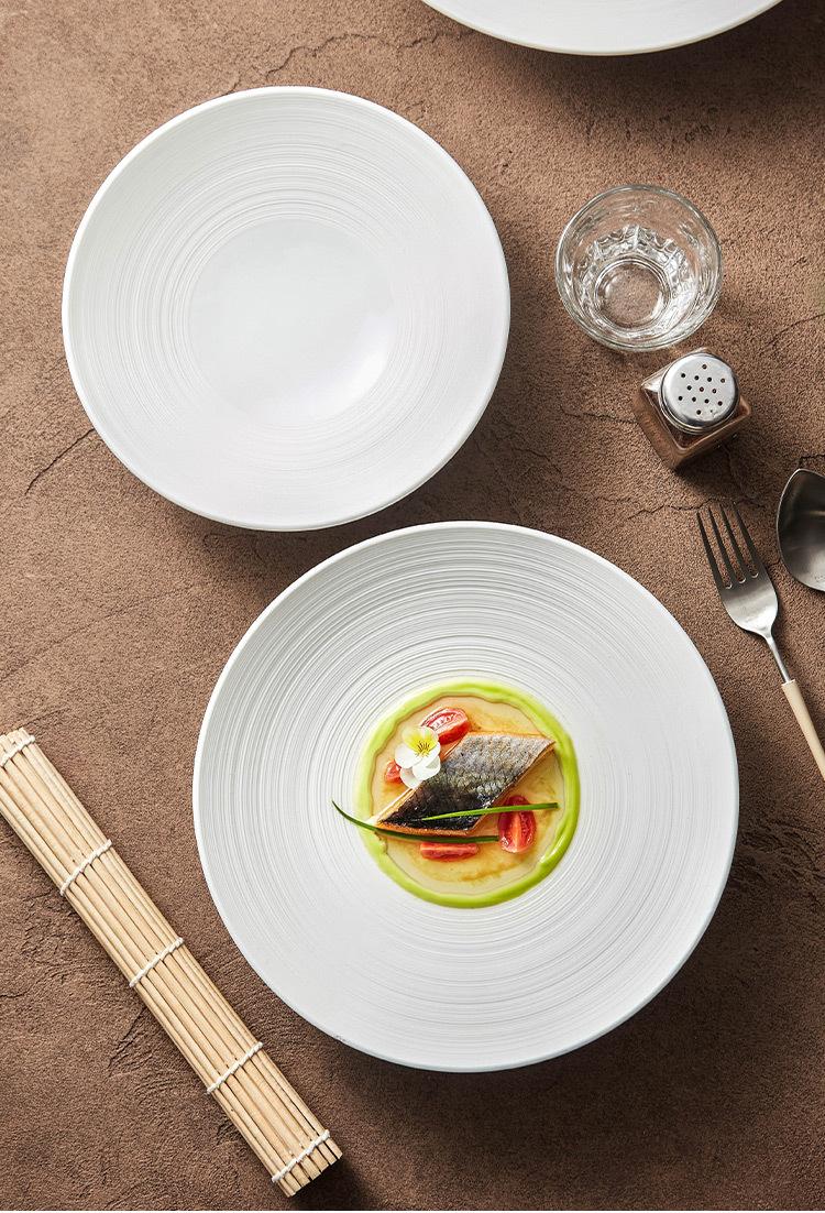 Plato llano con textura lineal, Plato sopero, Plato para servir doméstico, Plato para fruta, Plato de alta gama para platos fríos, Vajilla de hotel, Plato hondo